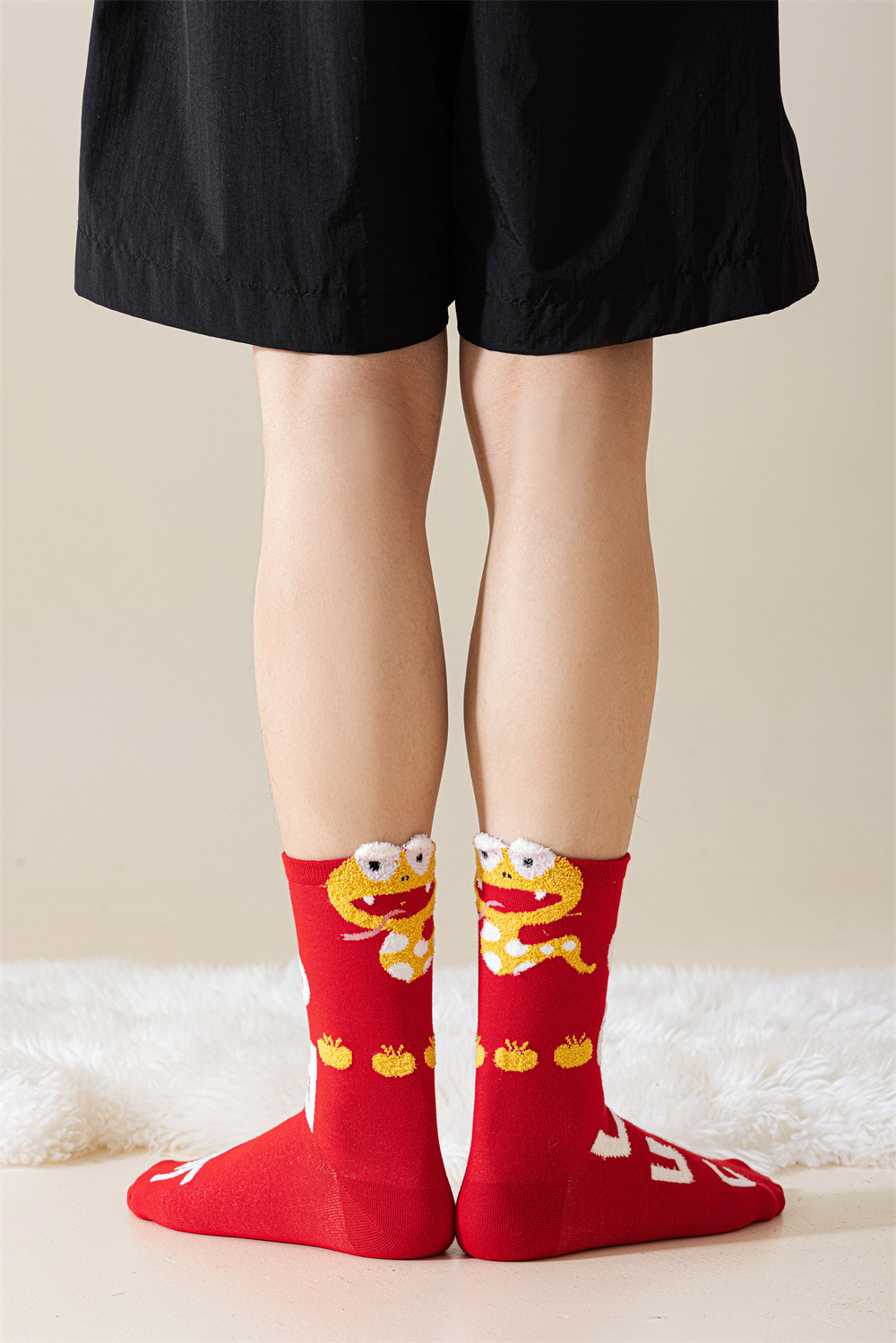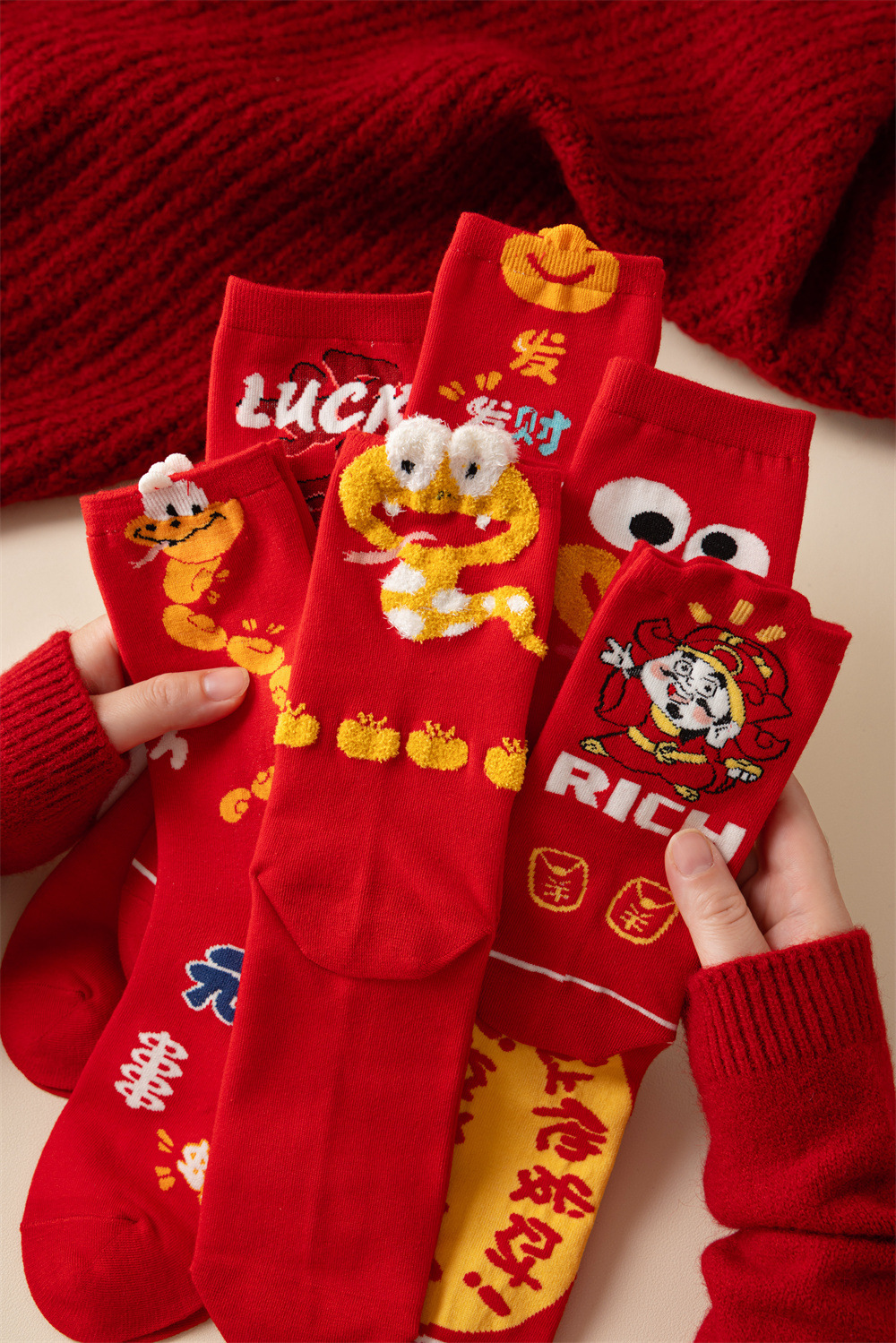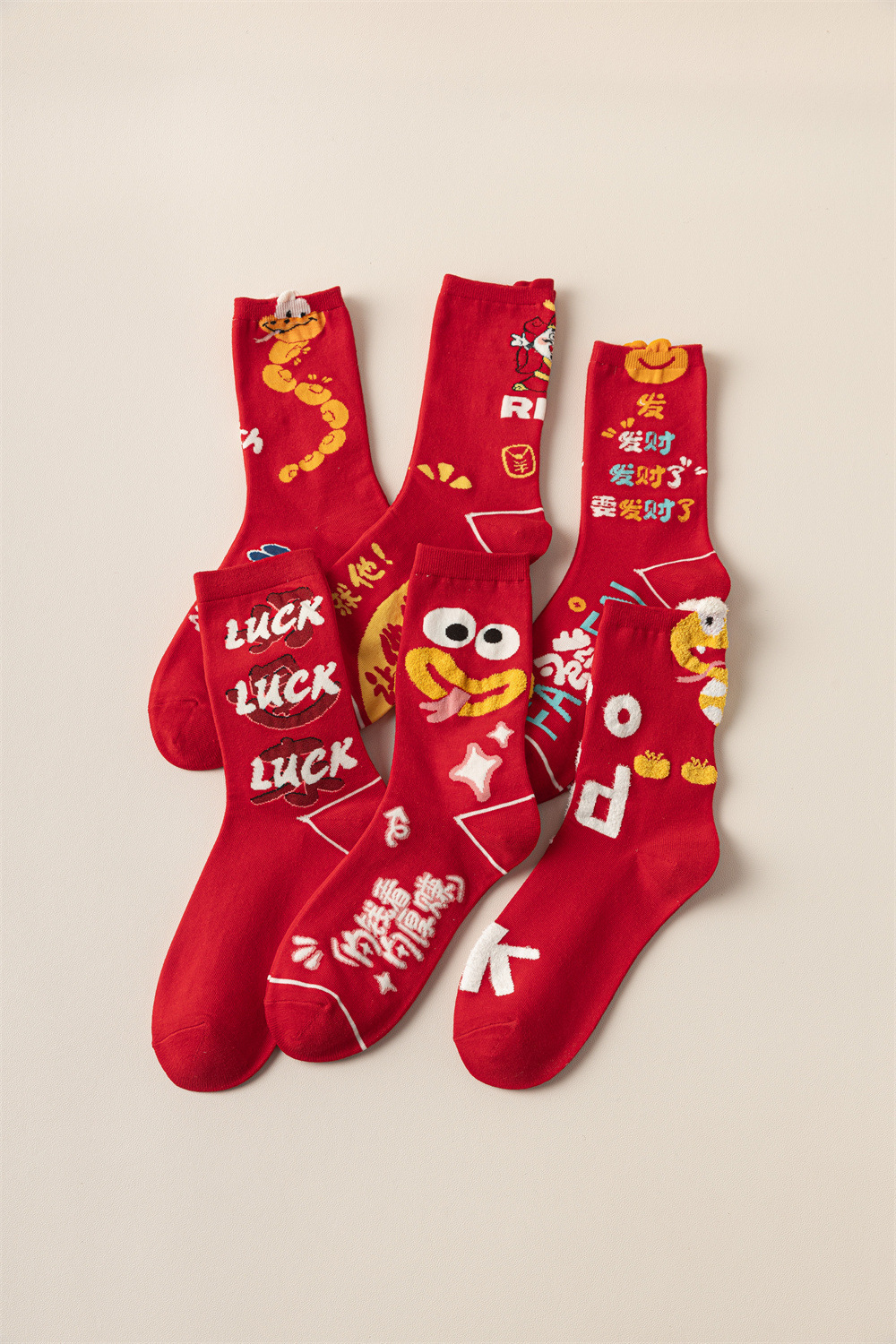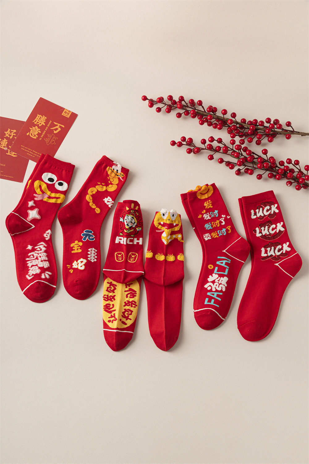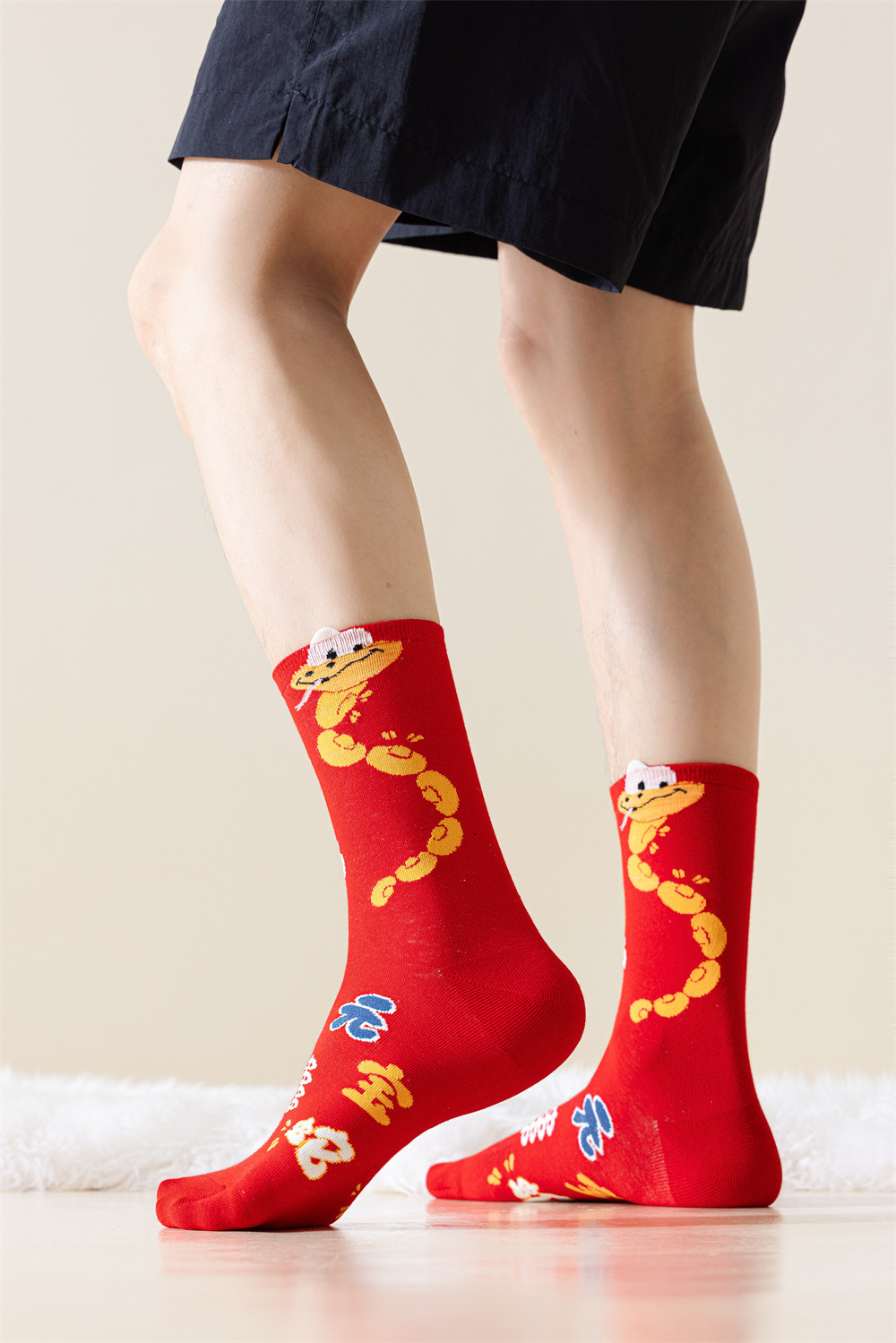 蛇年本命年大红新年袜立体可爱蛇财神国潮文字男女士中筒鸿运袜子