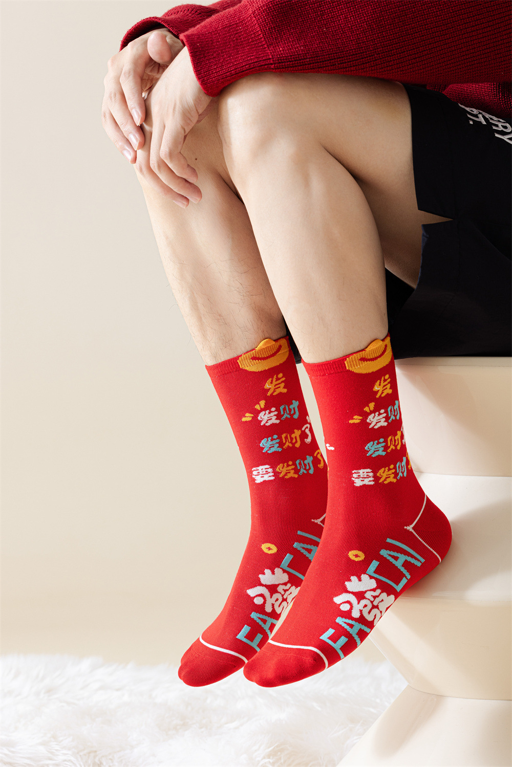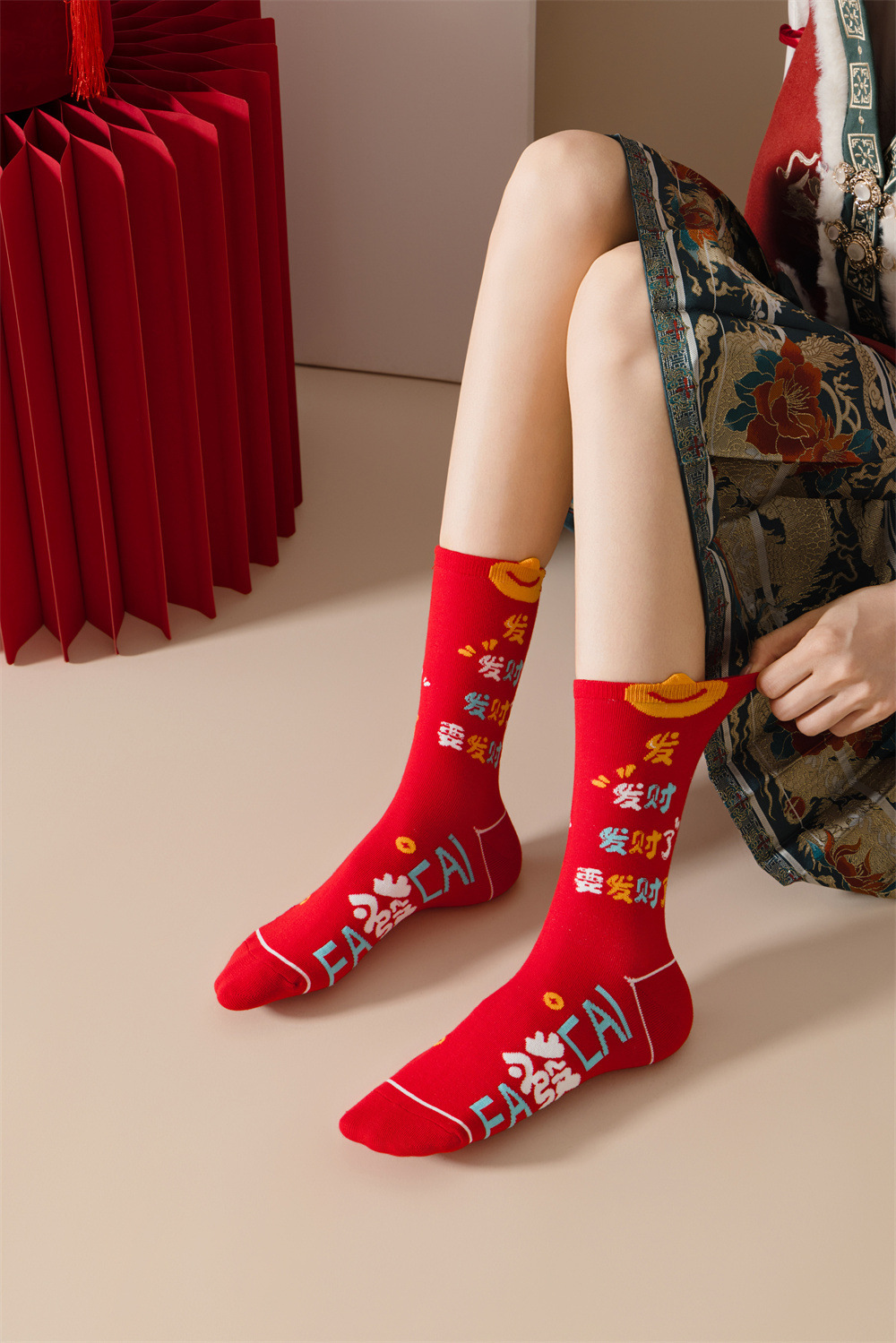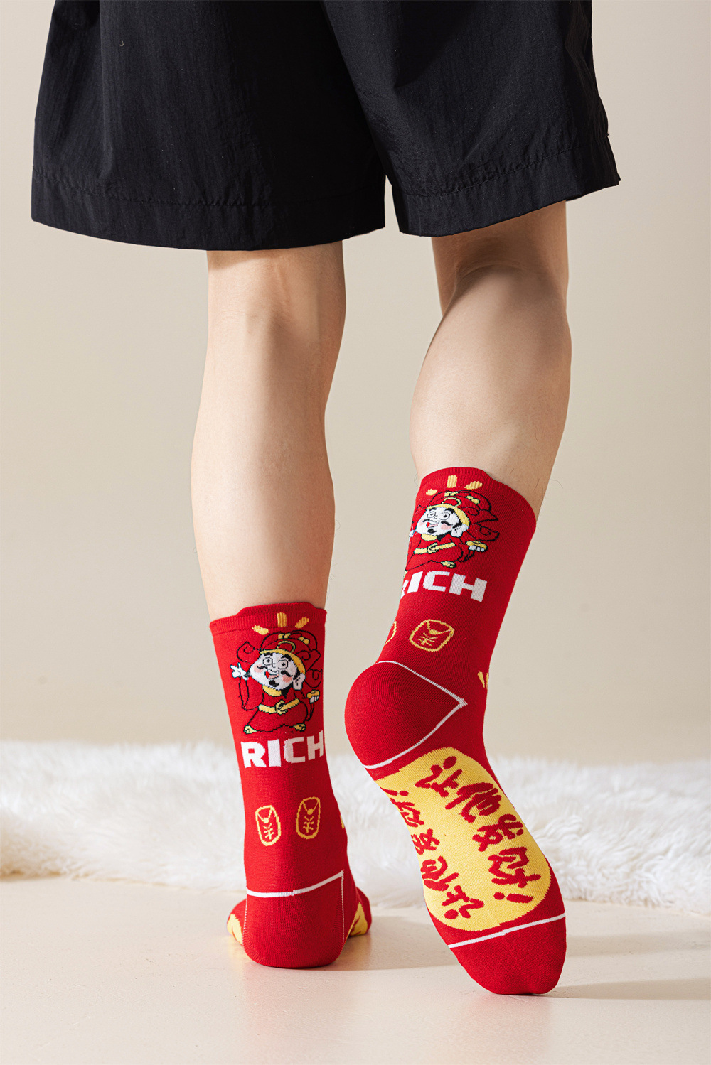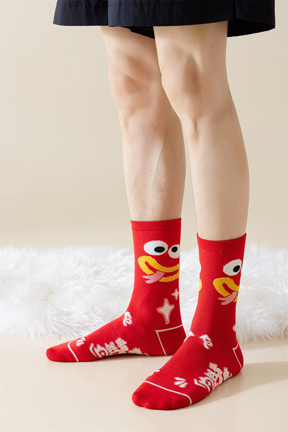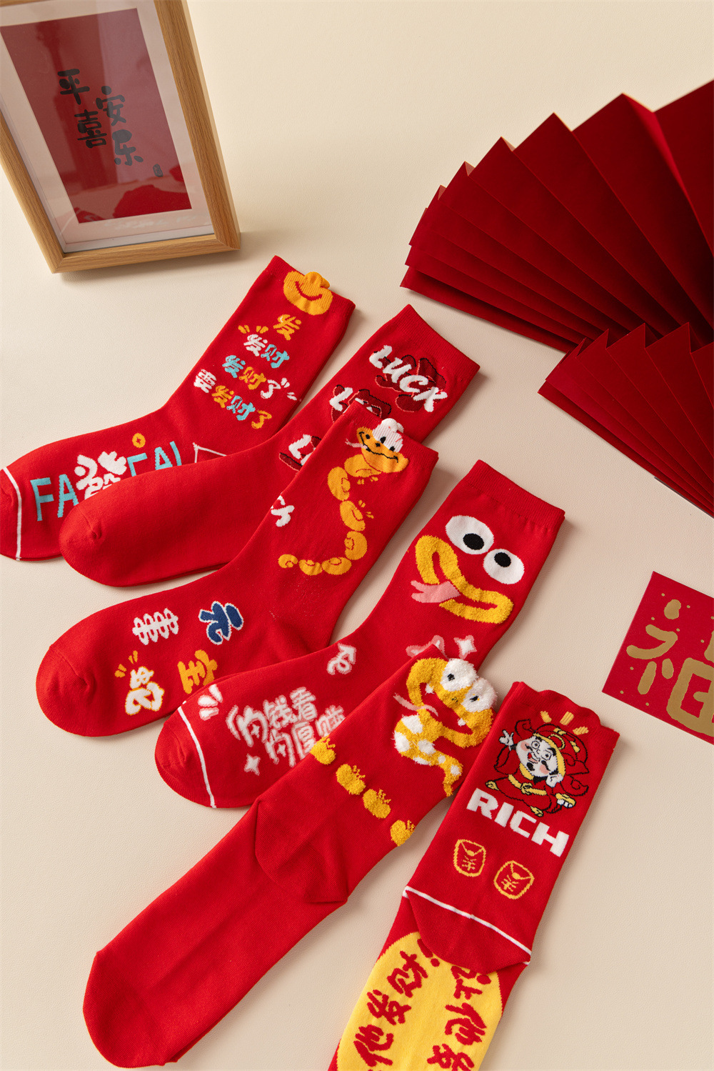 蛇年本命年大红新年袜立体可爱蛇财神国潮文字男女士中筒鸿运袜子