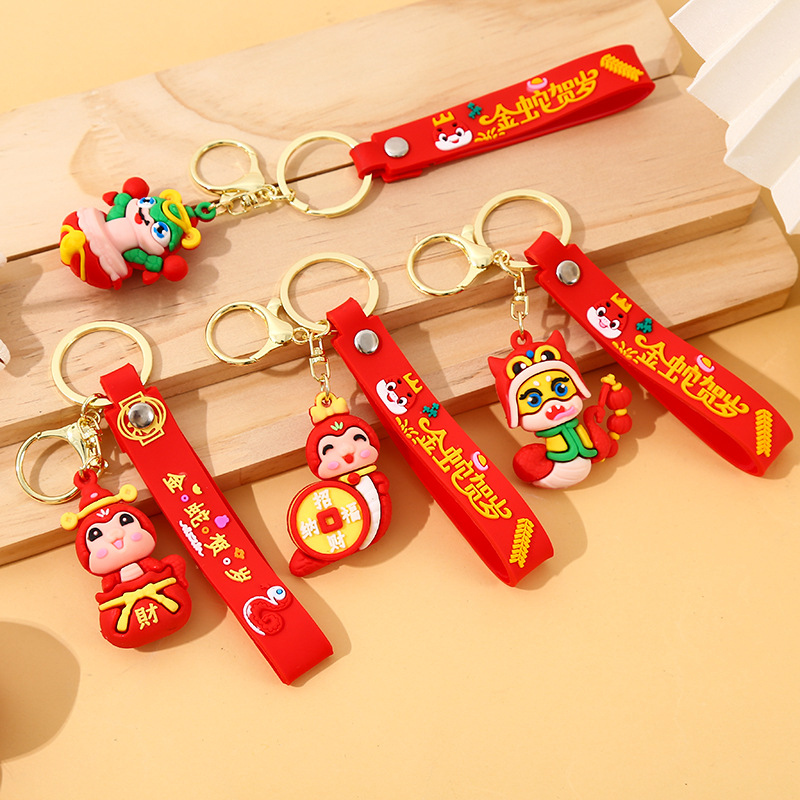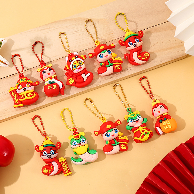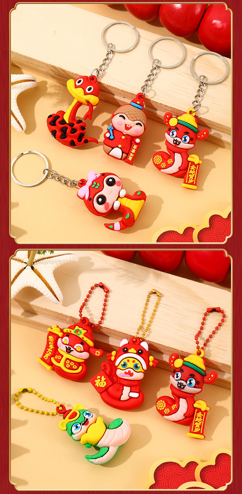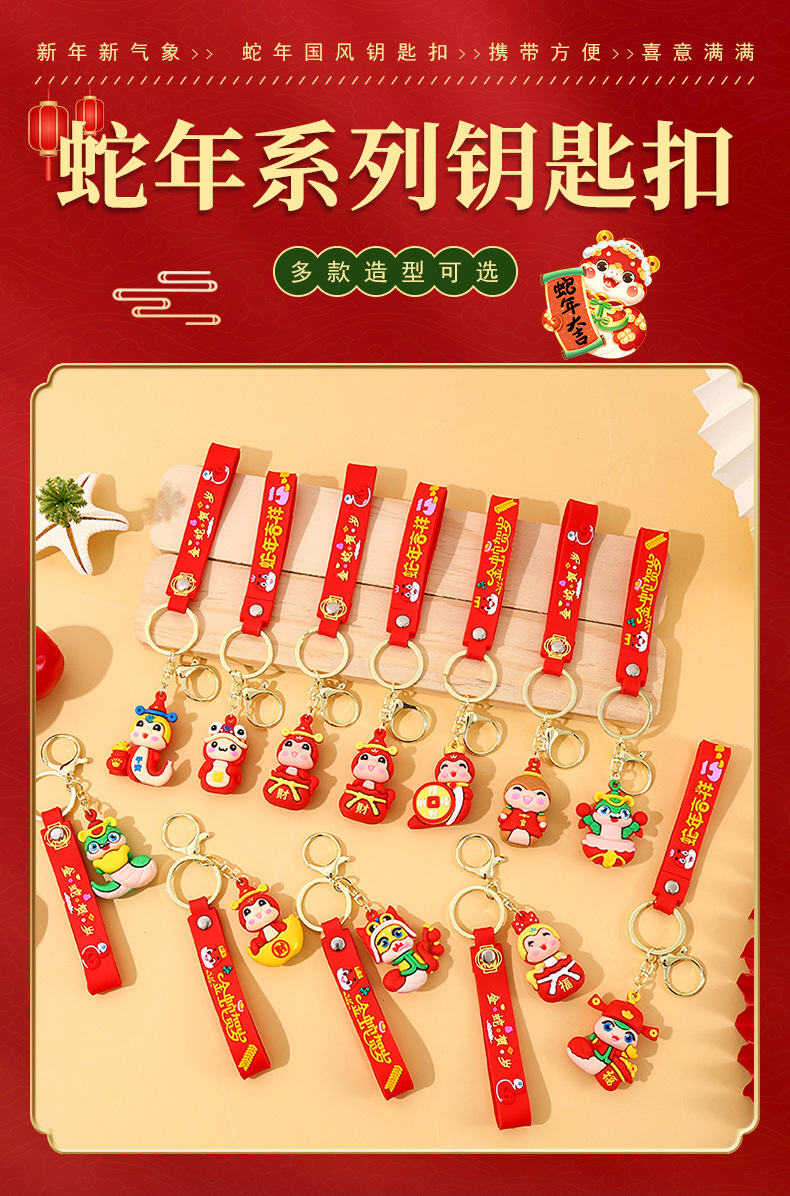 2025年新款喜庆蛇年系列钥匙扣 创意卡通生肖蛇公仔书包蛇钥匙扣