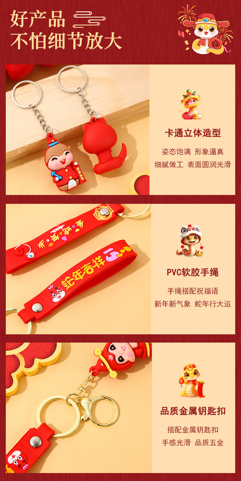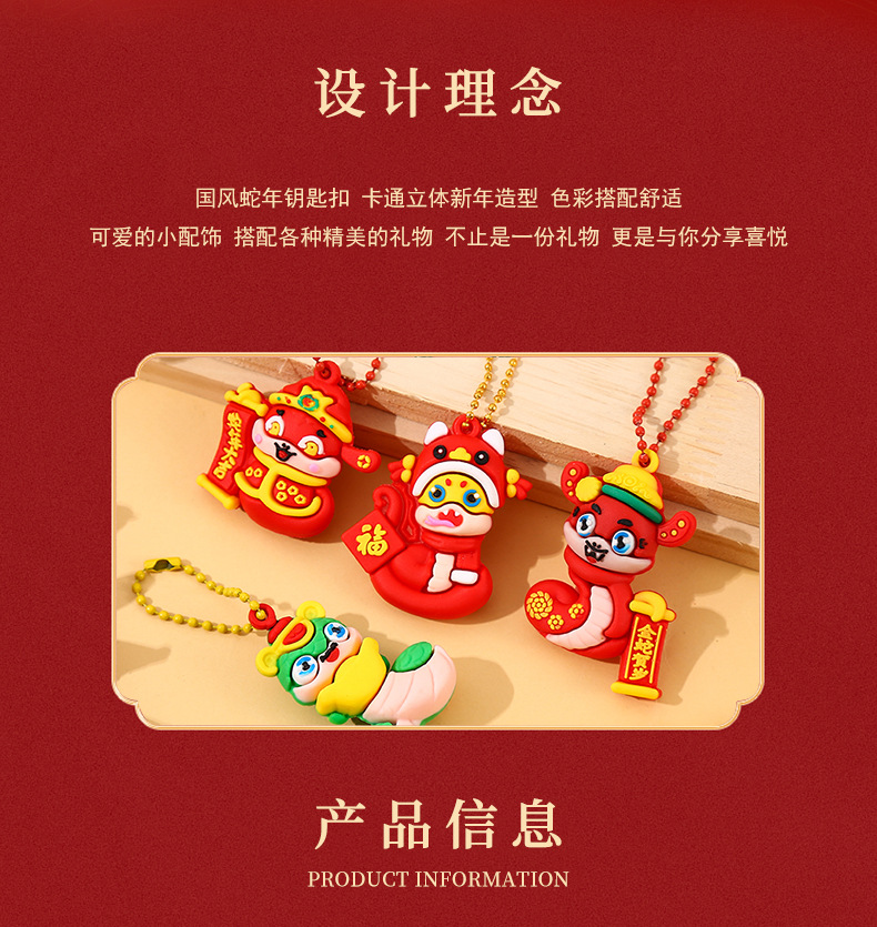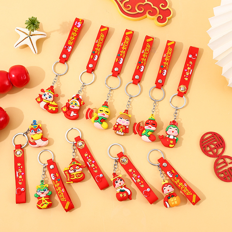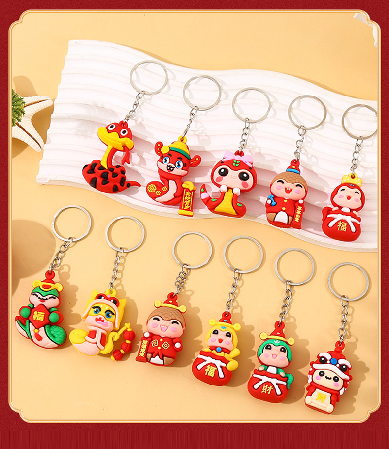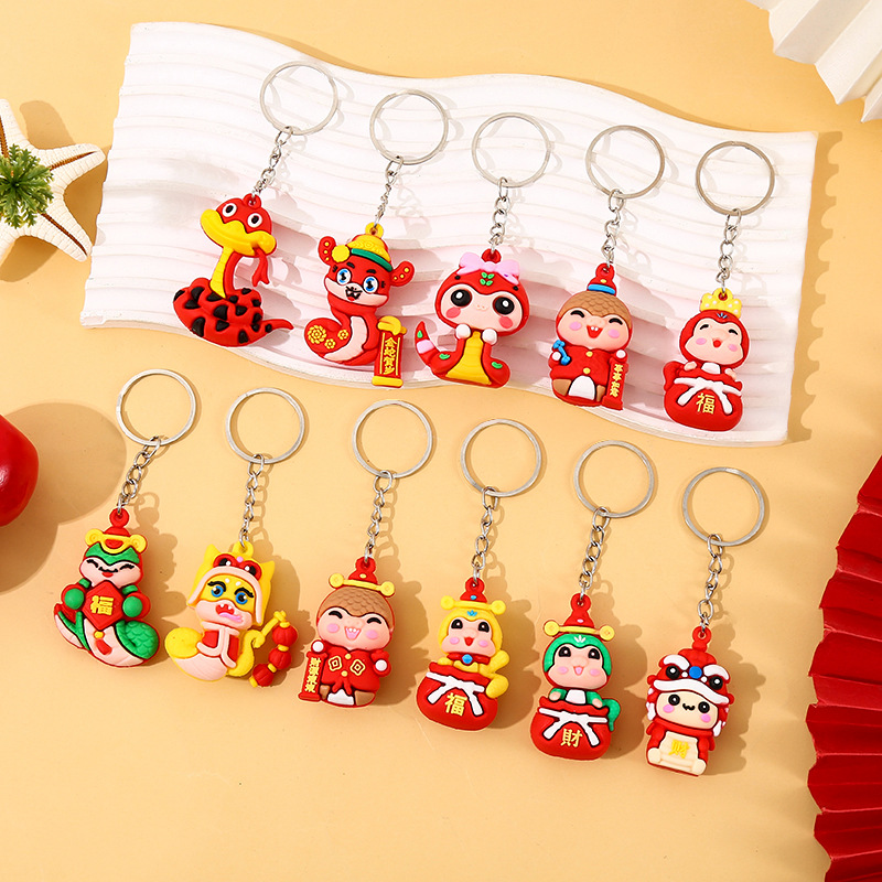 2025年新款喜庆蛇年系列钥匙扣 创意卡通生肖蛇公仔书包蛇钥匙扣