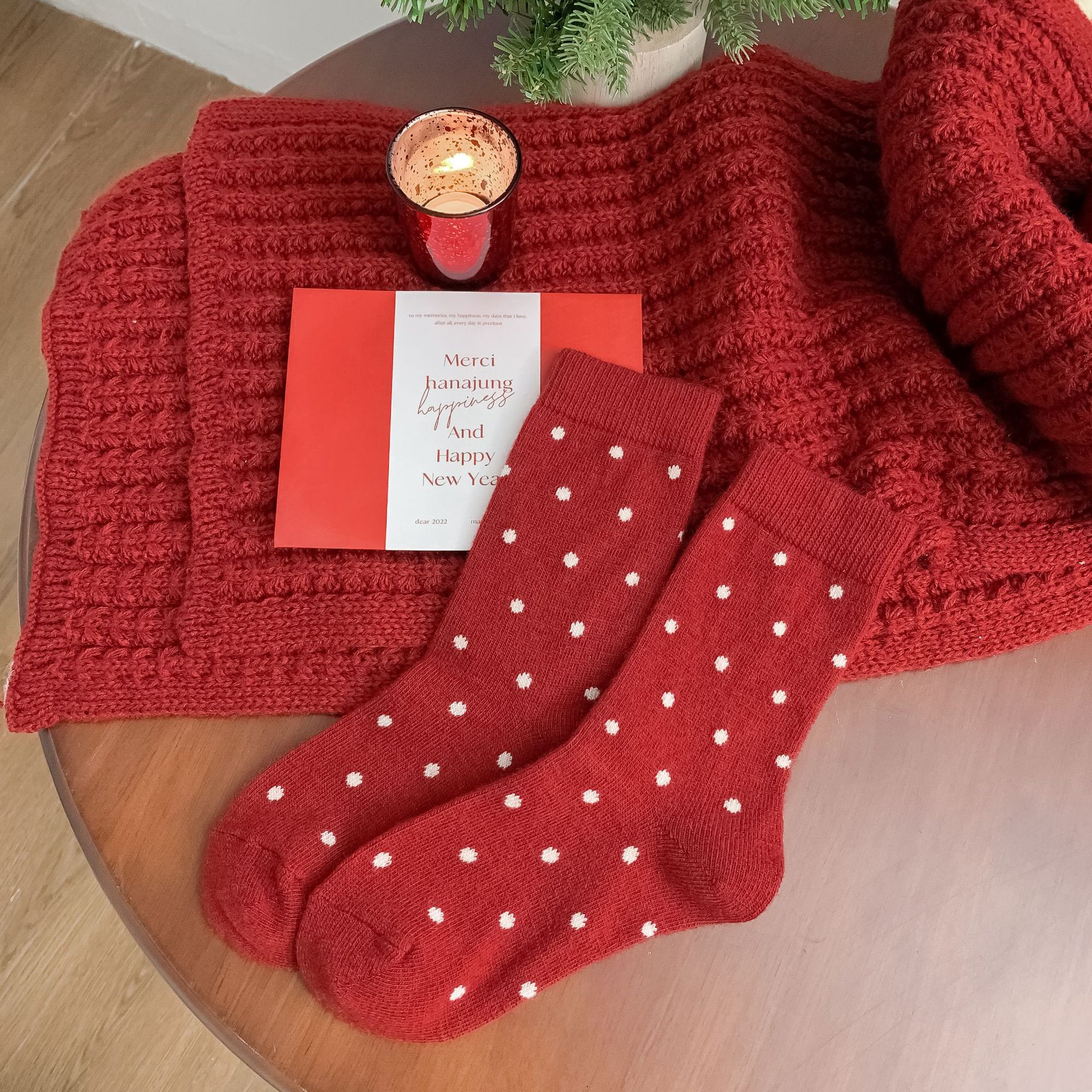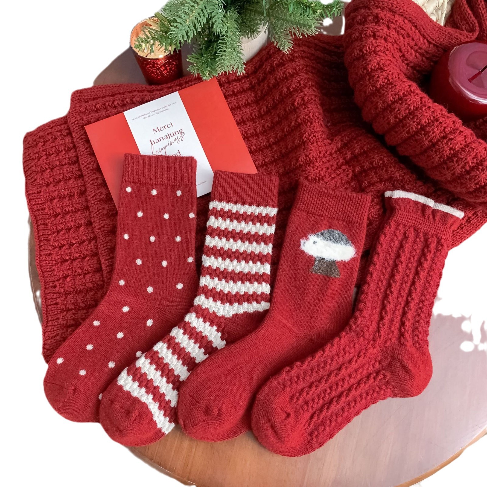 红色羊毛袜子女秋冬款加绒加厚保暖本命年蛇年2025中筒袜韩系可爱