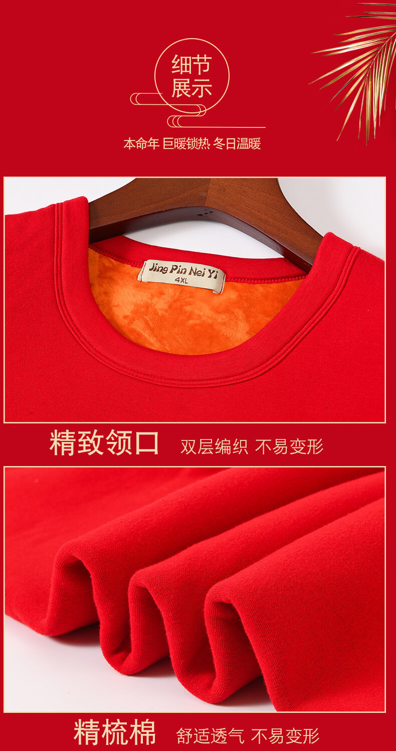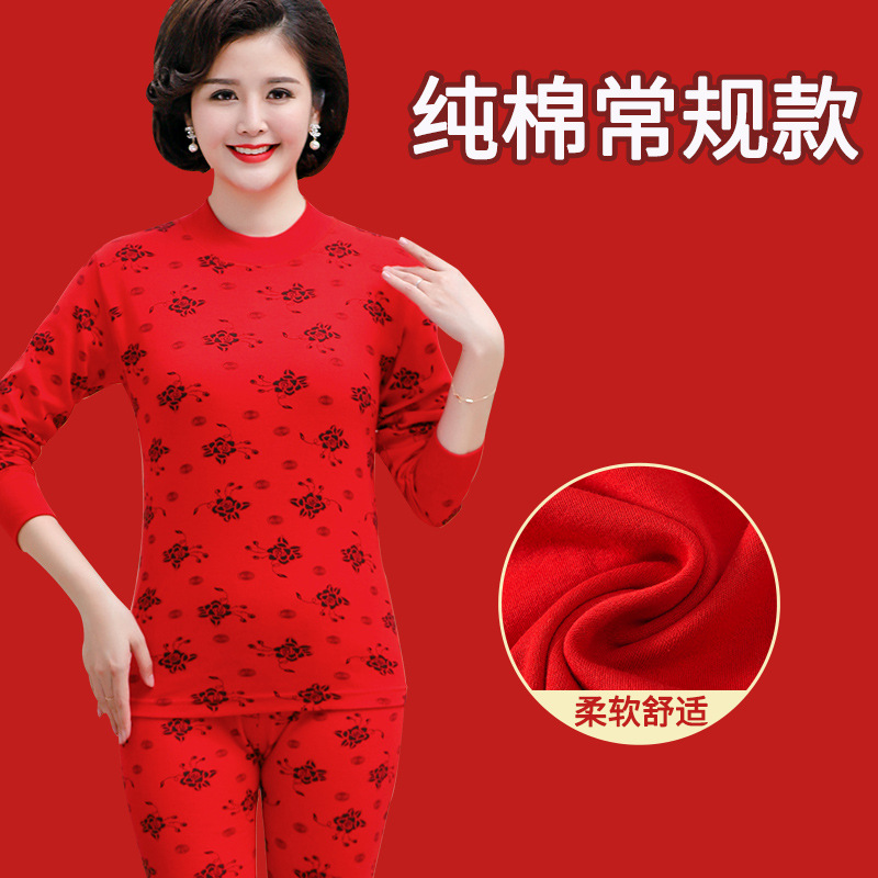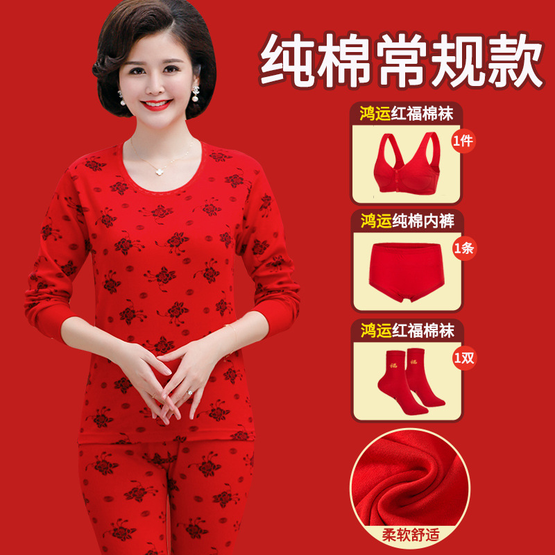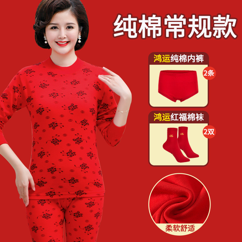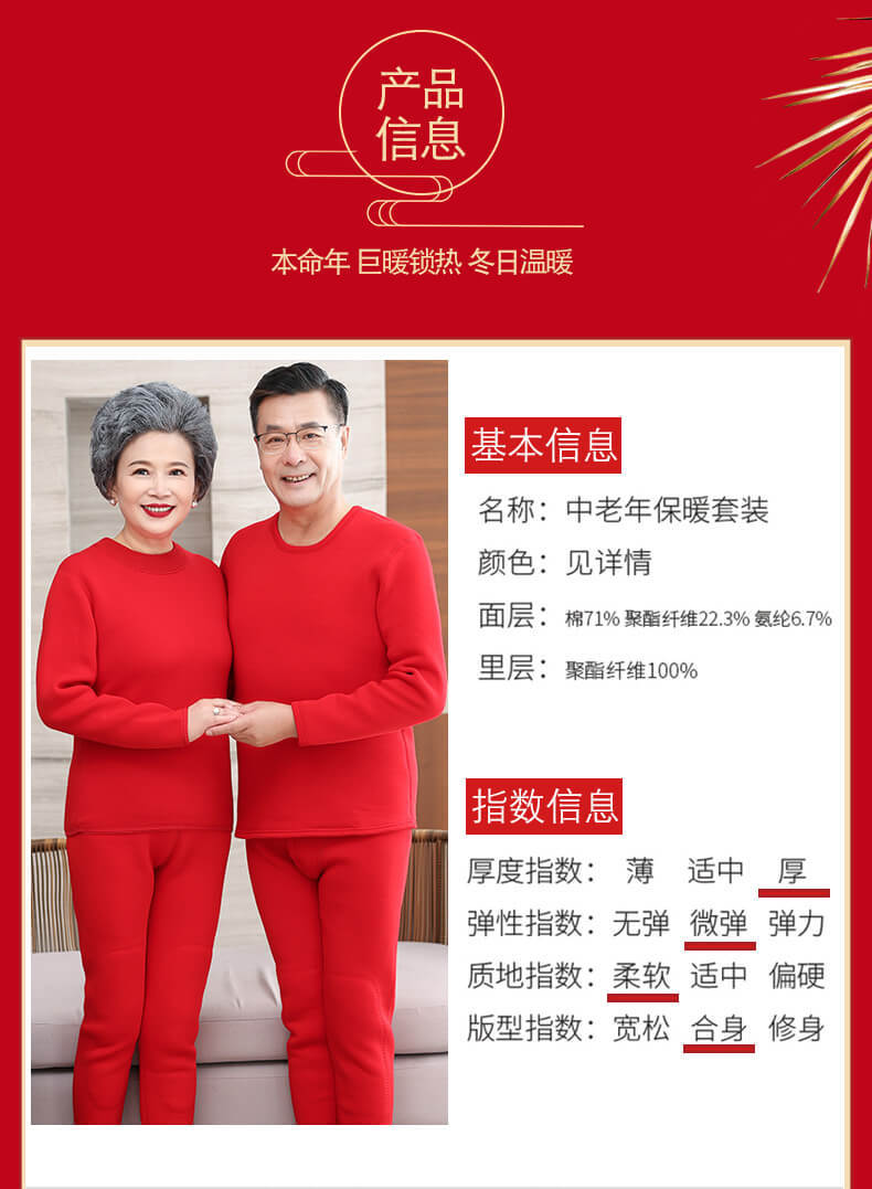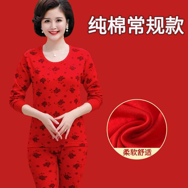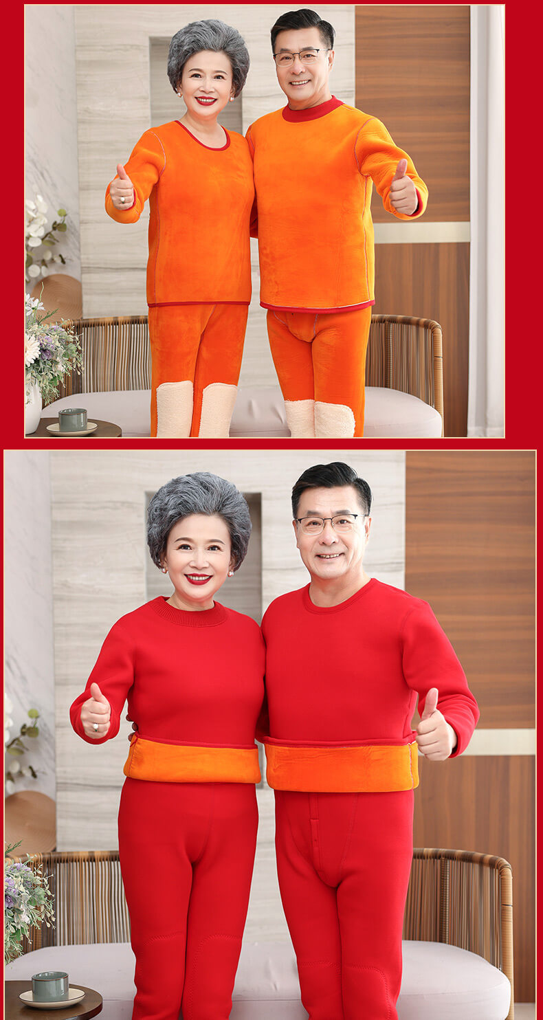 老年人本命年保暖内衣女士加绒加厚套装蛇年妈妈红色保暖衣男护膝