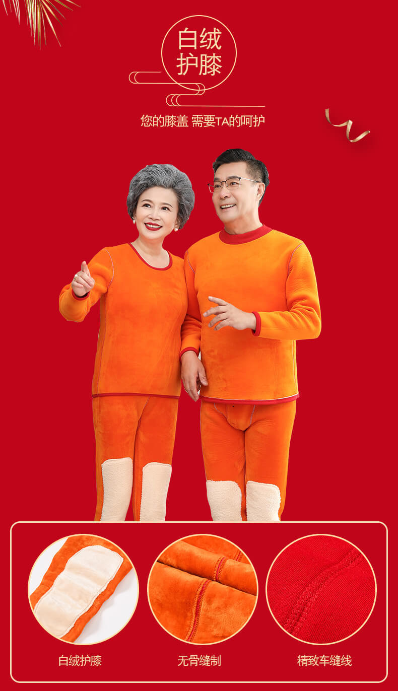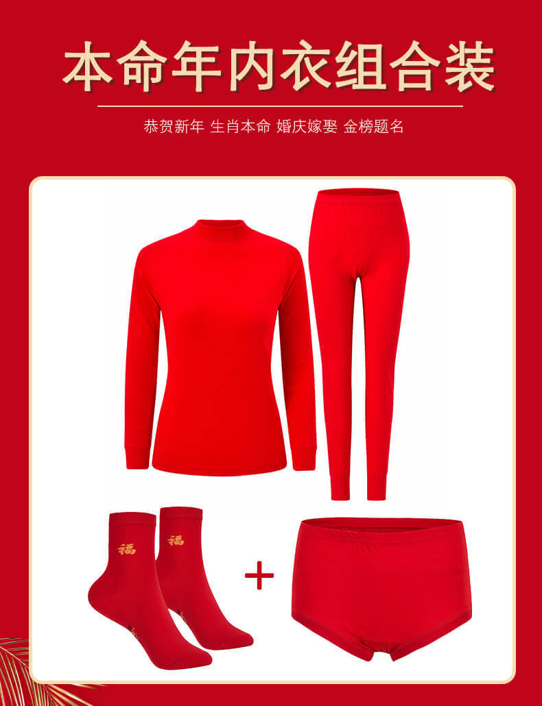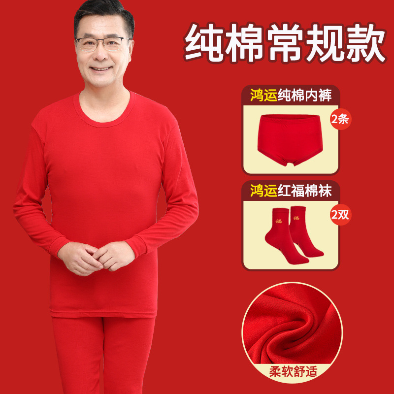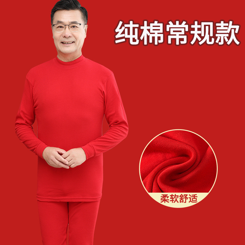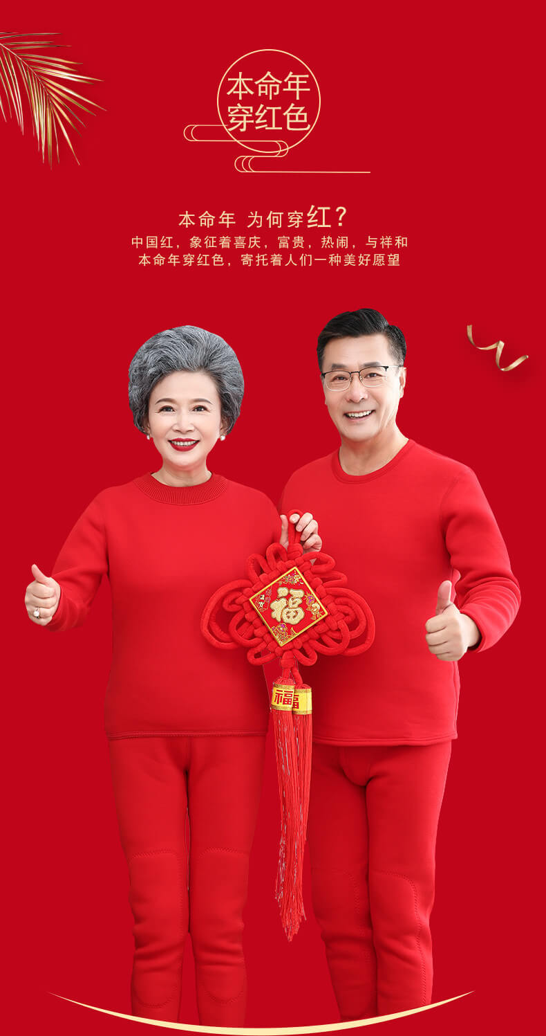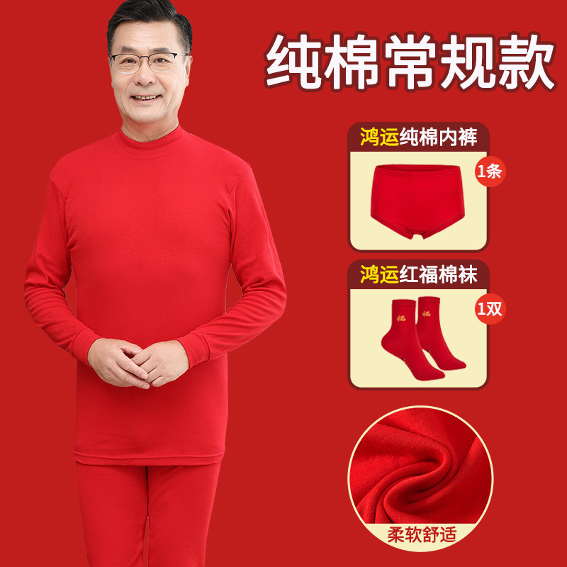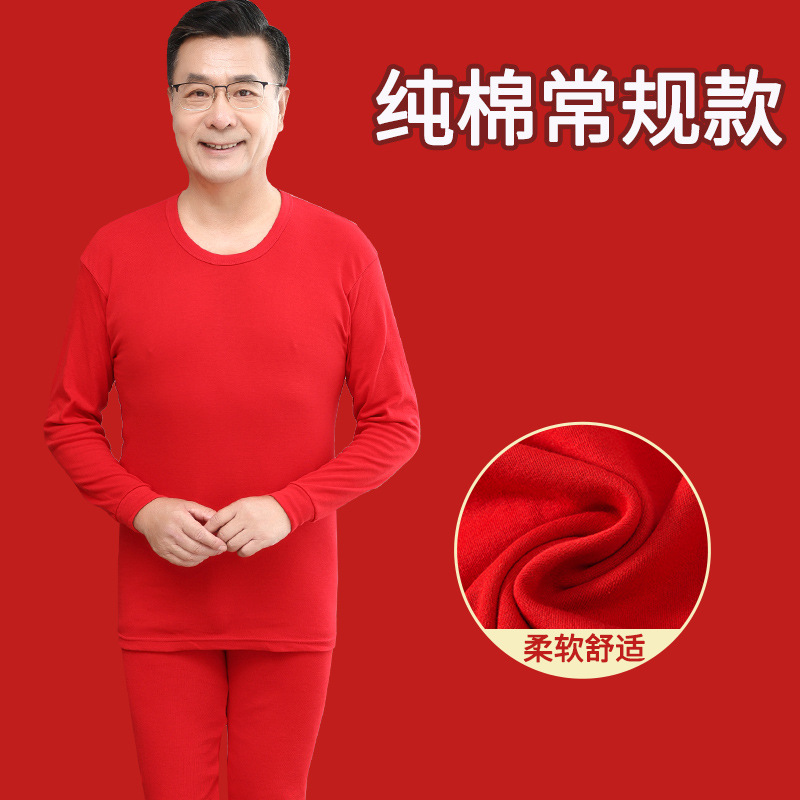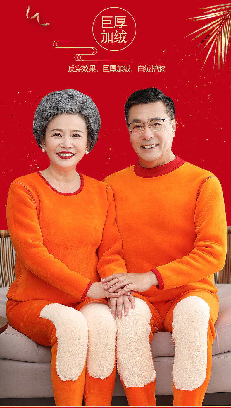 老年人本命年保暖内衣女士加绒加厚套装蛇年妈妈红色保暖衣男护膝