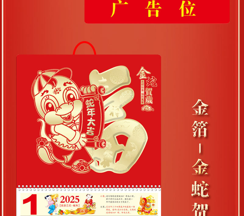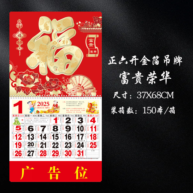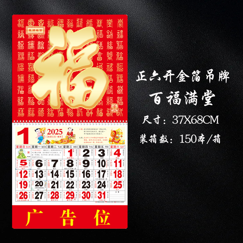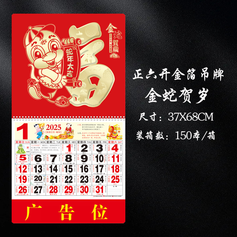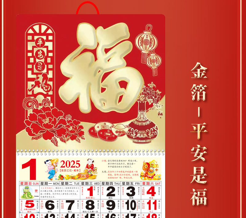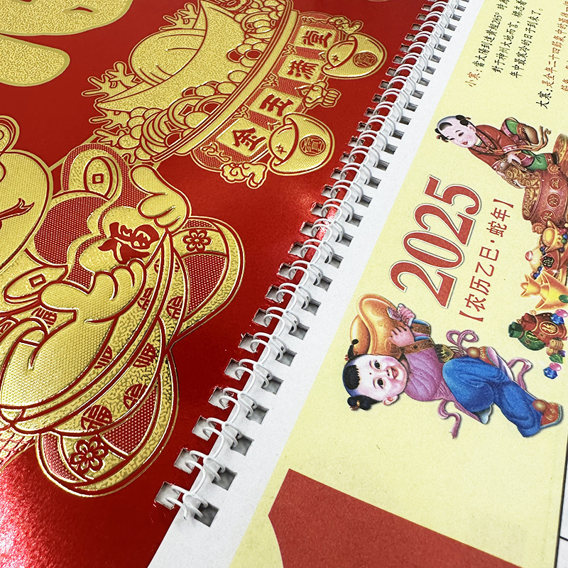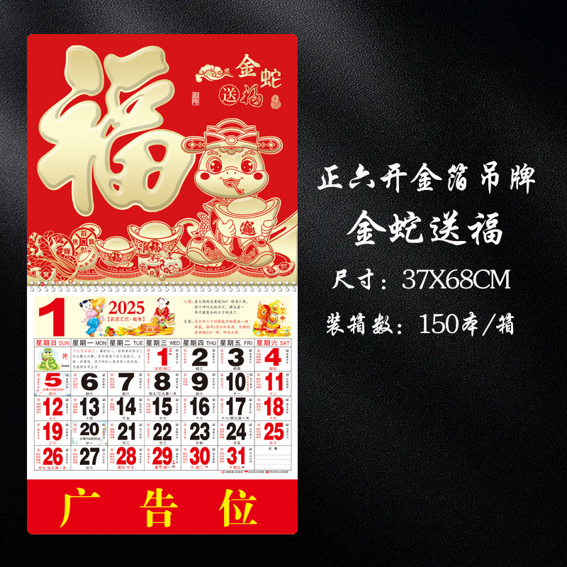蛇年2025正六家用手撕挂历金箔福字吊牌广告logo烫金企业月历批发