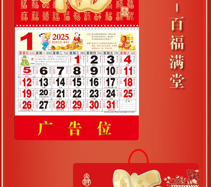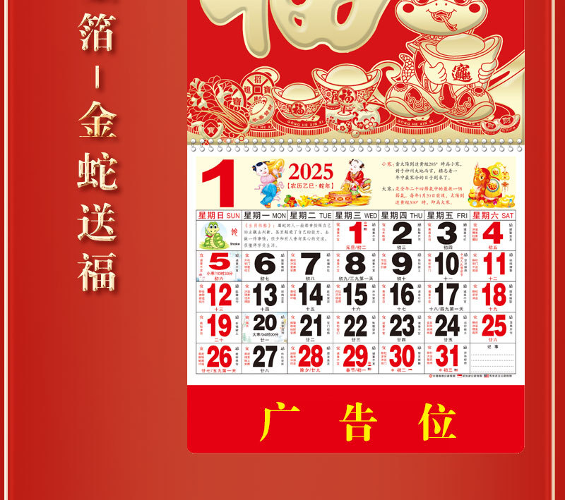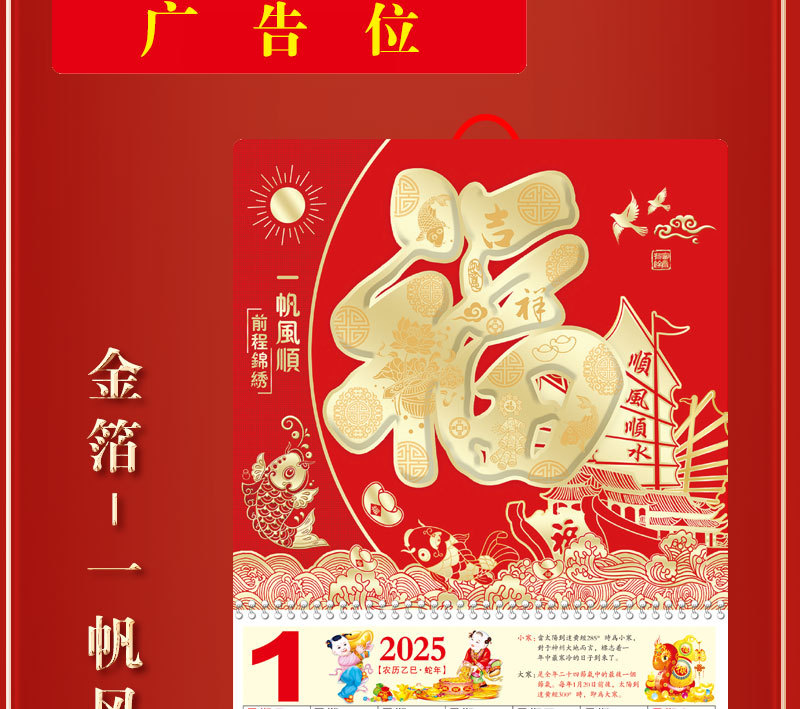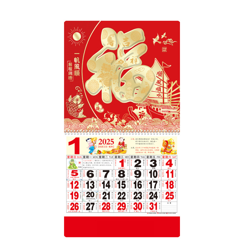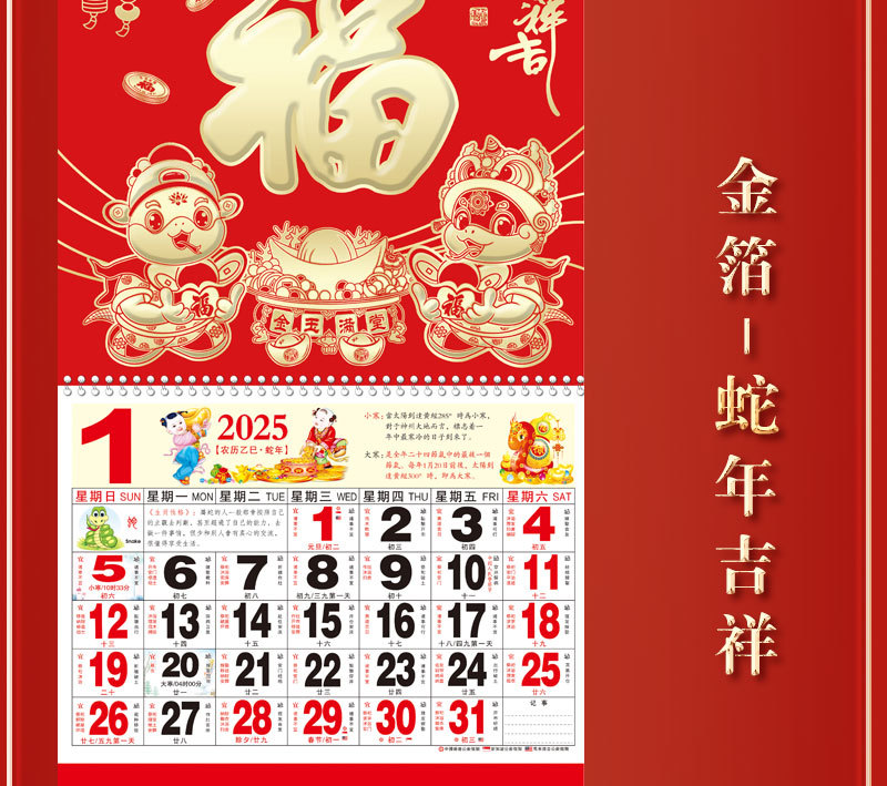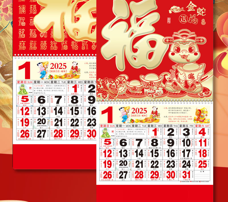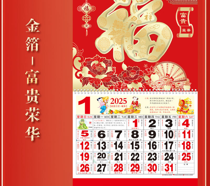 蛇年2025正六家用手撕挂历金箔福字吊牌广告logo烫金企业月历批发