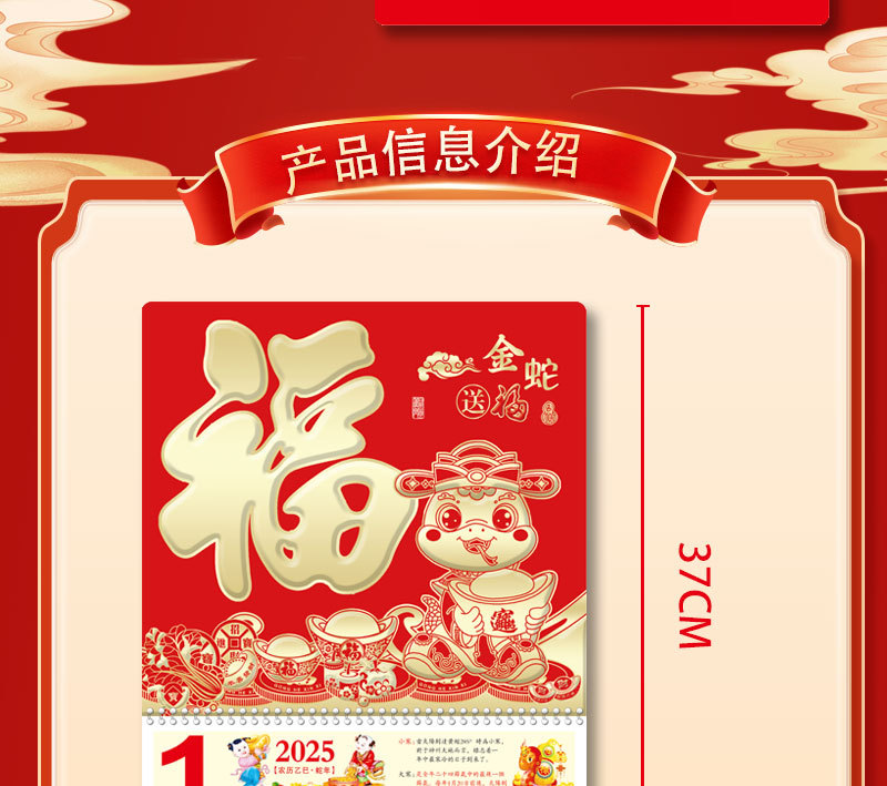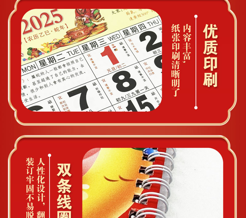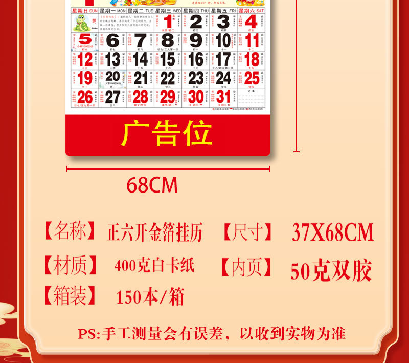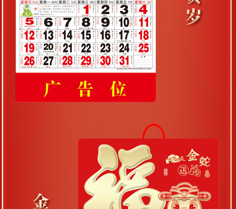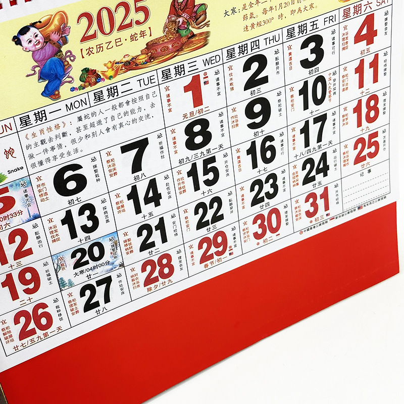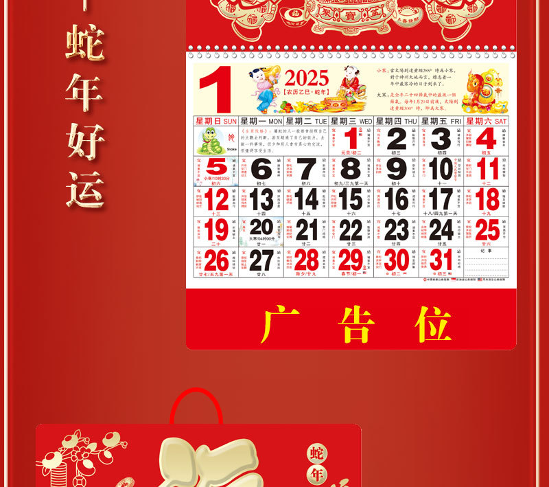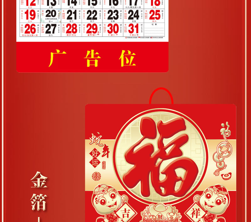 蛇年2025正六家用手撕挂历金箔福字吊牌广告logo烫金企业月历批发