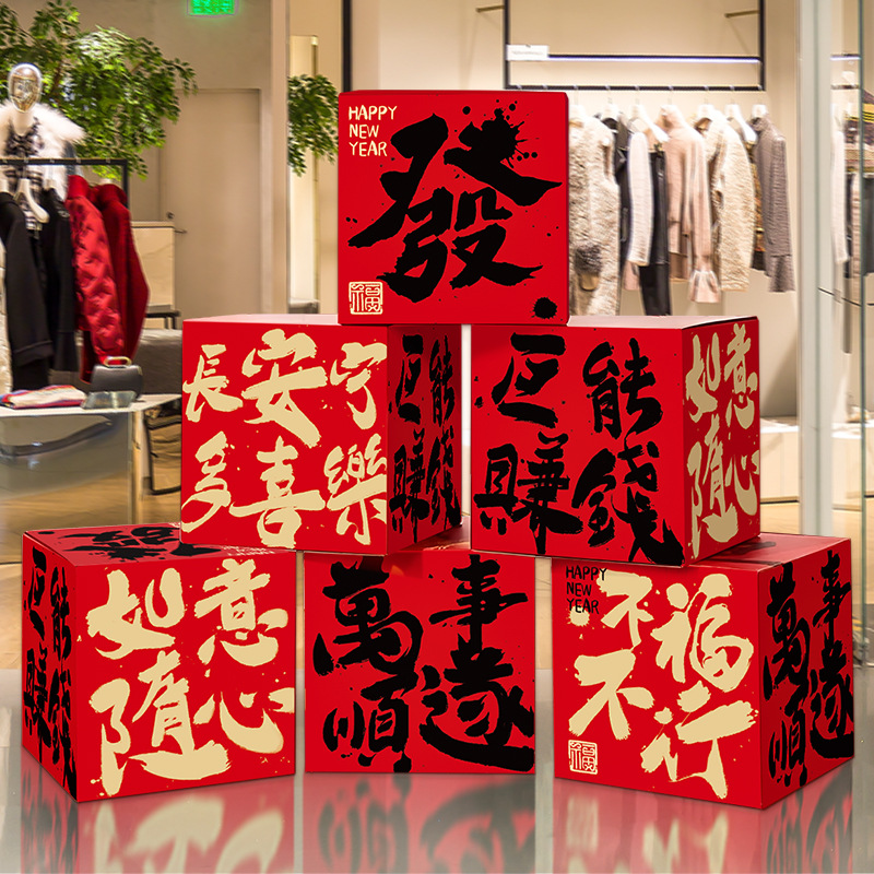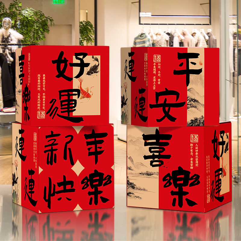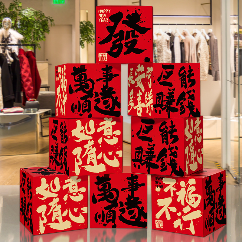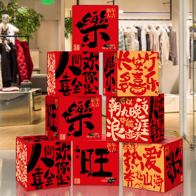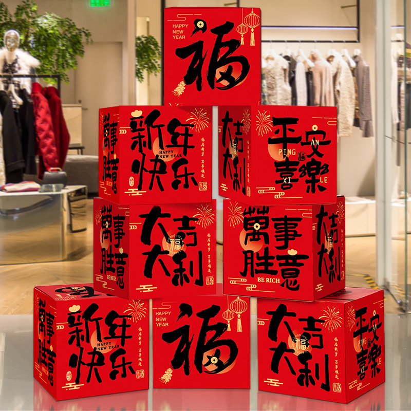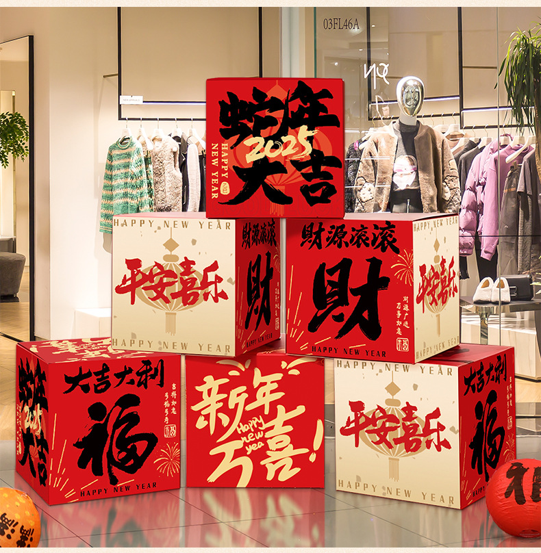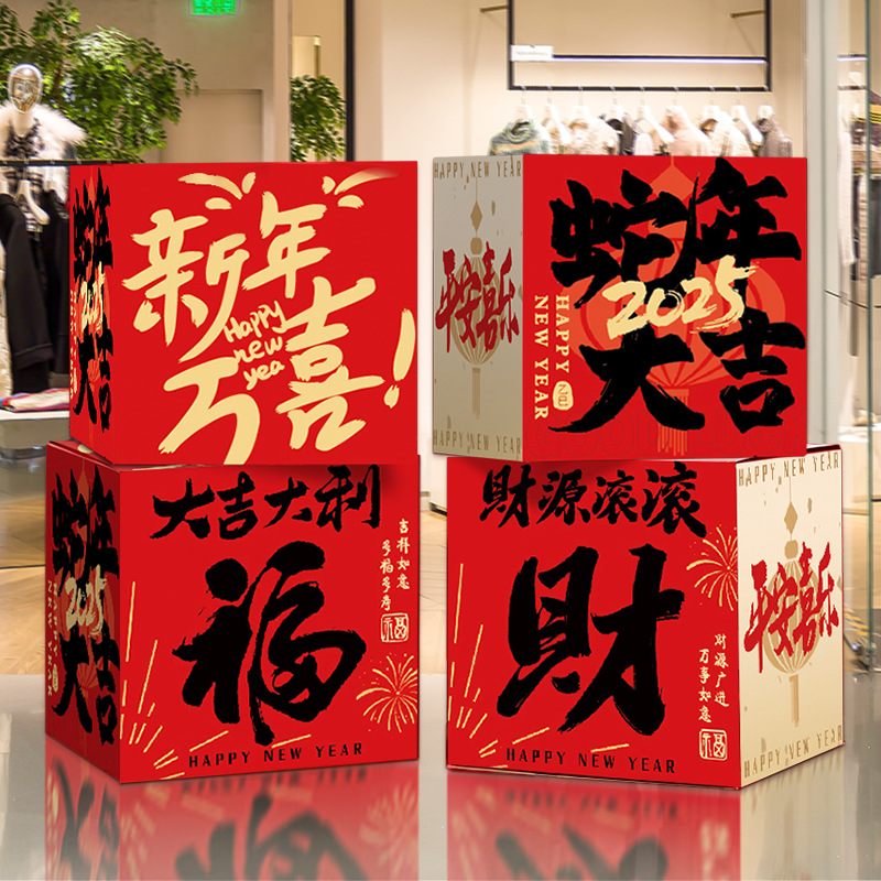 2025新年元旦氛围场景布置装饰商场银行门店过年春节堆头摆件盒子