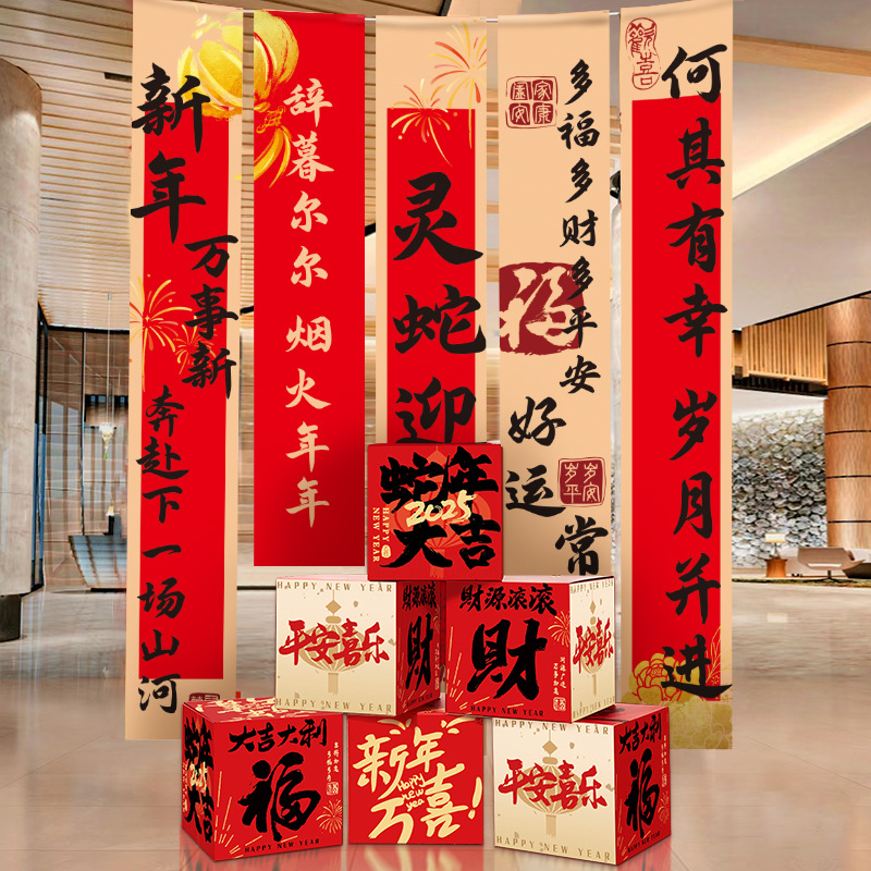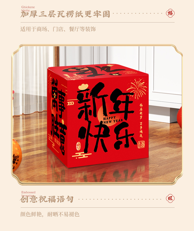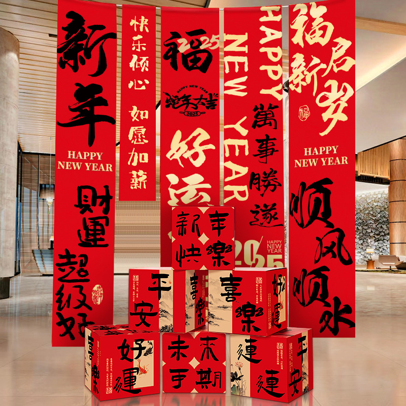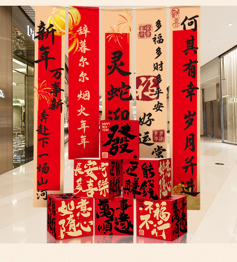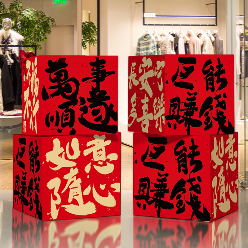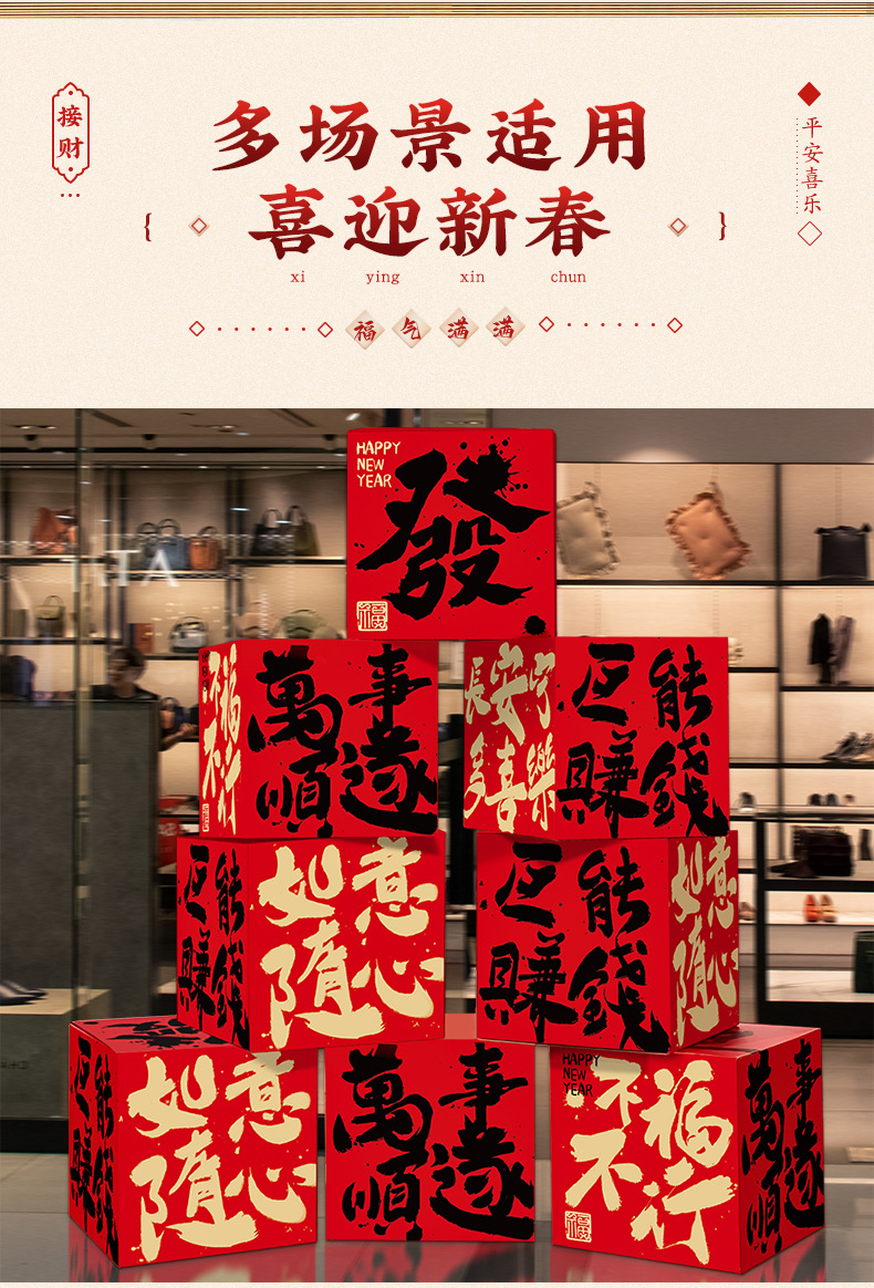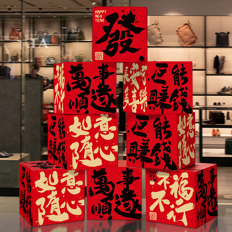 2025新年元旦氛围场景布置装饰商场银行门店过年春节堆头摆件盒子