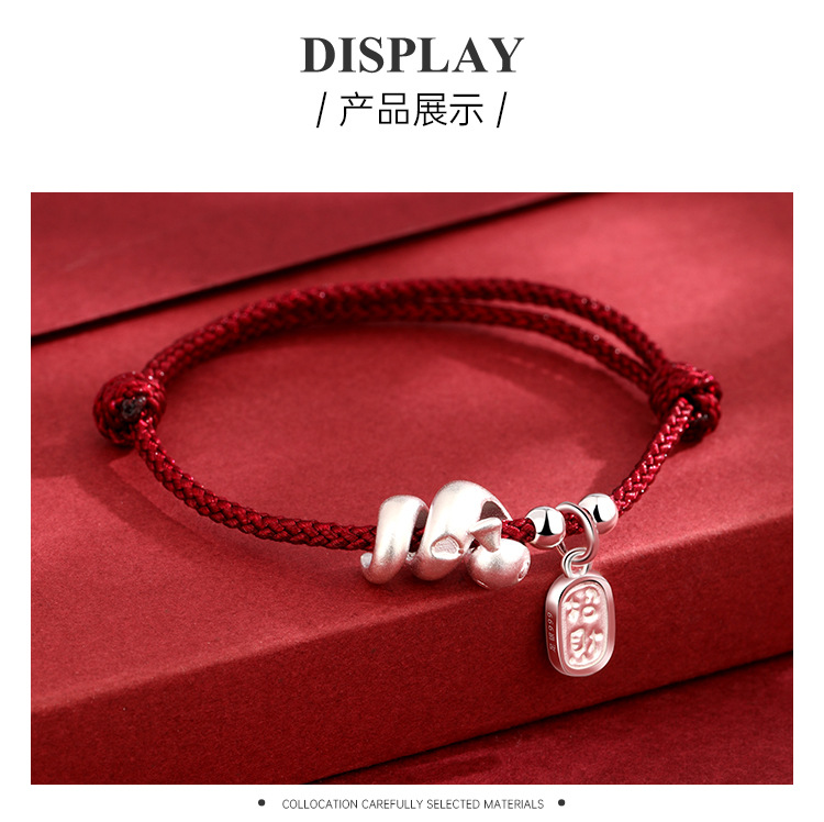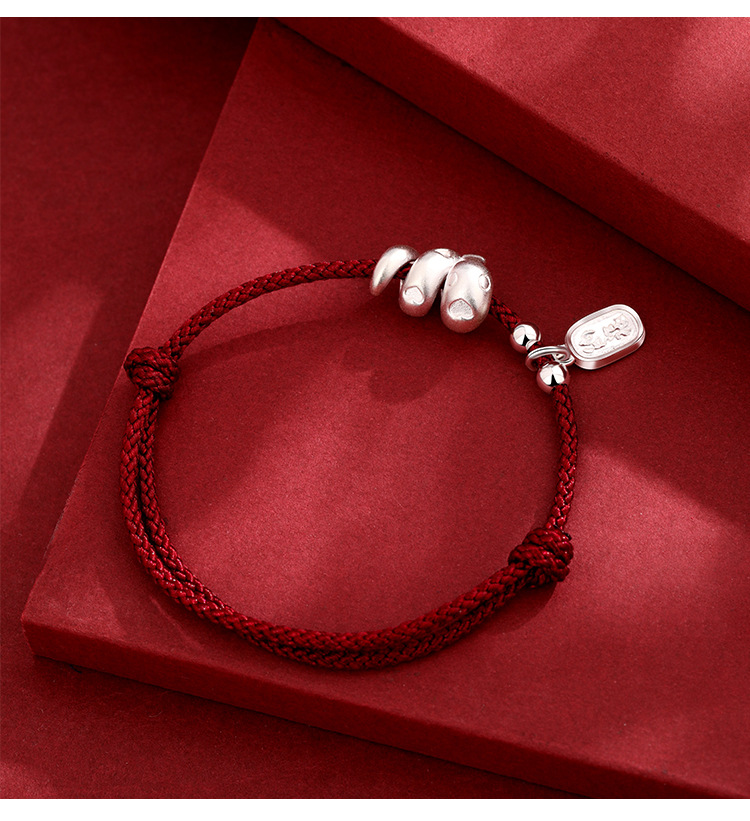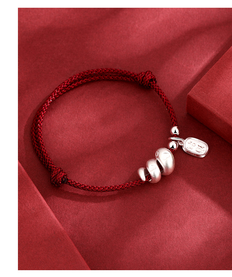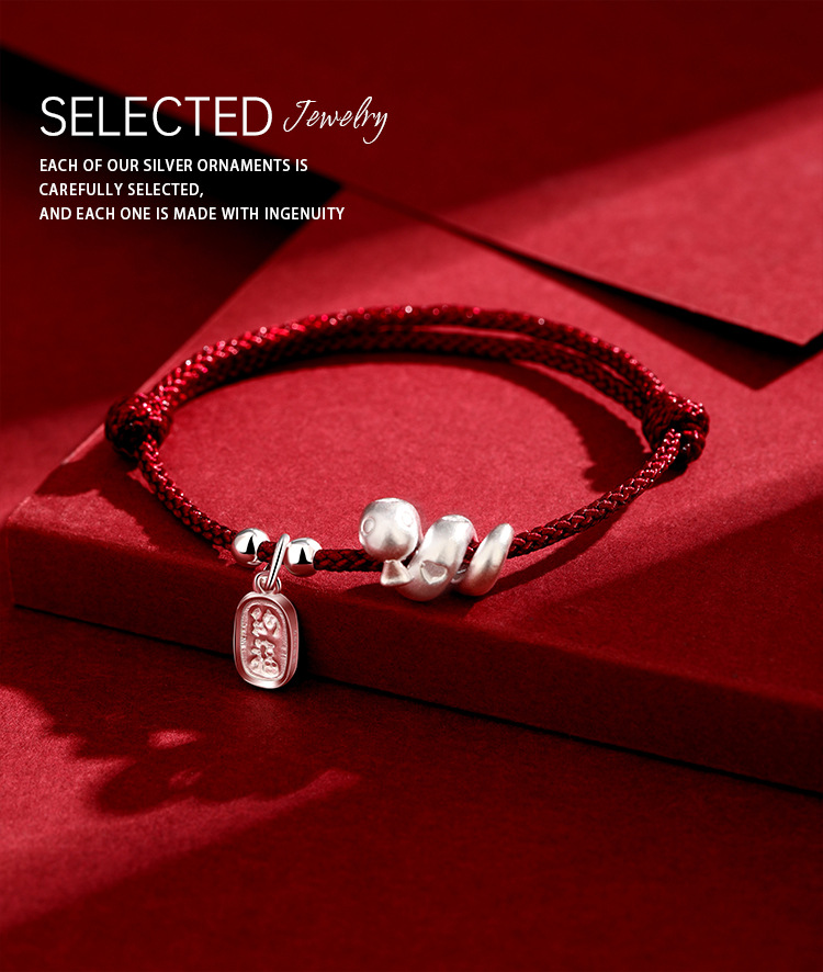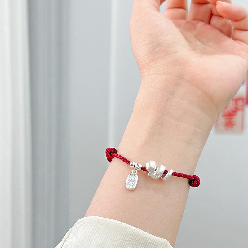 2025年新款999足银纳福生肖蛇手绳本命年蛇年手工编织红绳手链女