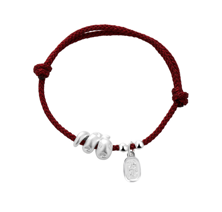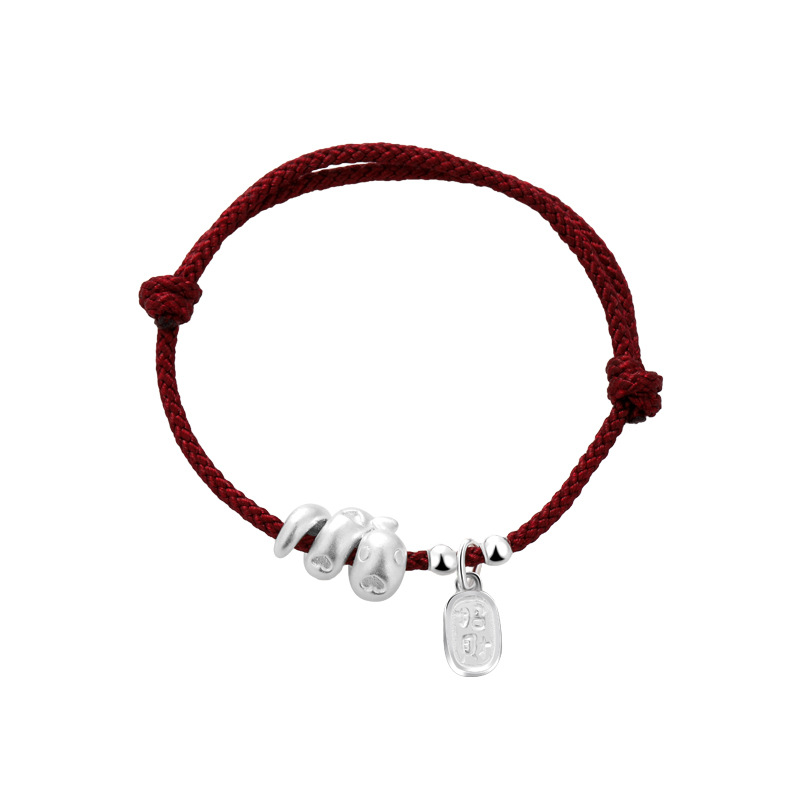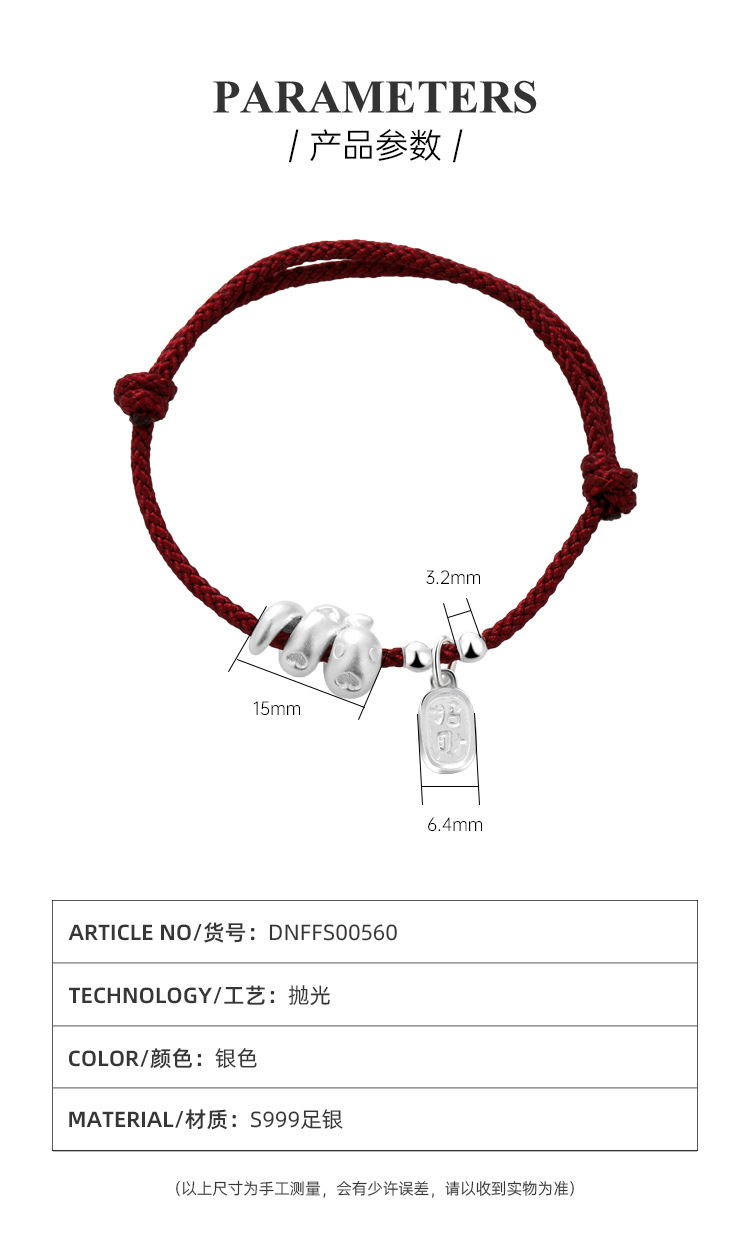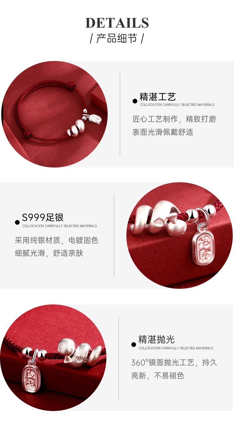 2025年新款999足银纳福生肖蛇手绳本命年蛇年手工编织红绳手链女