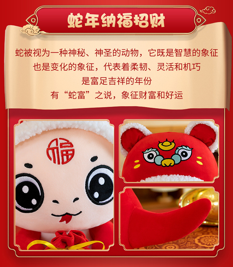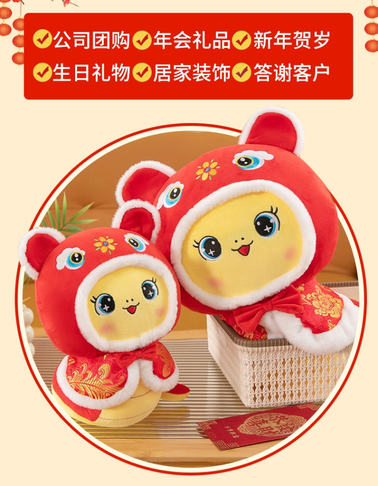 2025蛇年吉祥物毛绒玩具印logo生肖蛇娃娃公仔小蛇批玩偶年会礼发
