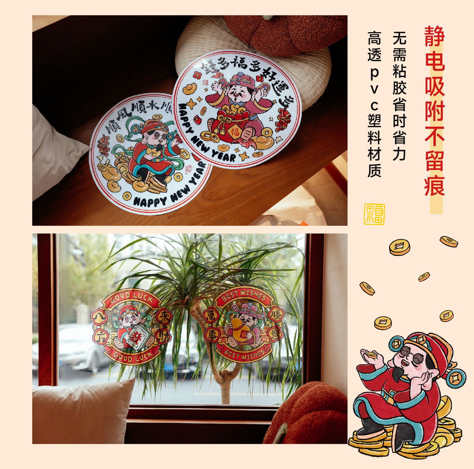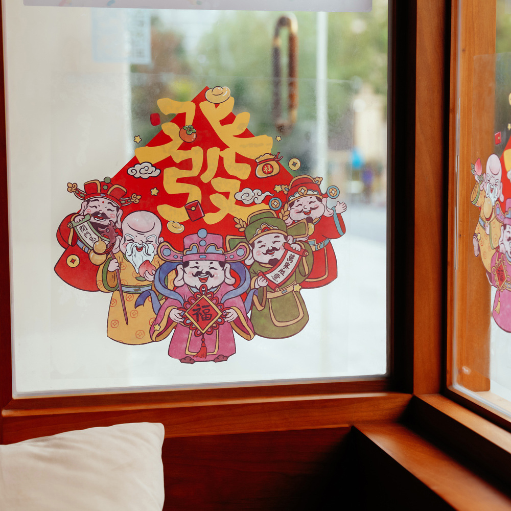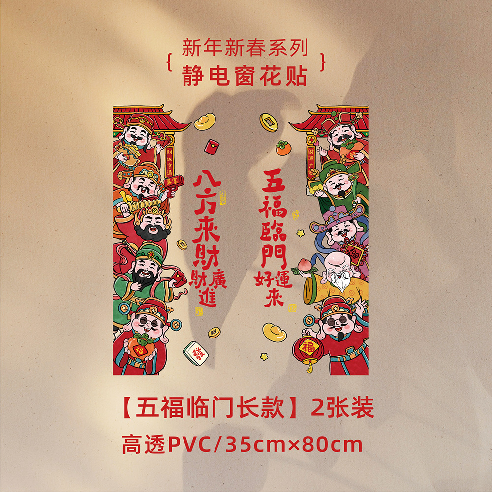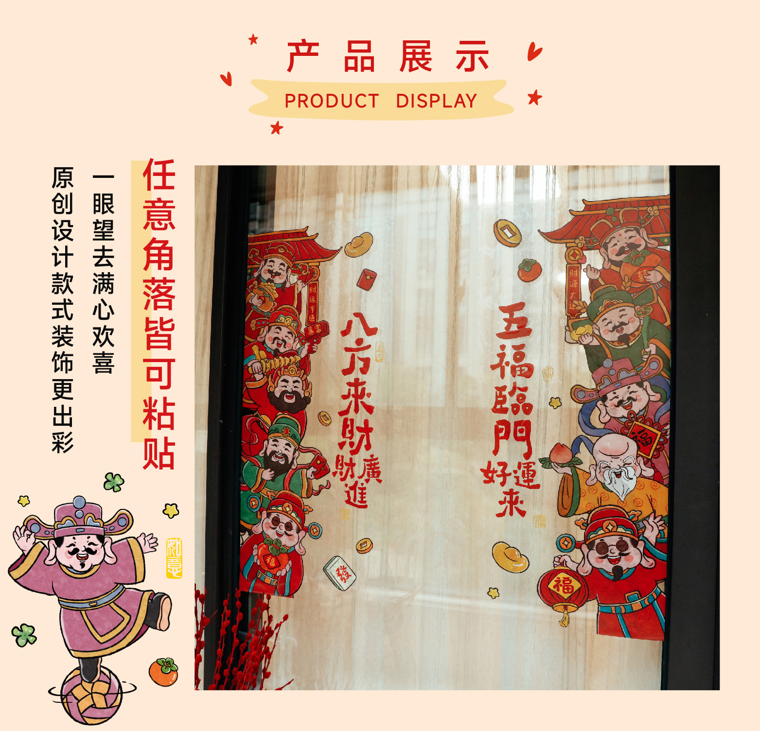 新款蛇年五福临门装饰窗花贴画春节乔迁开业橱窗玻璃门贴静电贴