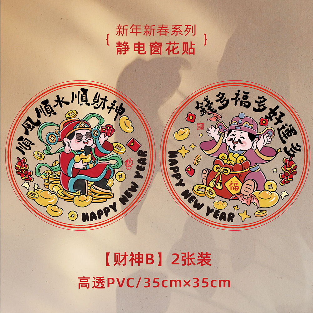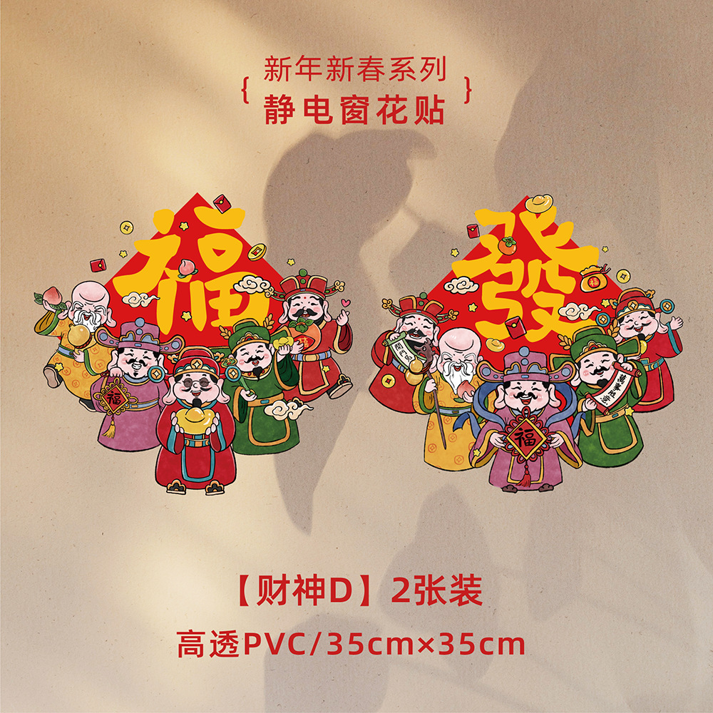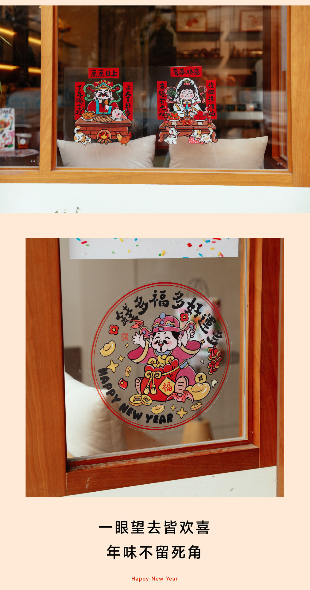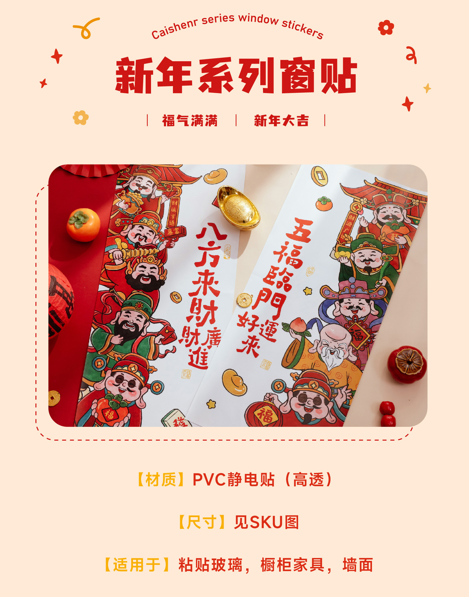 新款蛇年五福临门装饰窗花贴画春节乔迁开业橱窗玻璃门贴静电贴