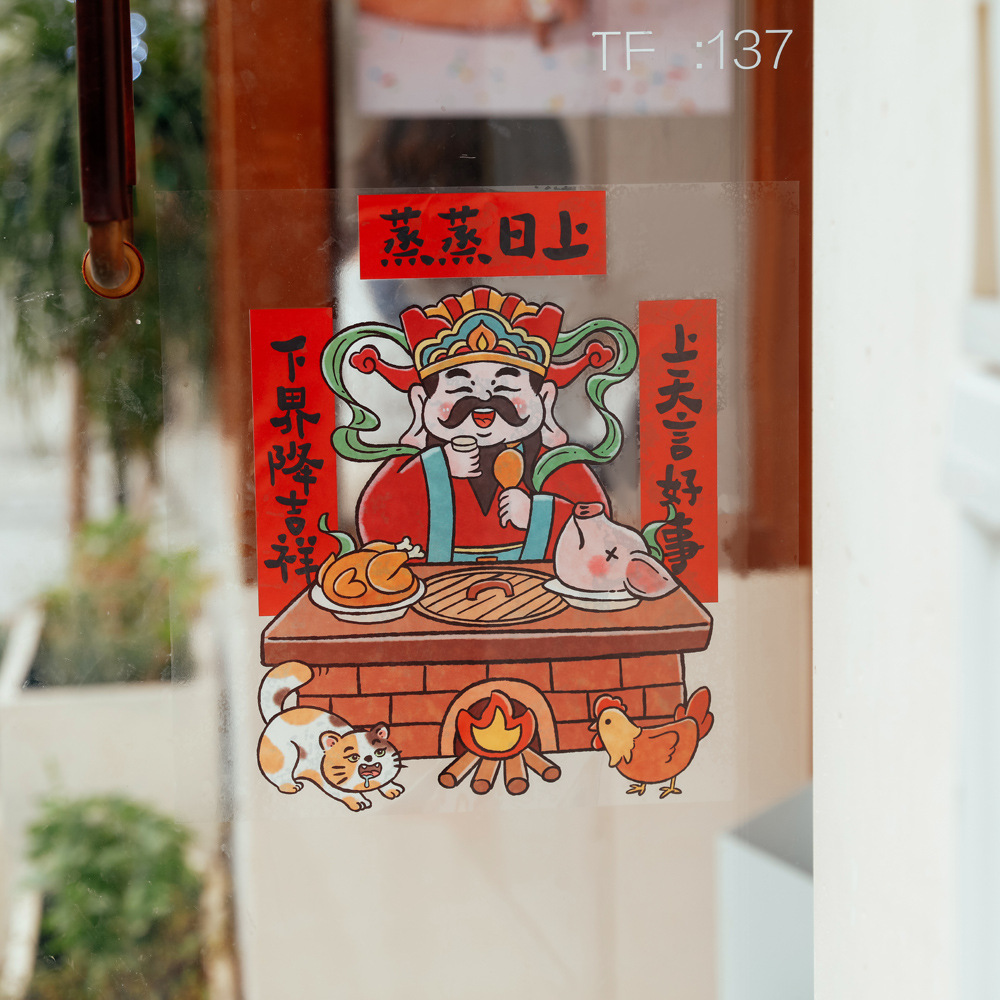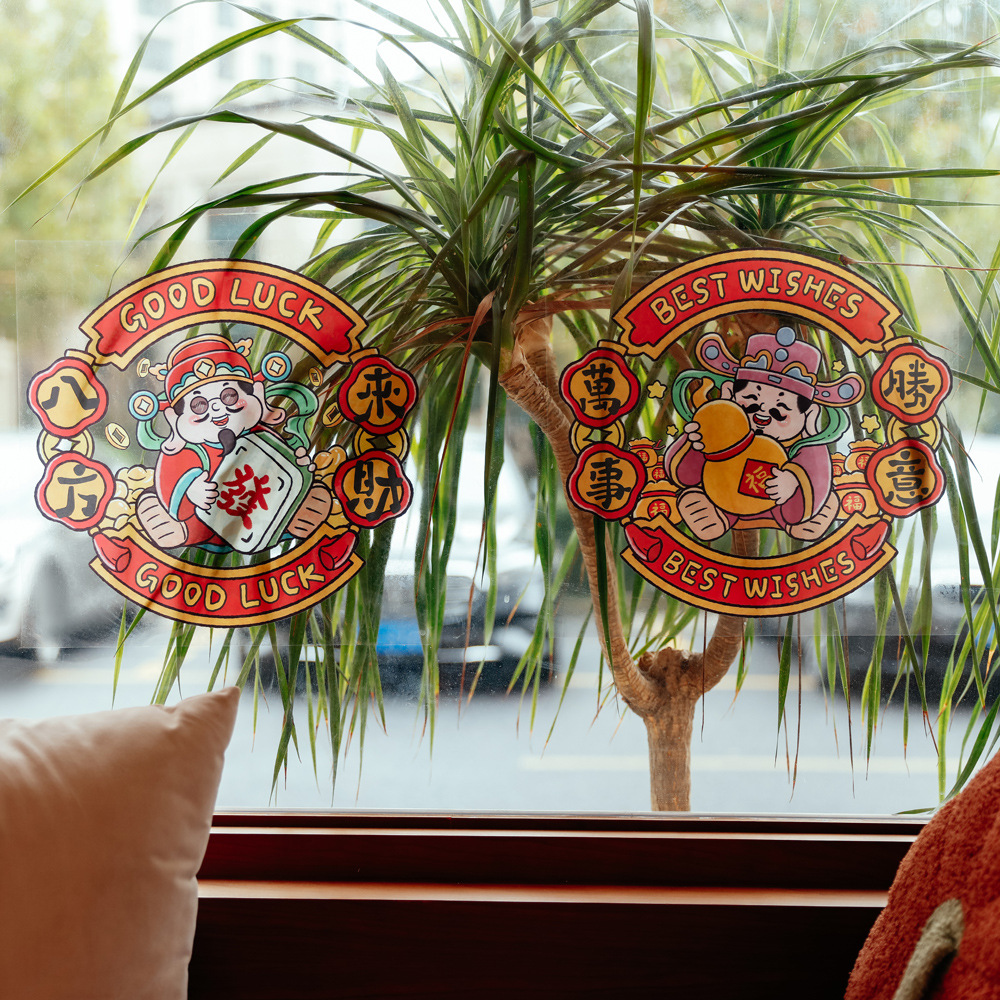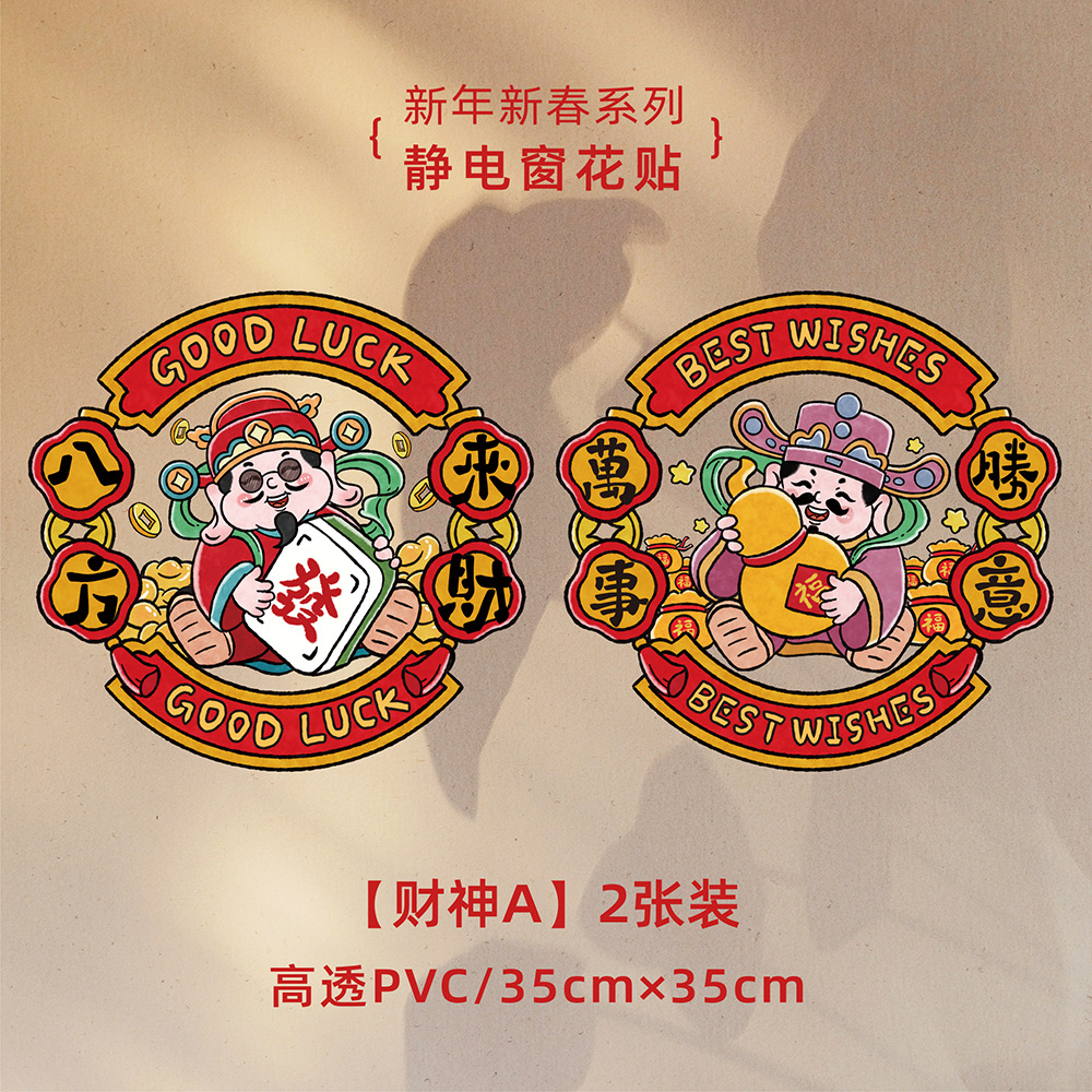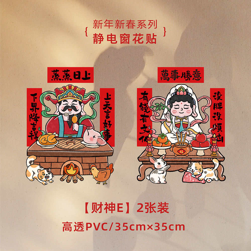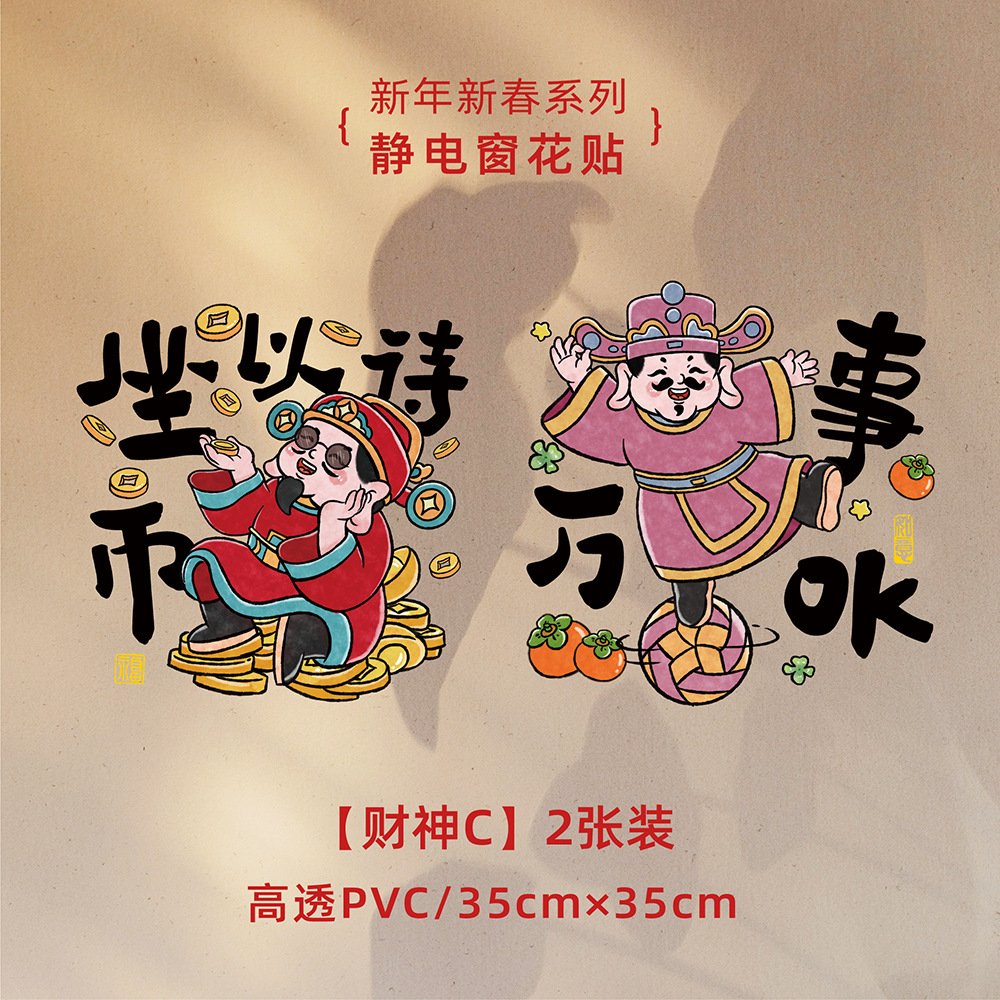 新款蛇年五福临门装饰窗花贴画春节乔迁开业橱窗玻璃门贴静电贴