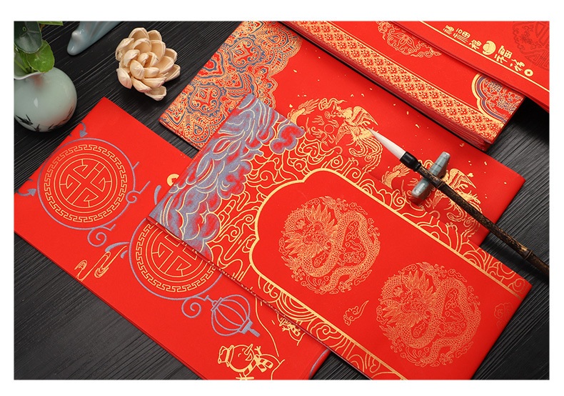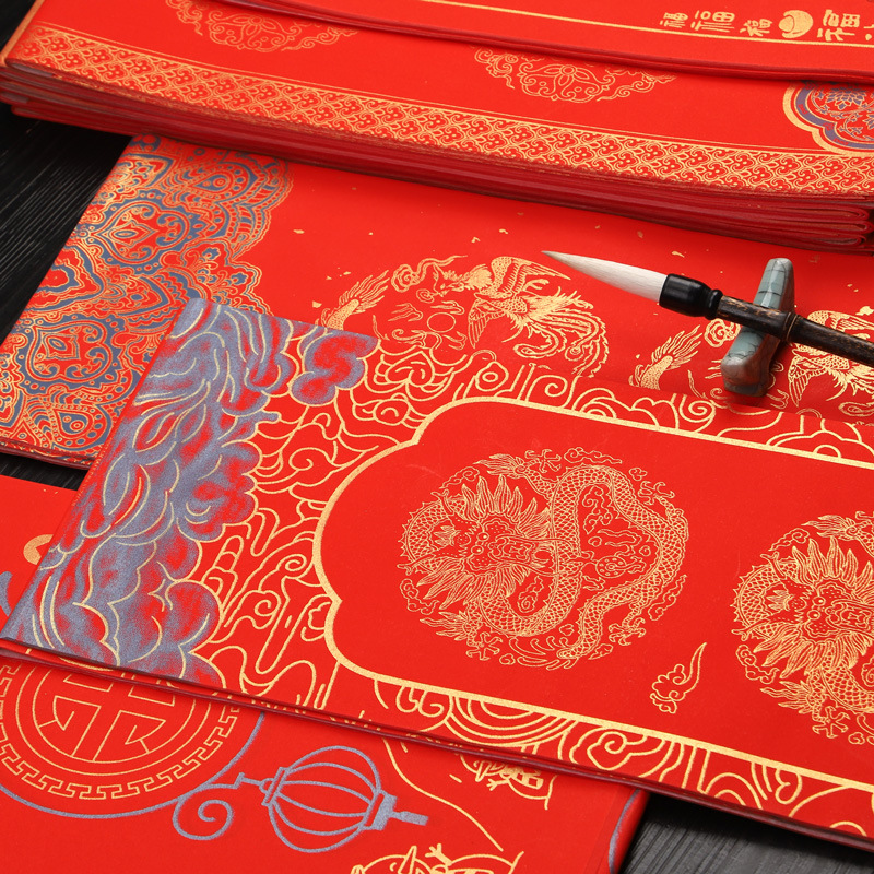 2025蛇年对联纸空白手写春联纸万年红书法宣纸洒金七言批发加厚