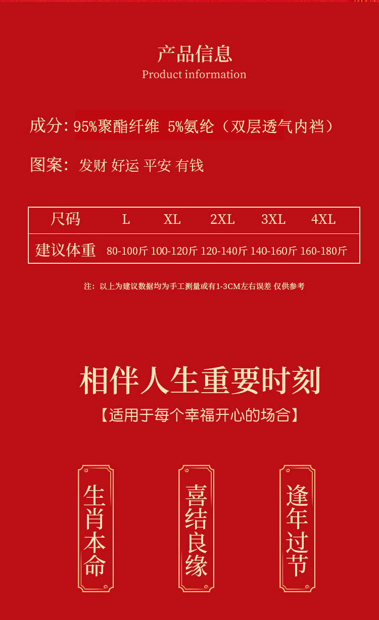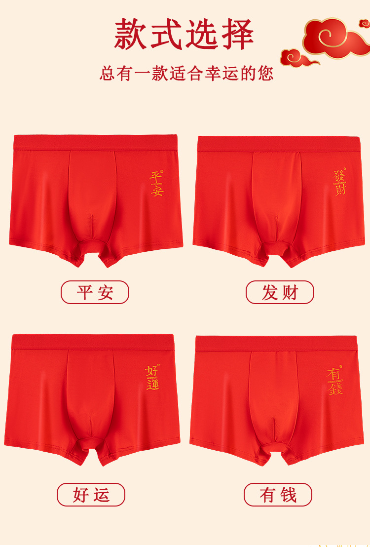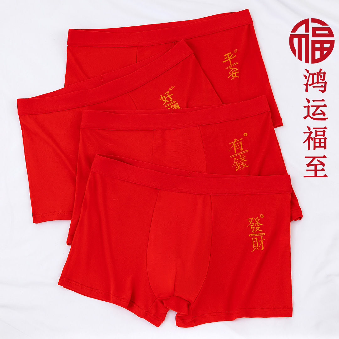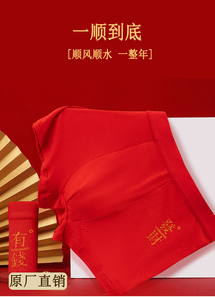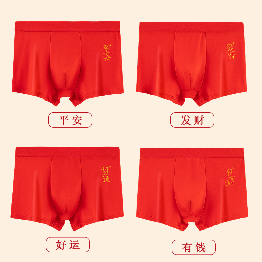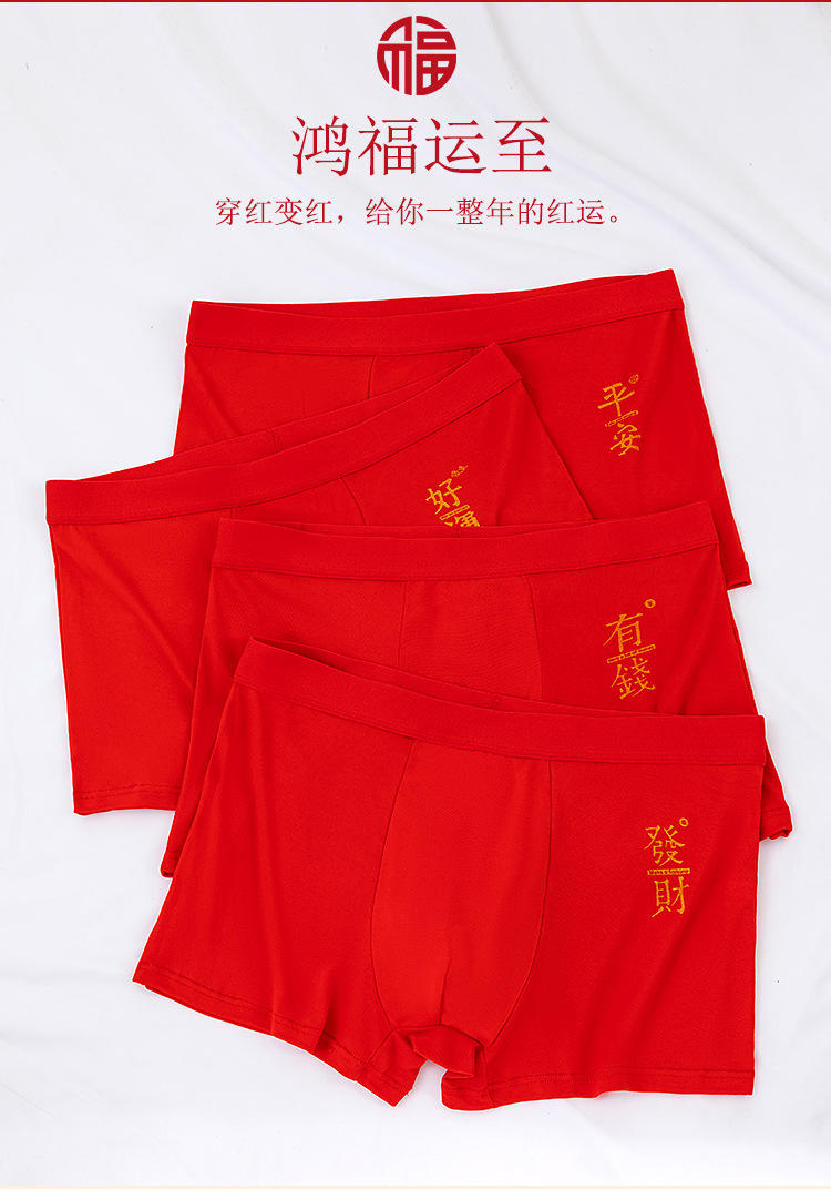 蛇年本命年内裤男士高档平角四角裤新年红内裤男款源头工厂直销