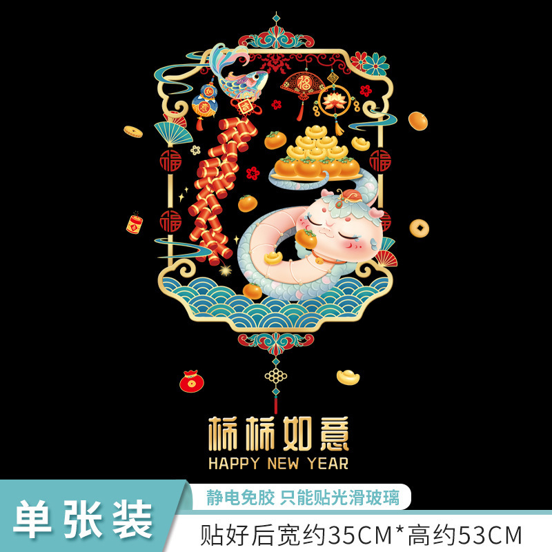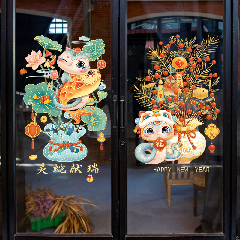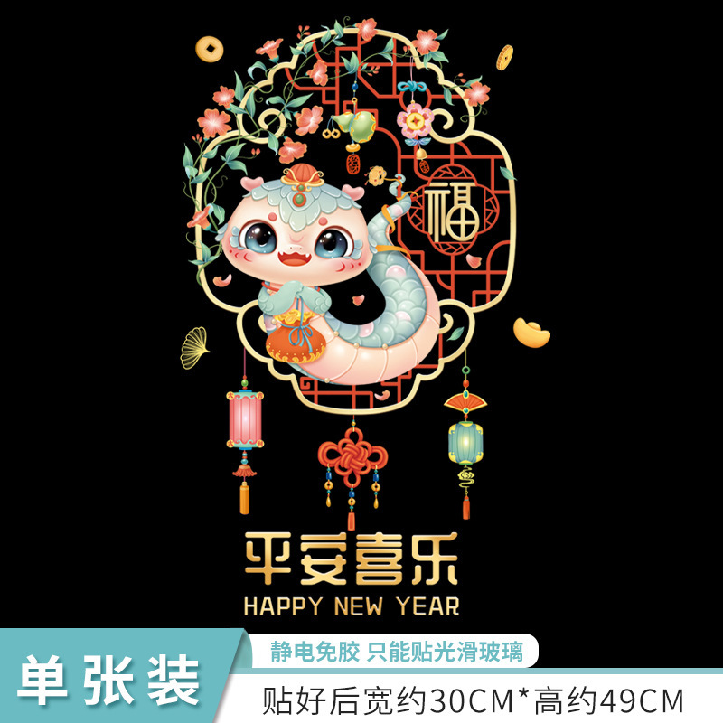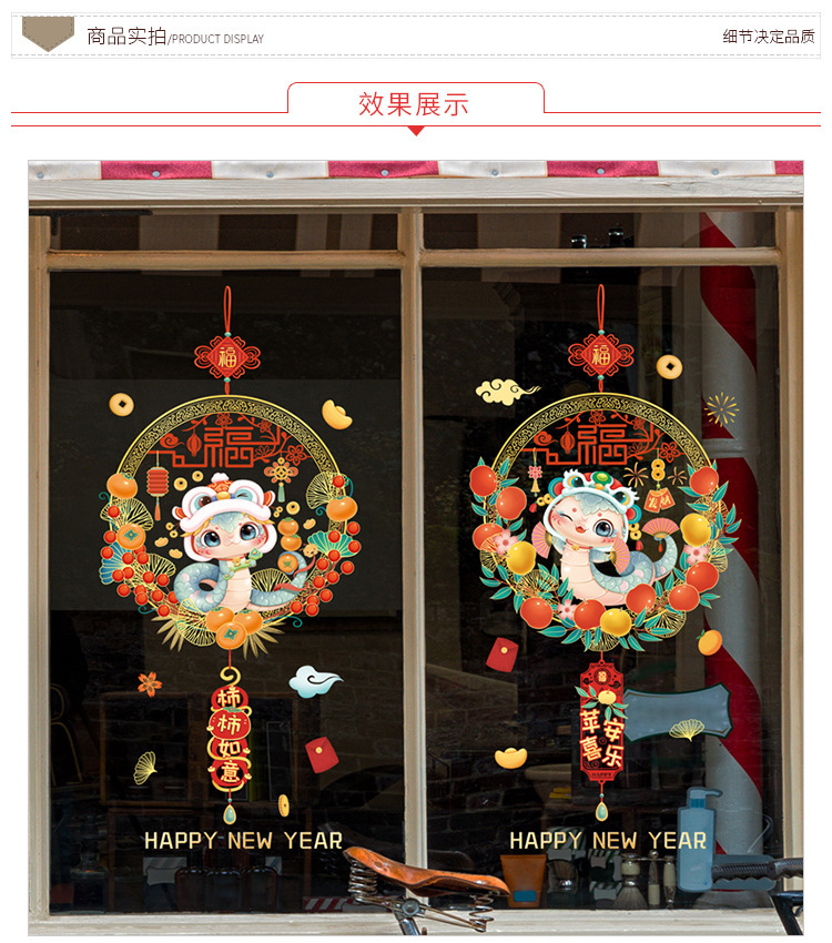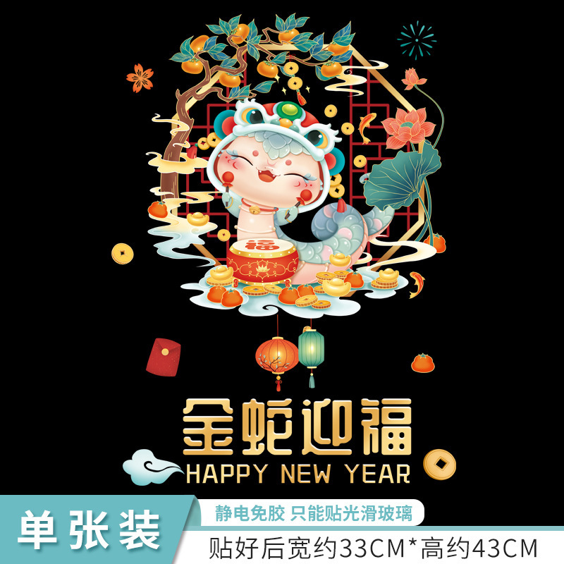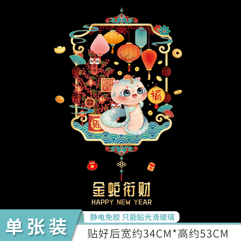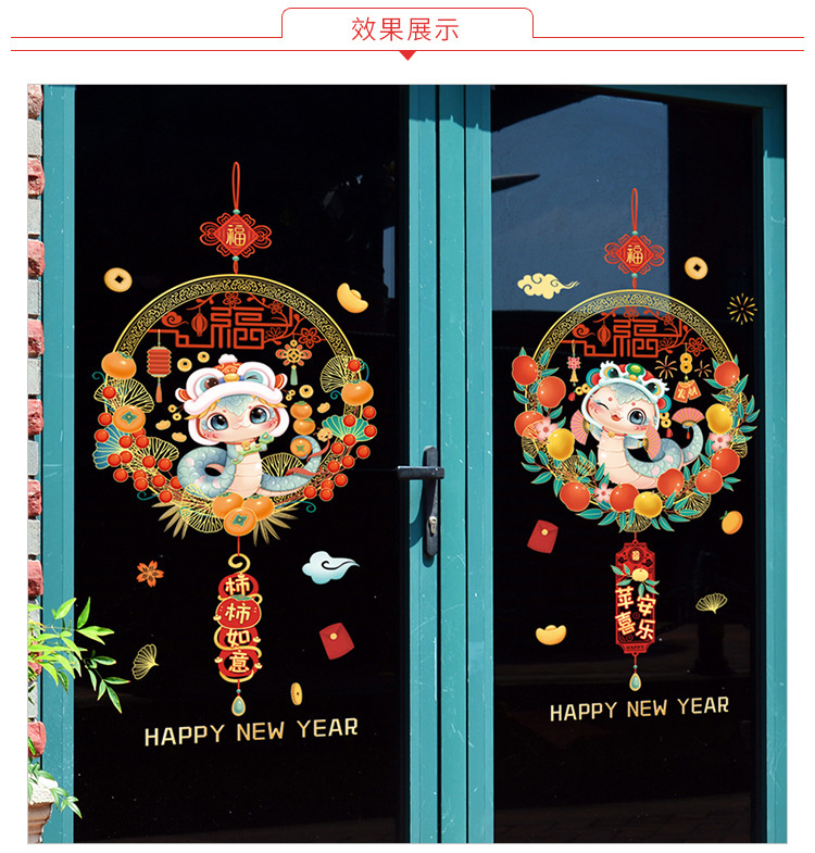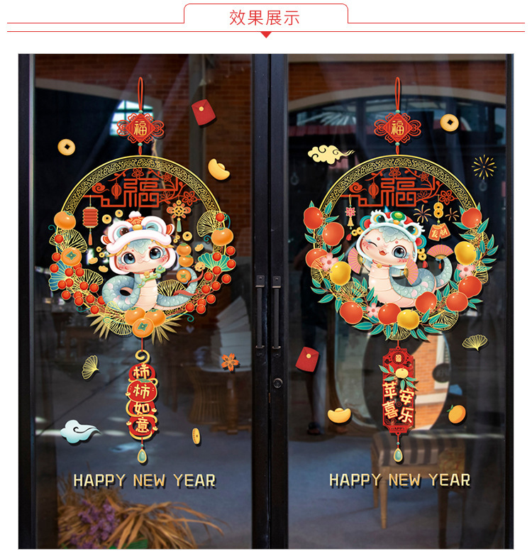 2025蛇年生肖静电贴过年喜庆布置窗花贴春节商场橱窗装饰玻璃门贴