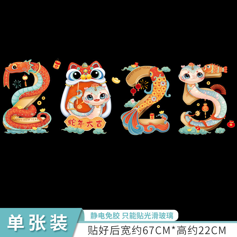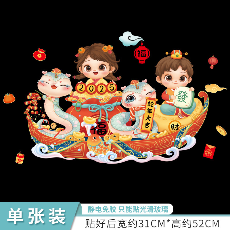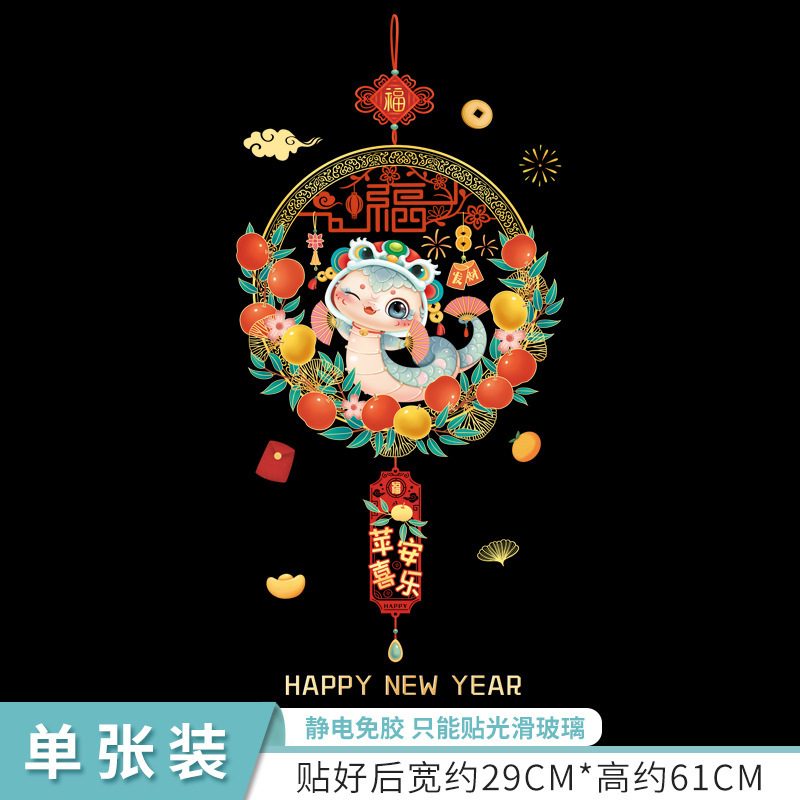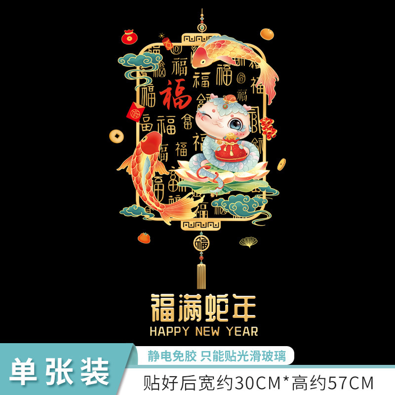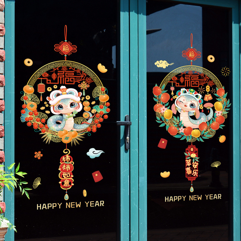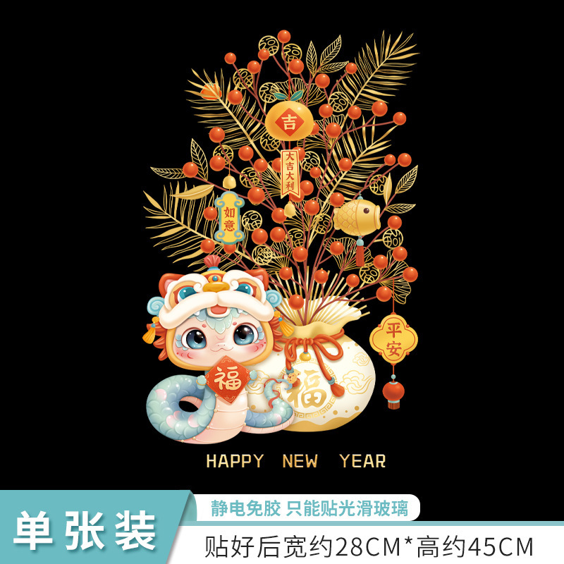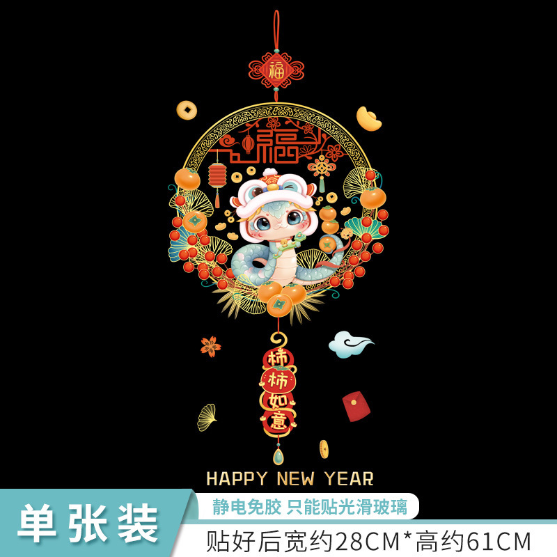 2025蛇年生肖静电贴过年喜庆布置窗花贴春节商场橱窗装饰玻璃门贴