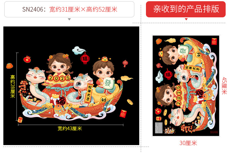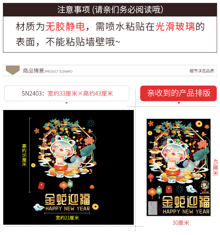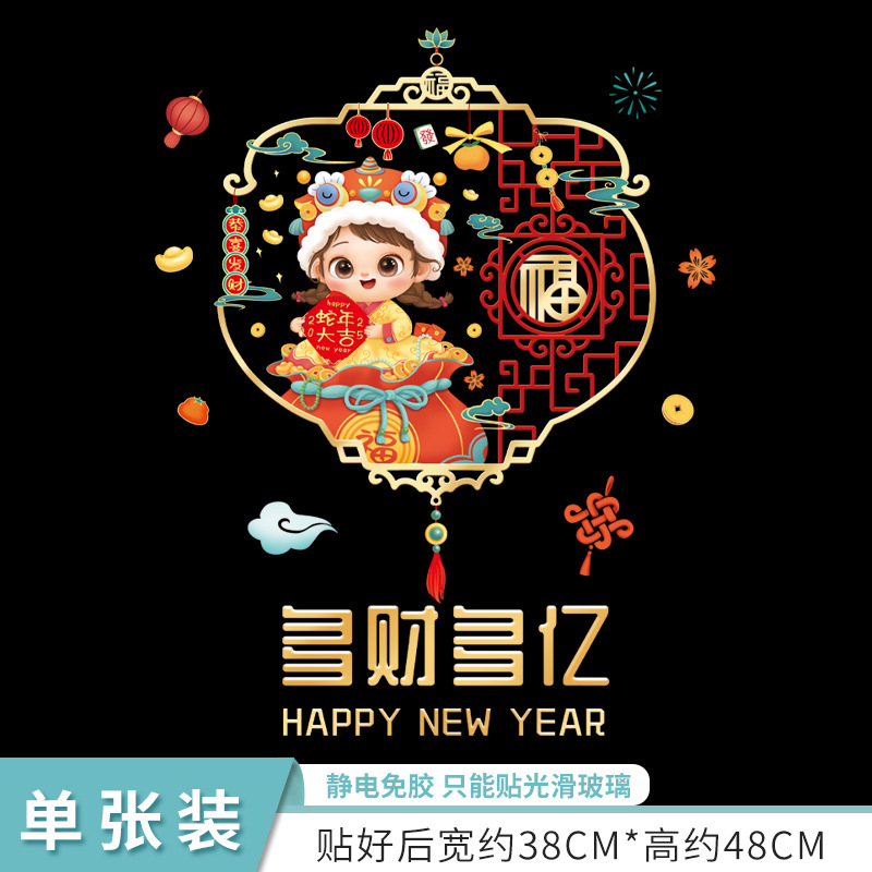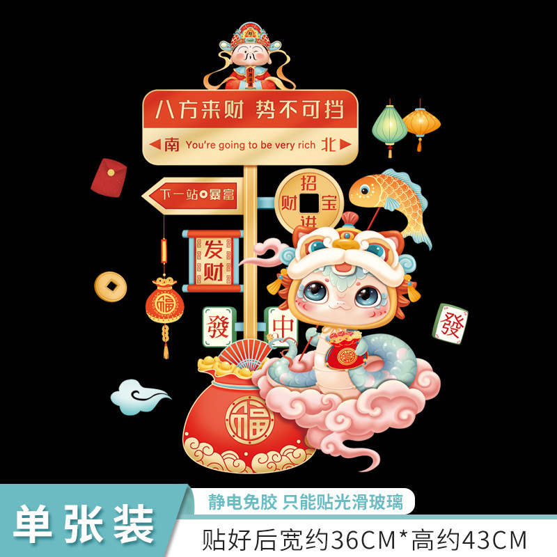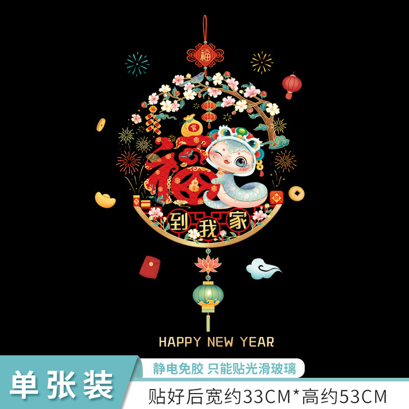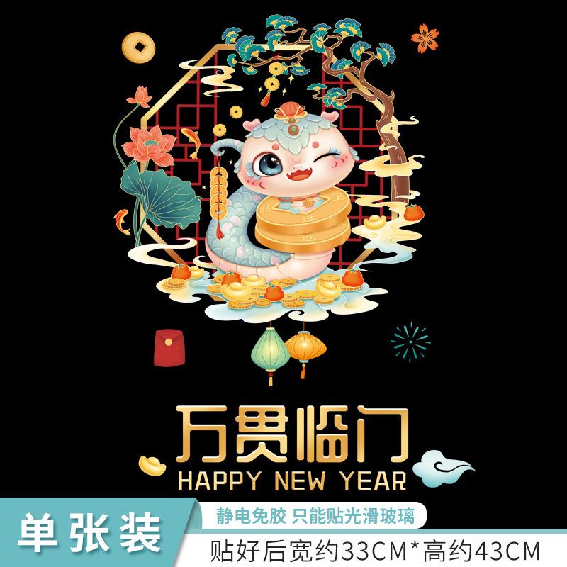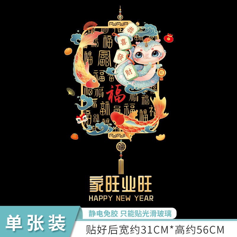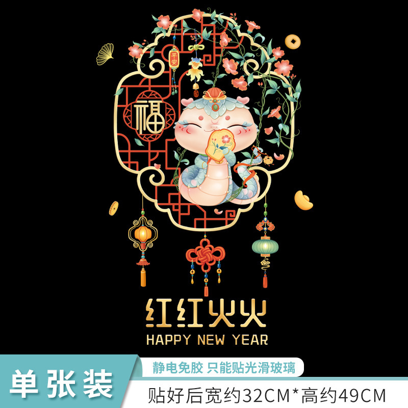 2025蛇年生肖静电贴过年喜庆布置窗花贴春节商场橱窗装饰玻璃门贴