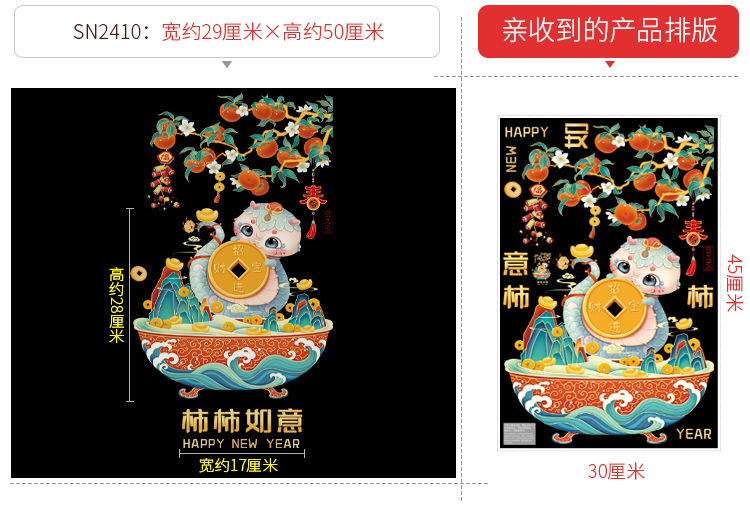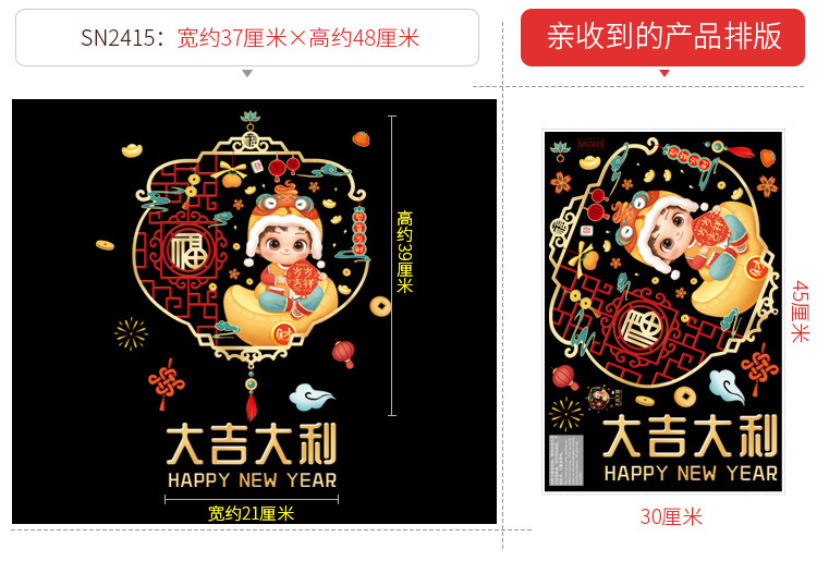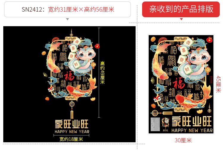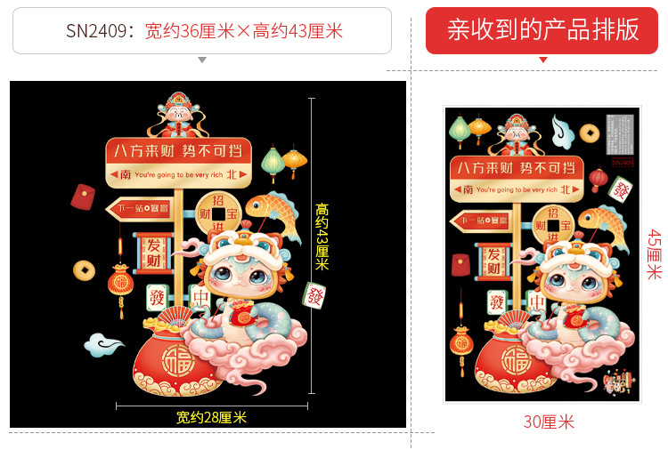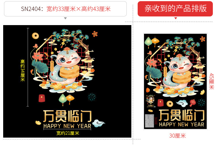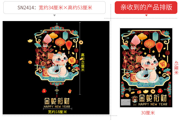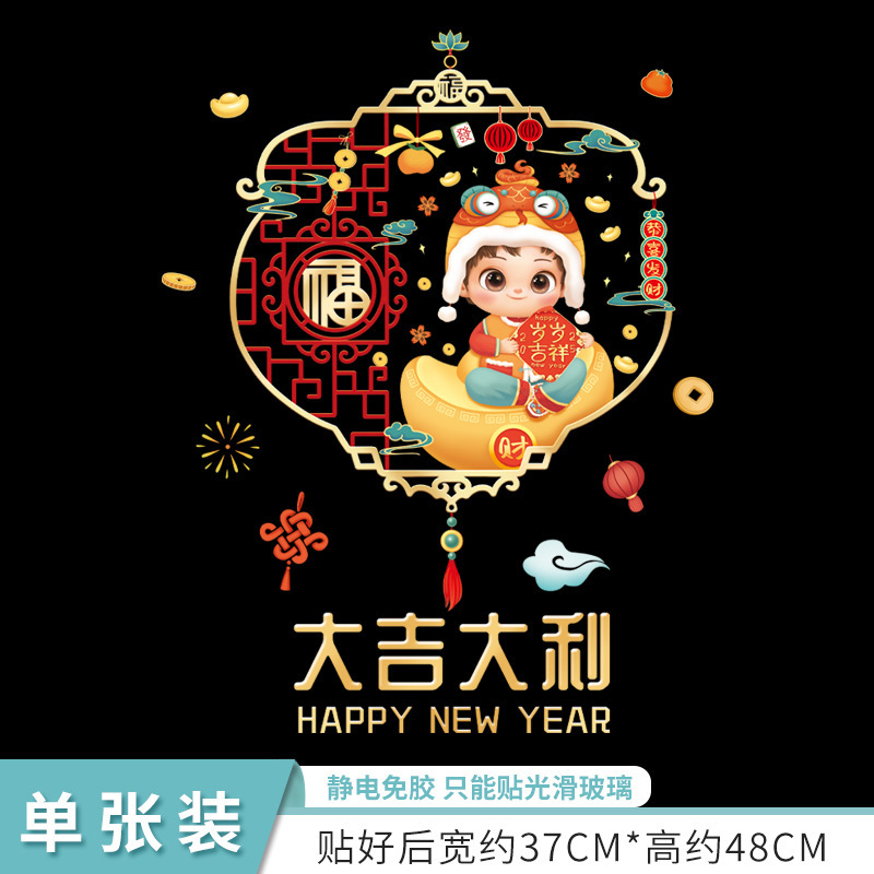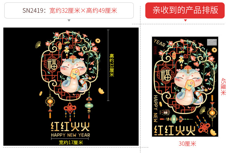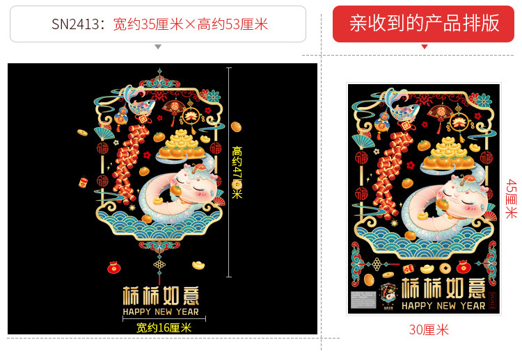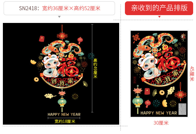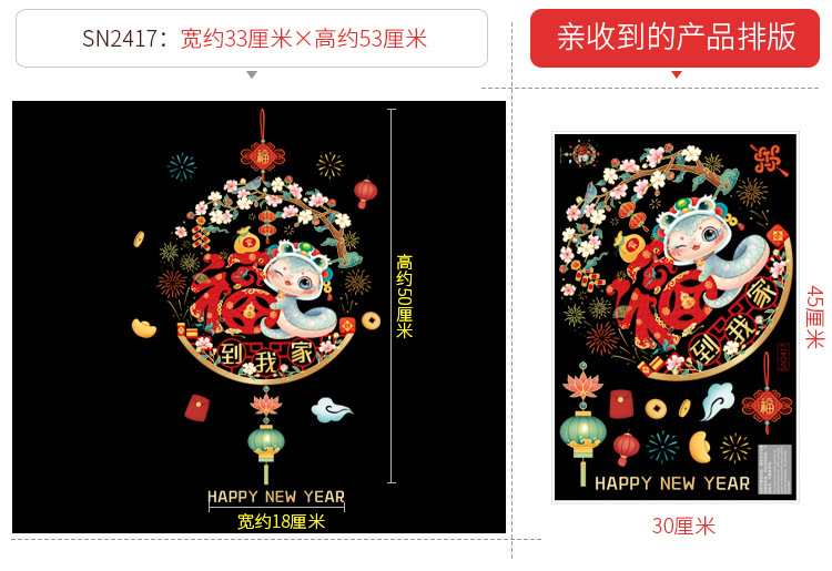 2025蛇年生肖静电贴过年喜庆布置窗花贴春节商场橱窗装饰玻璃门贴