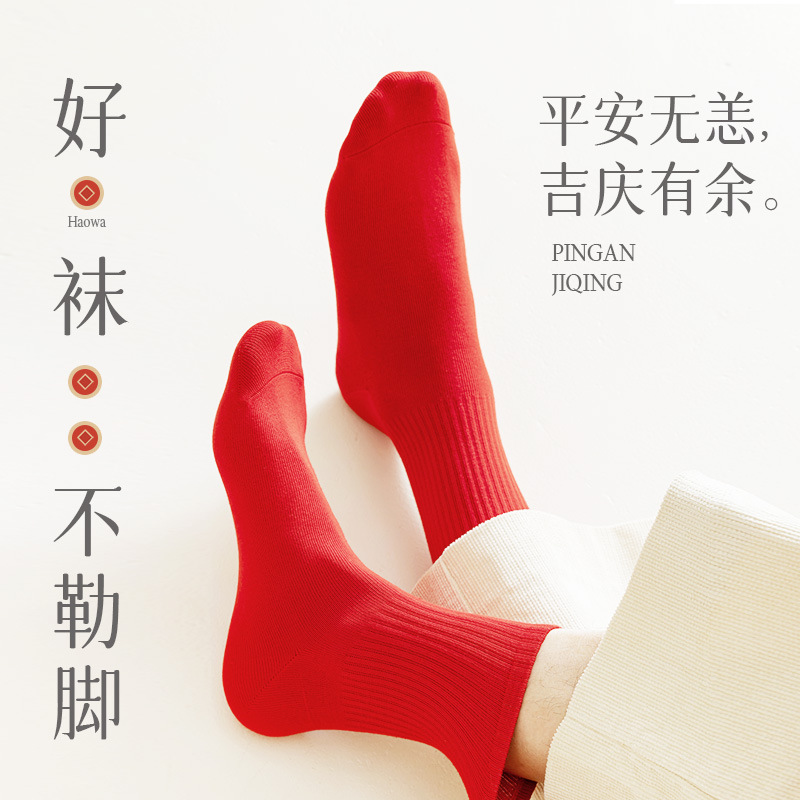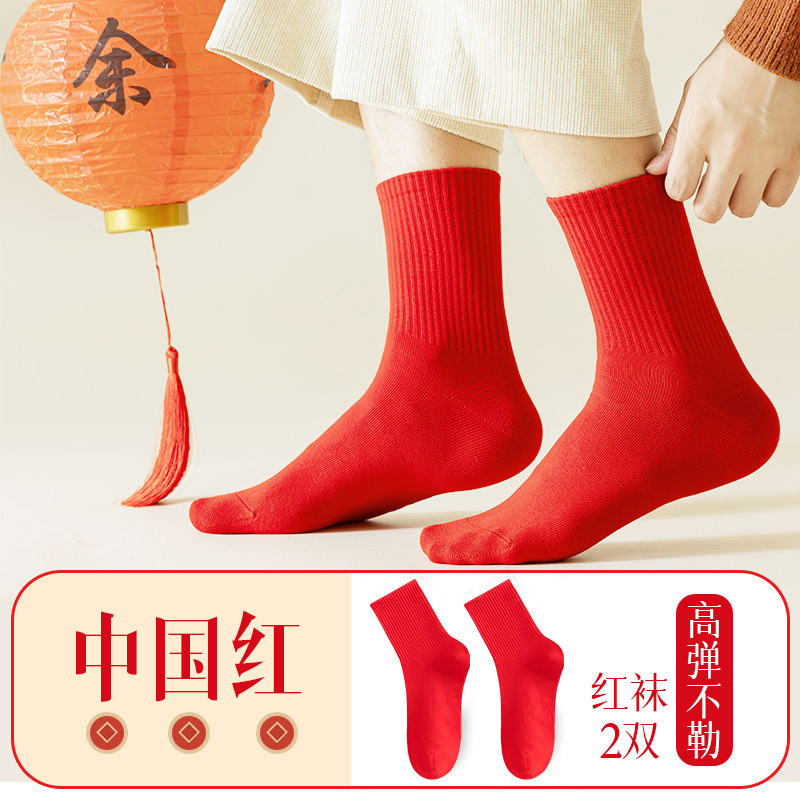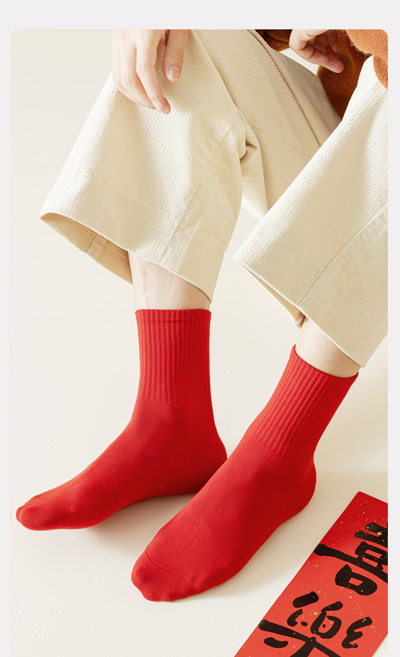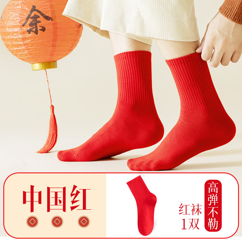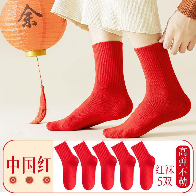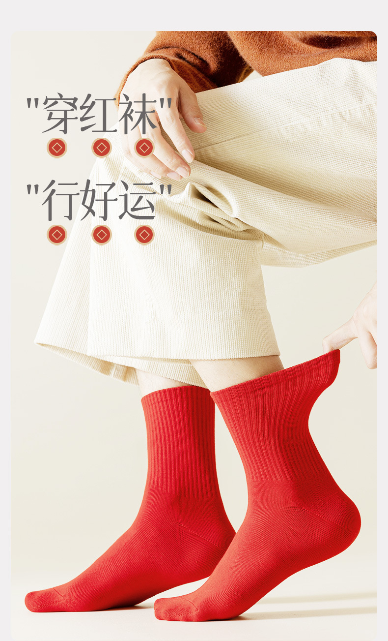 本命年红袜子纯棉男女蛇年情侣款红色袜子批发秋冬中筒袜冬季全棉