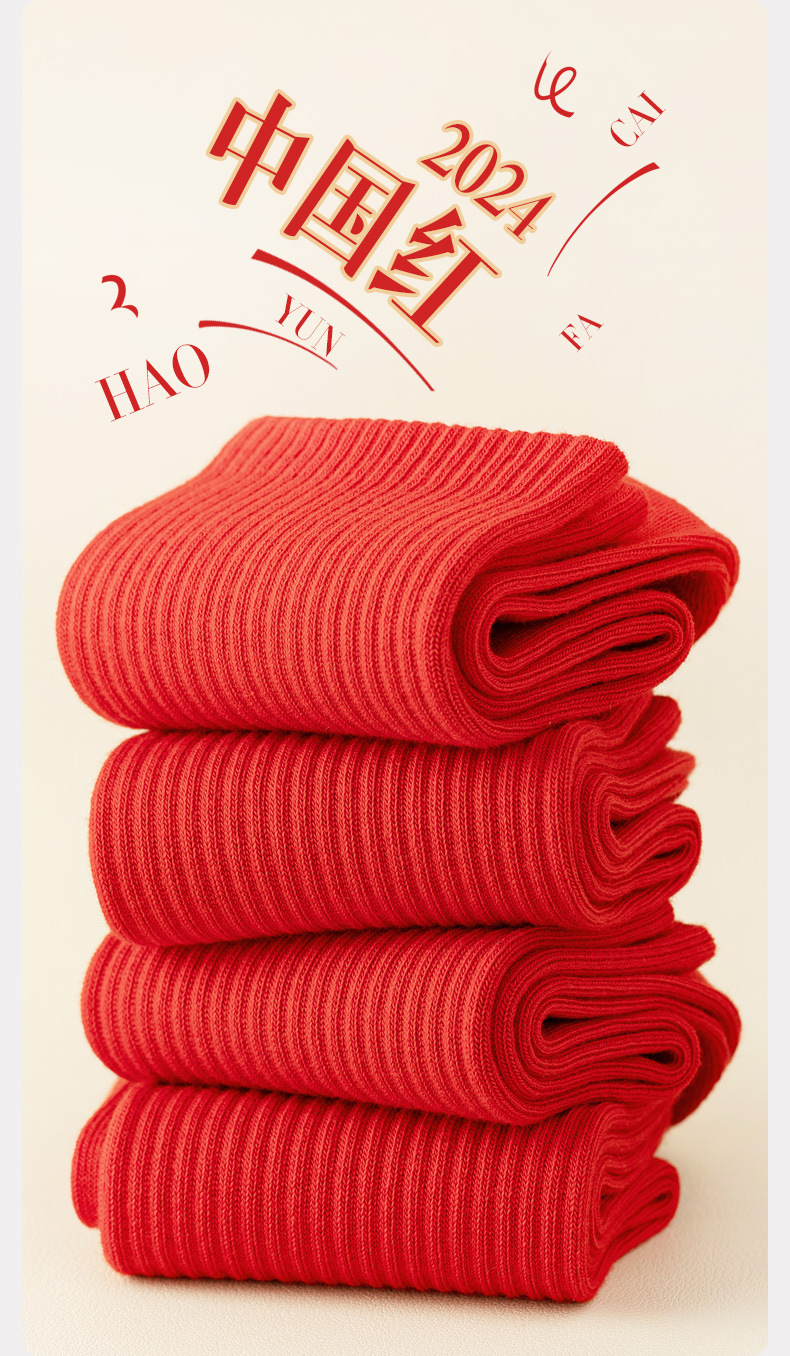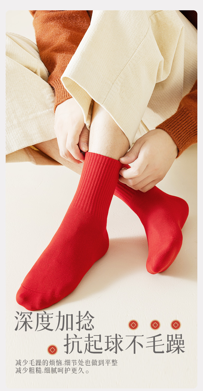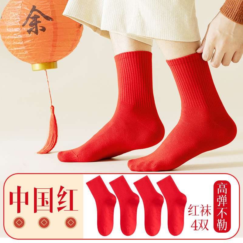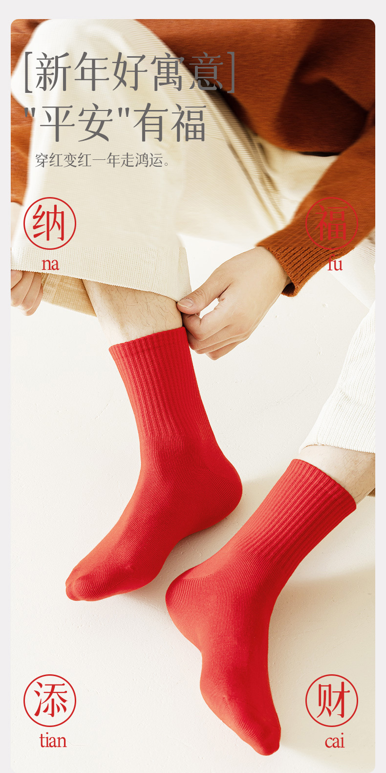 本命年红袜子纯棉男女蛇年情侣款红色袜子批发秋冬中筒袜冬季全棉