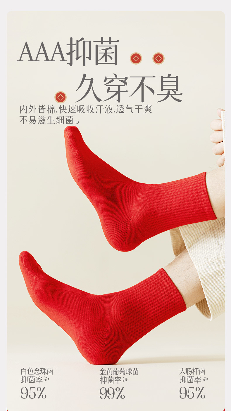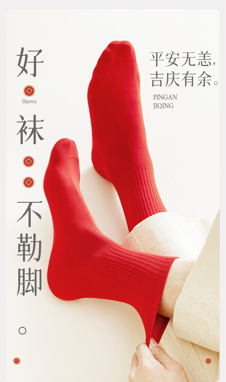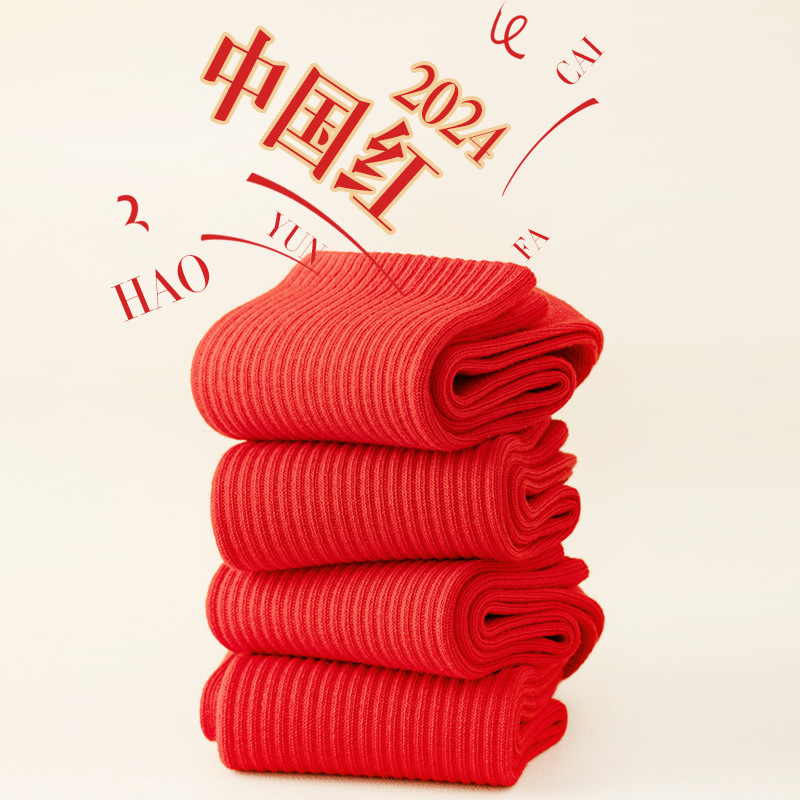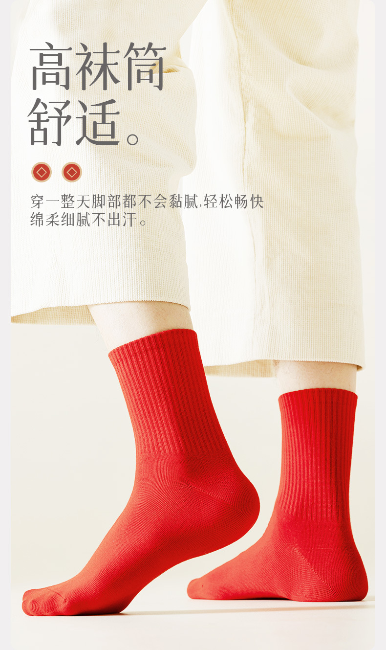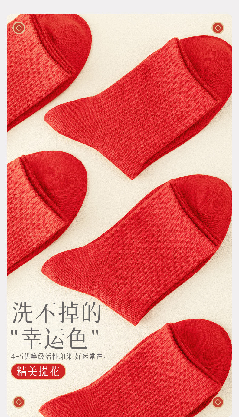 本命年红袜子纯棉男女蛇年情侣款红色袜子批发秋冬中筒袜冬季全棉