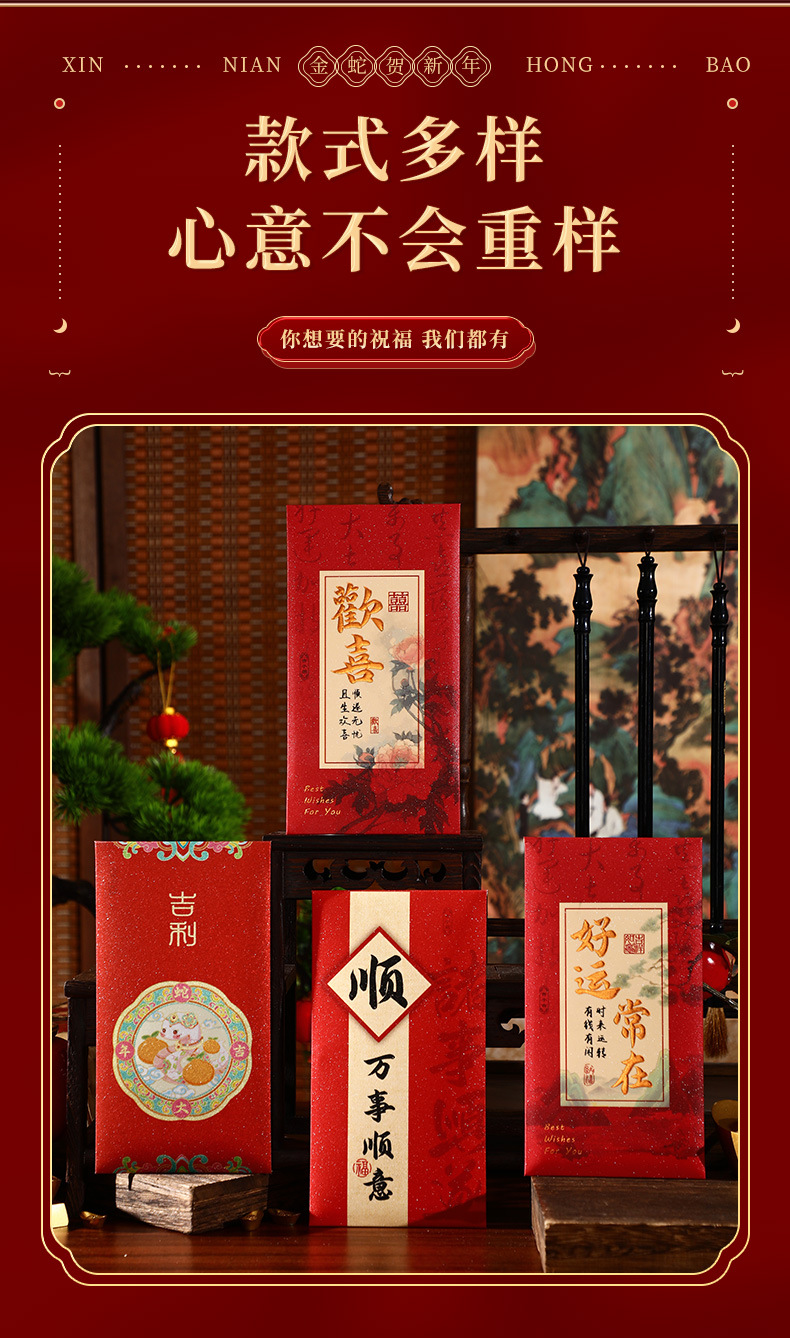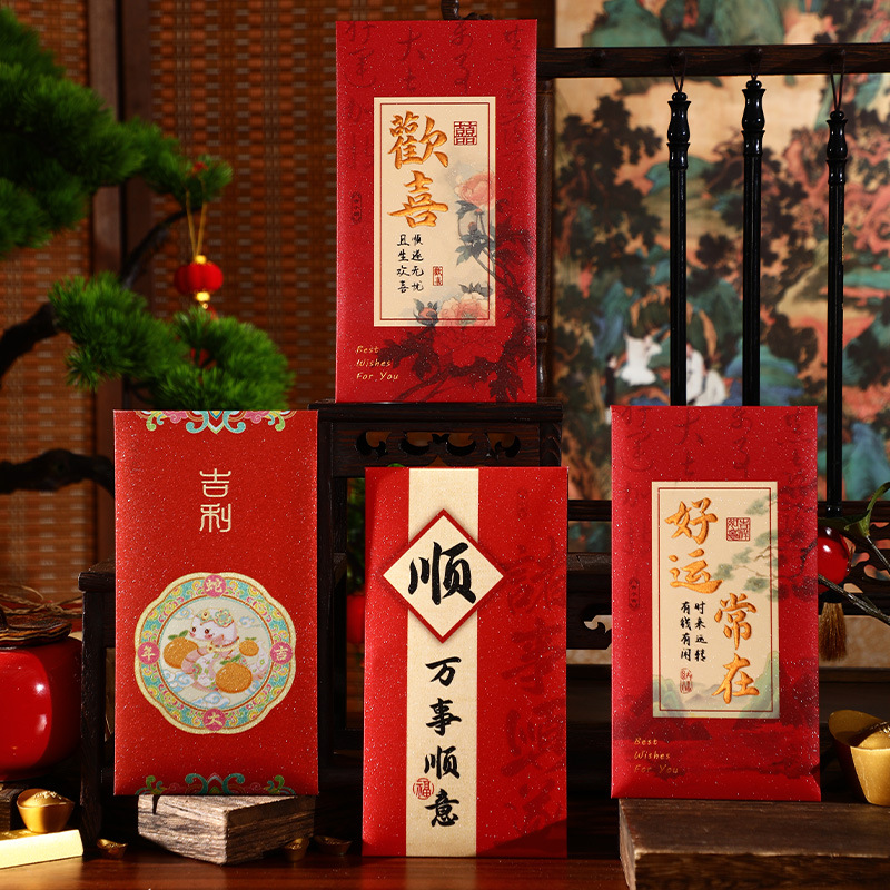 书法红包袋2025新款春节磨砂烫金新年利是封创意国潮压岁千元批发