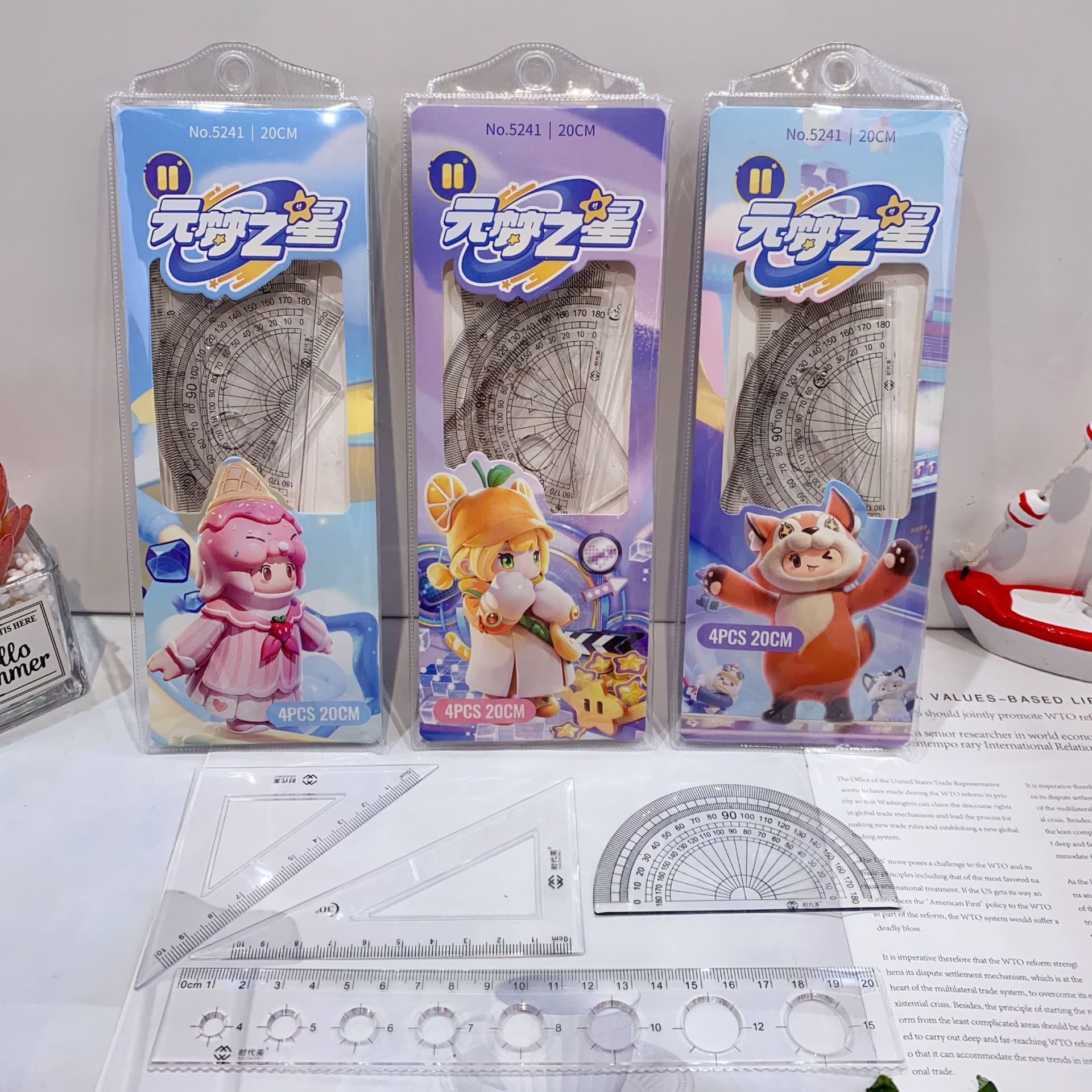 可爱卡通三丽鸥套尺学生绘图套尺套装三角尺量角器4件套20cm直尺