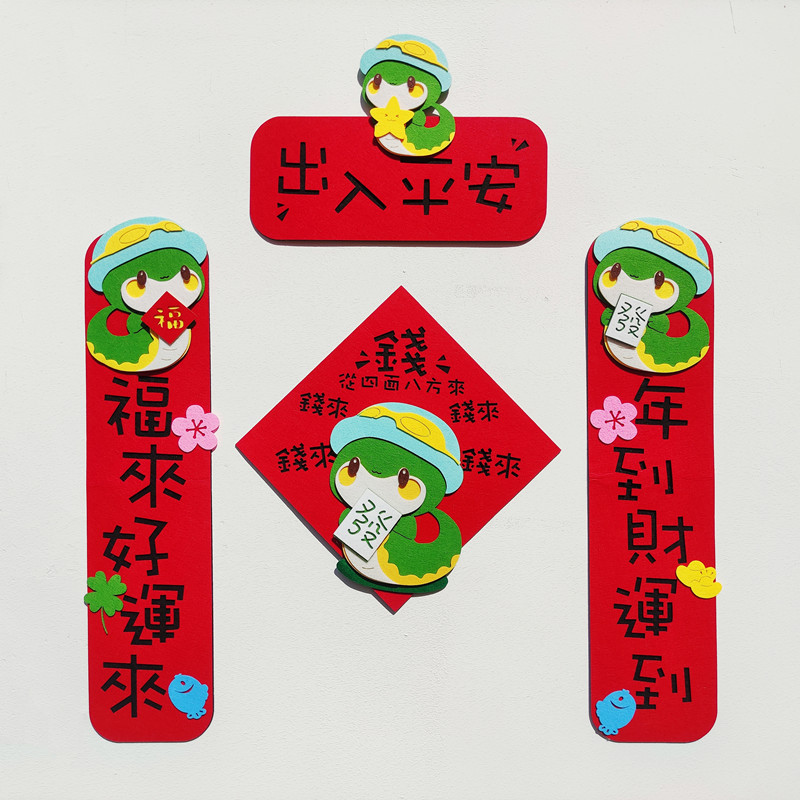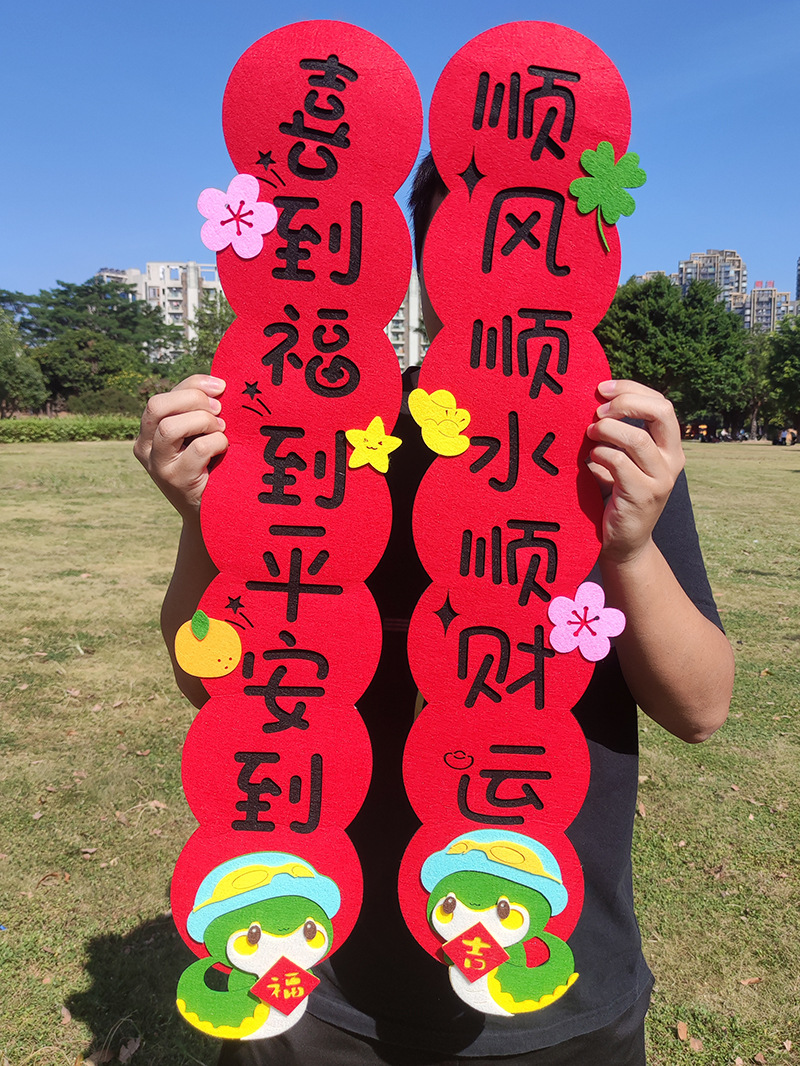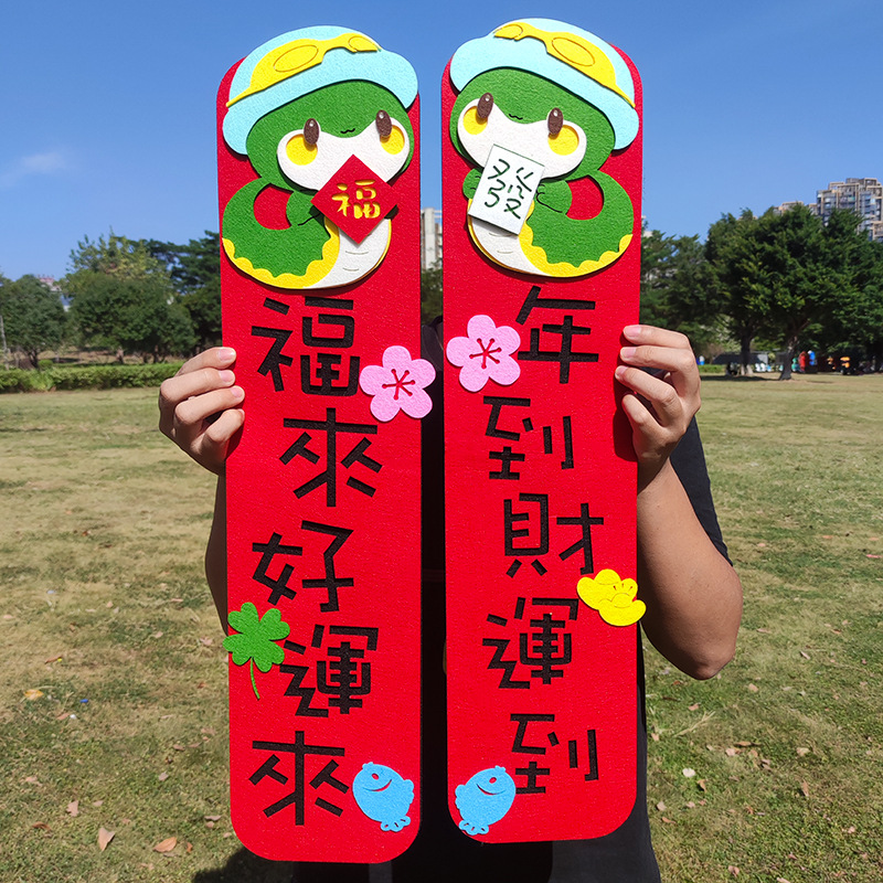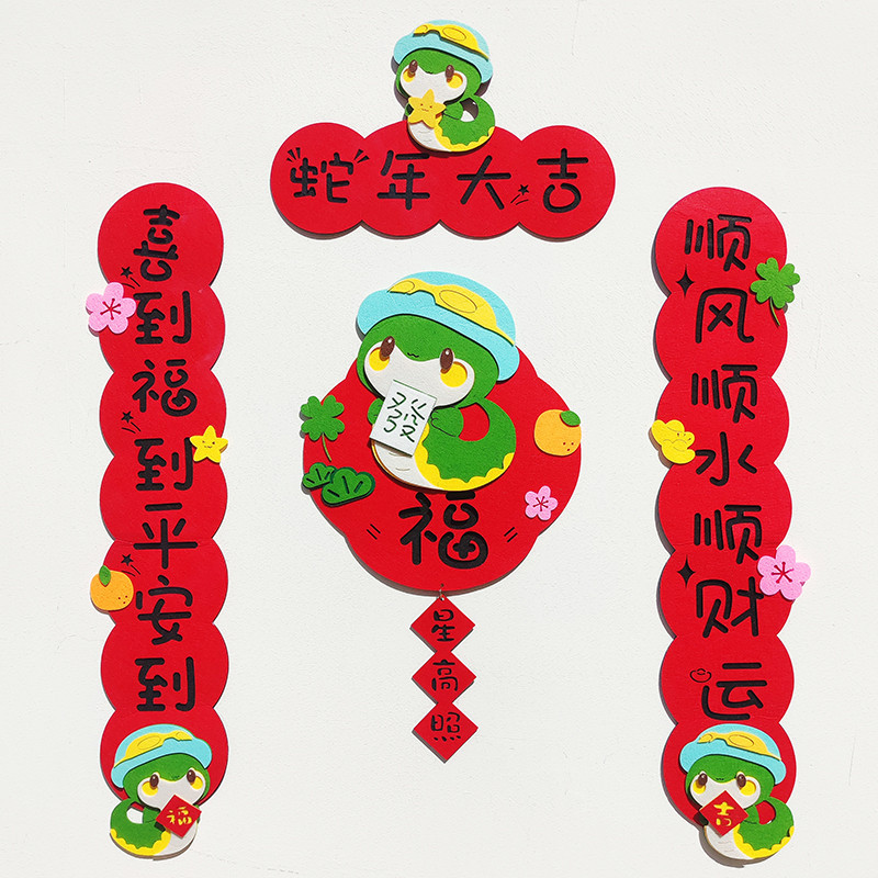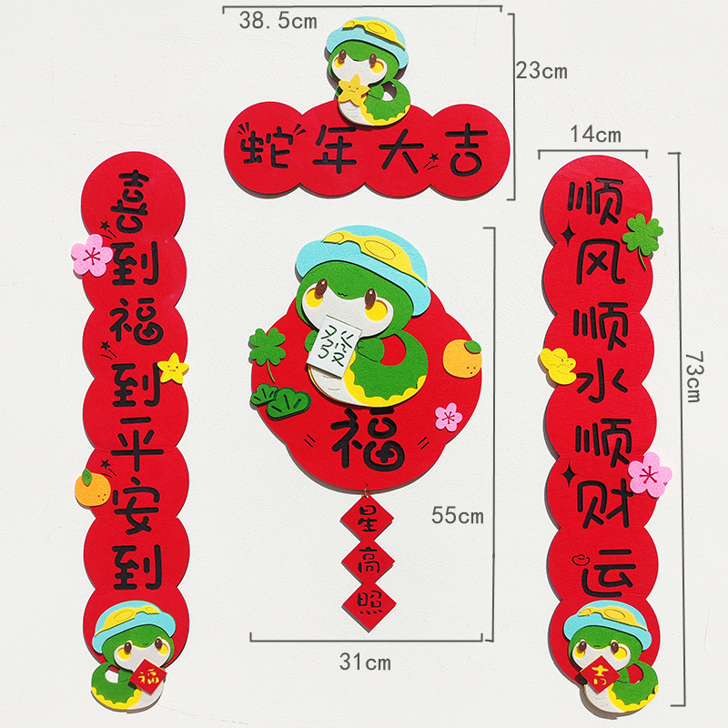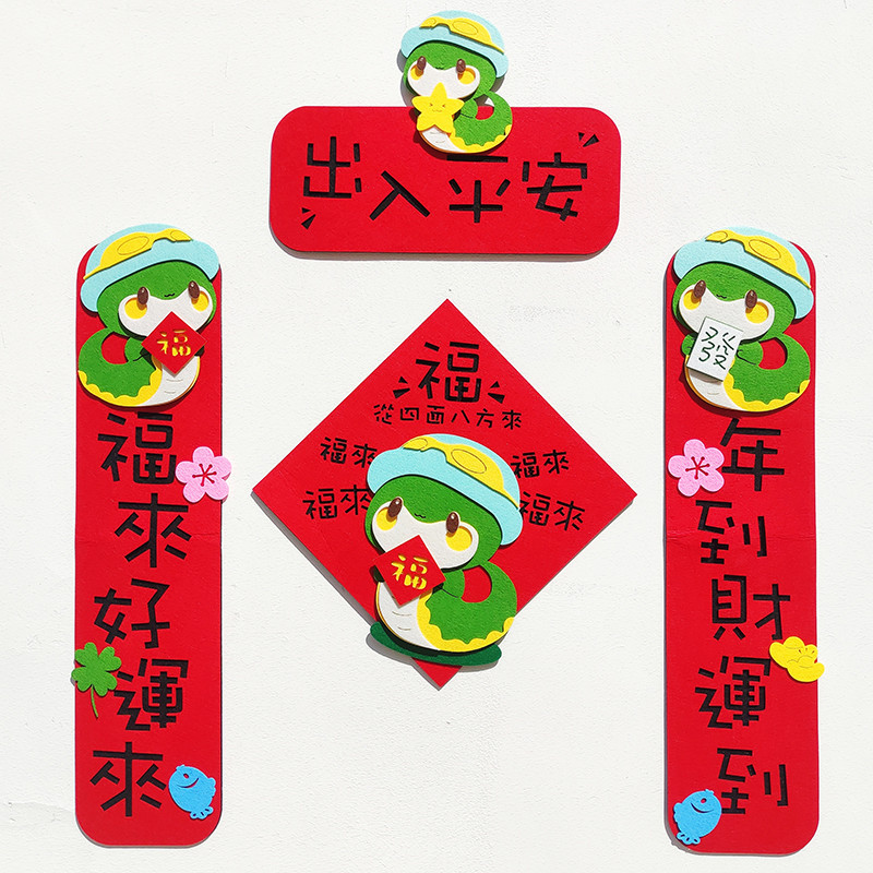 2025蛇年卡通对联毛毡可爱创意家用春联新年装饰挥春福字磁吸门贴