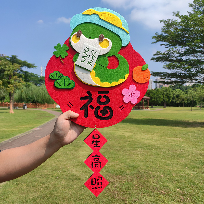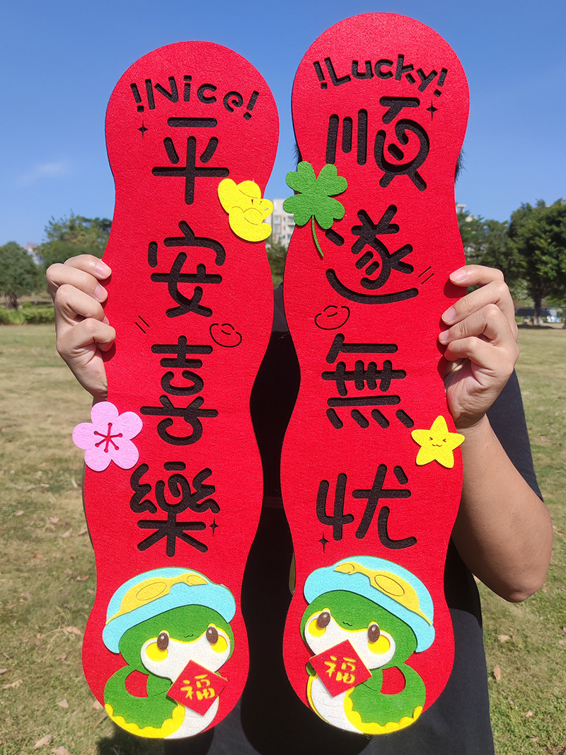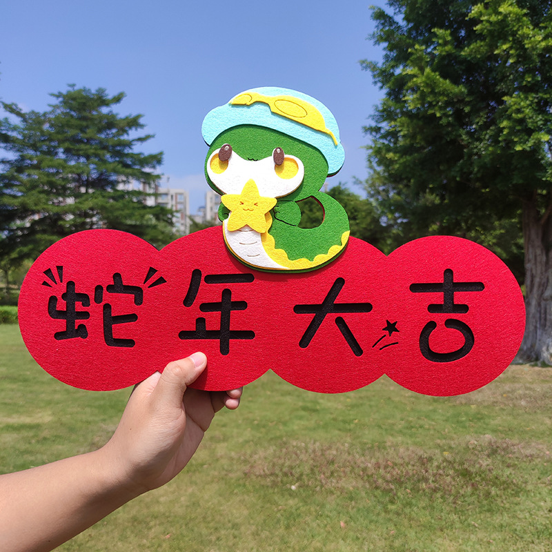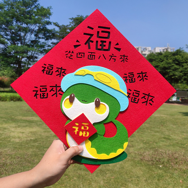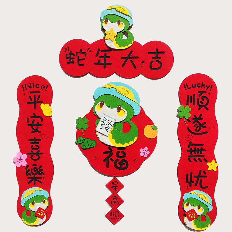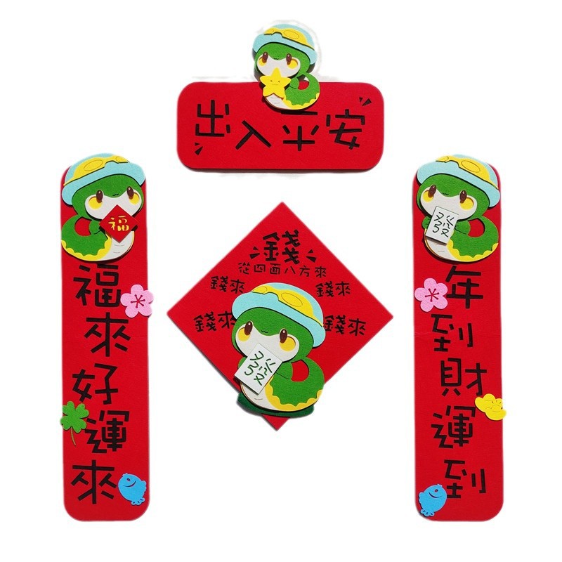 2025蛇年卡通对联毛毡可爱创意家用春联新年装饰挥春福字磁吸门贴