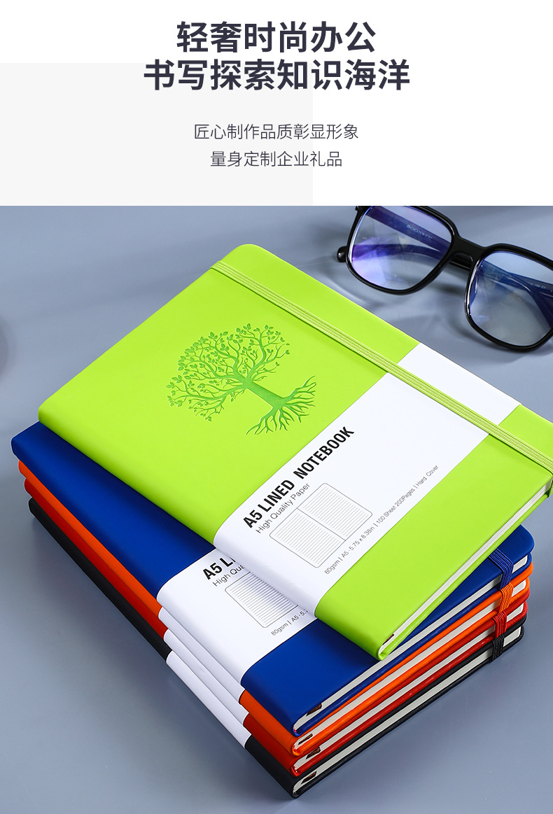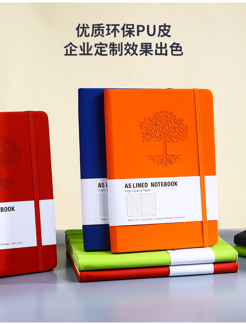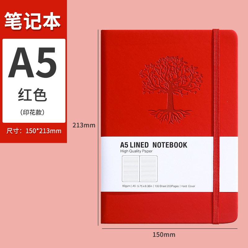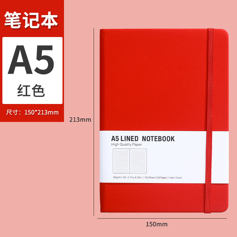 绑带笔记本定制厚本子高颜值酒红色商务会议记录记事本子可印logo