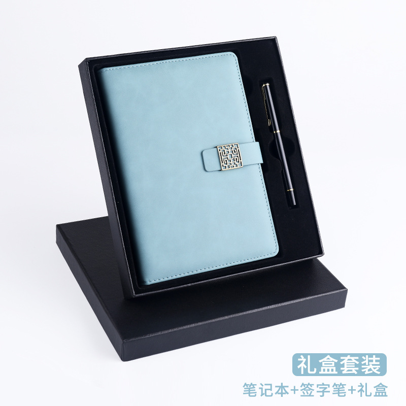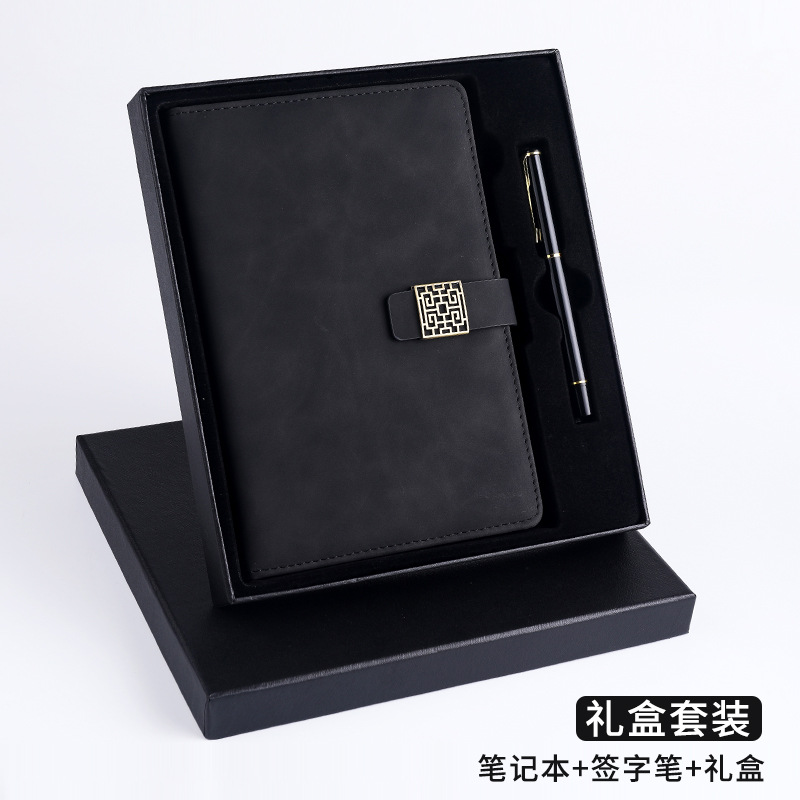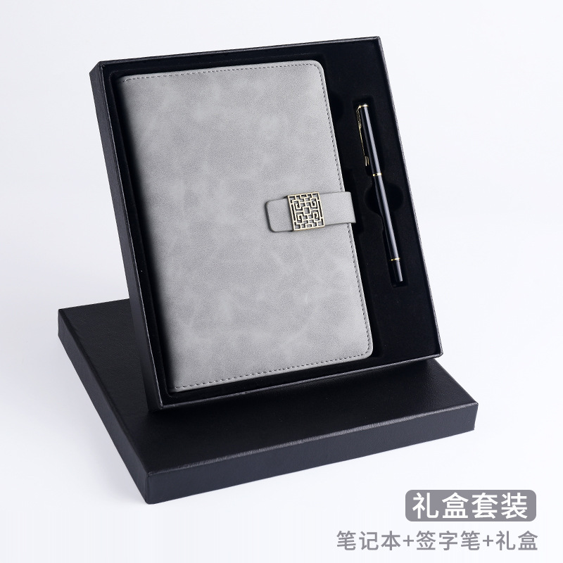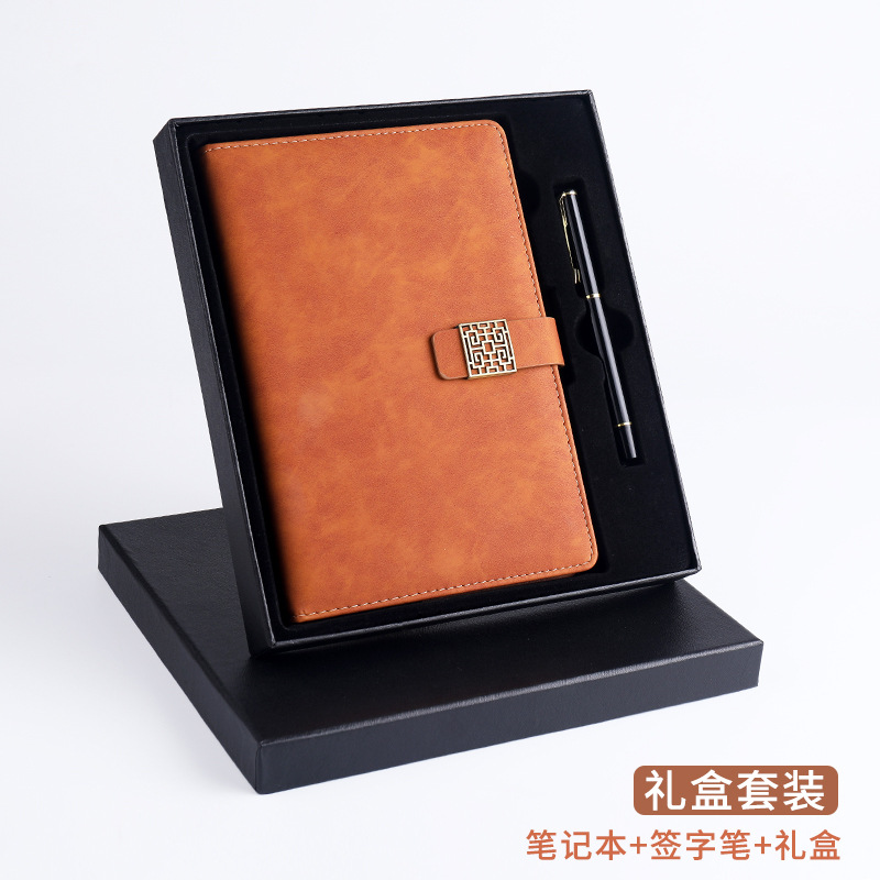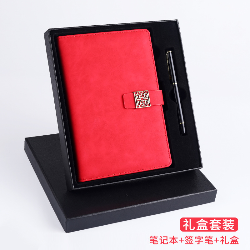 窗花扣A5羊巴皮笔记本搭扣商务日记本礼盒套装记事本制定LOGO现货