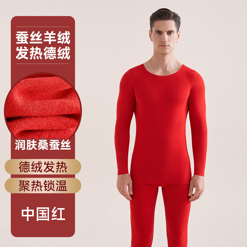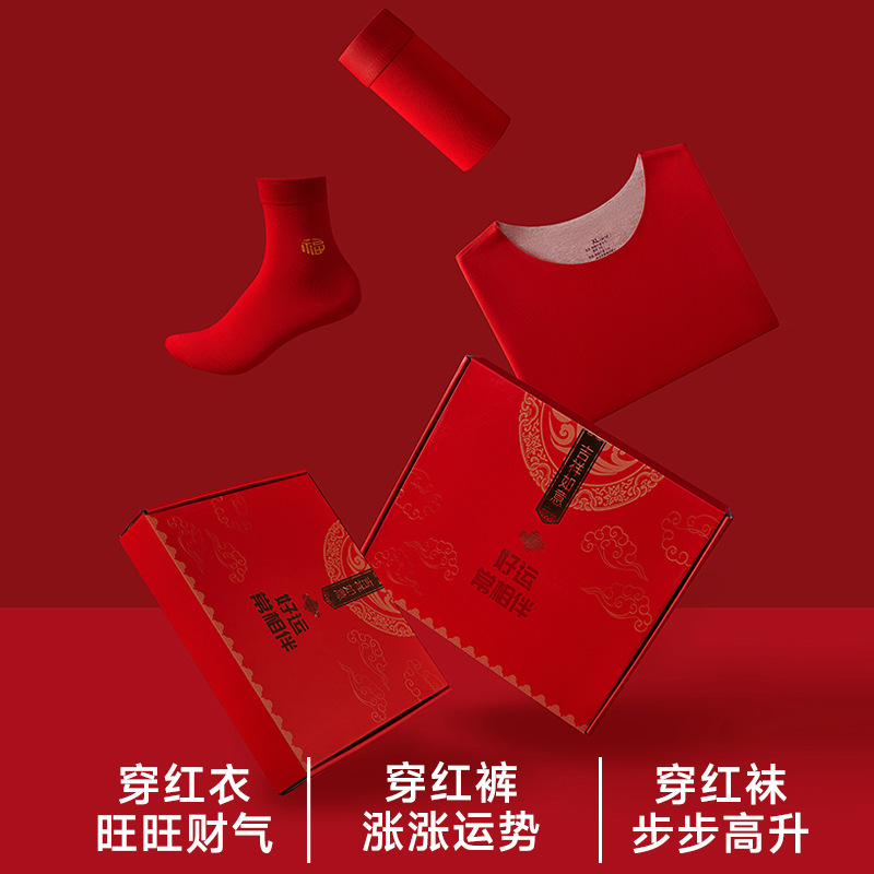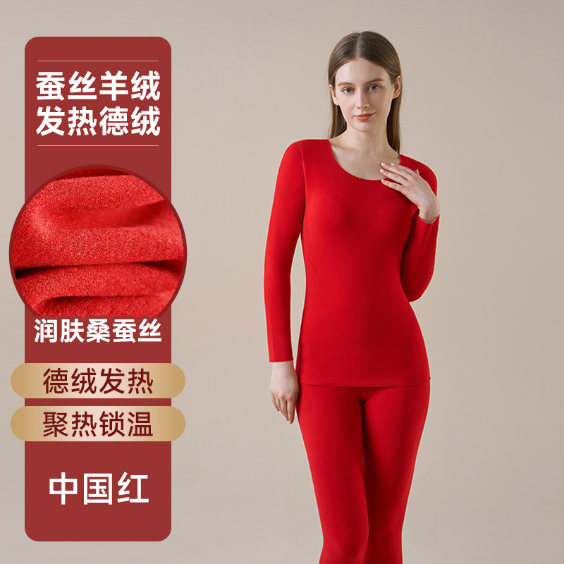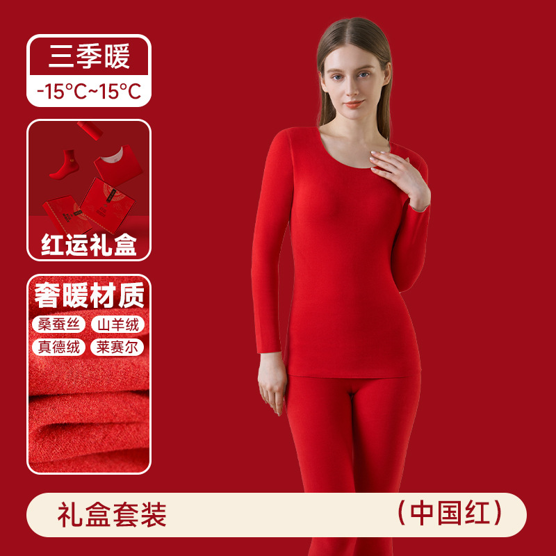 本命年内衣套装女保暖发热2025蛇年鸿运结婚大红色秋衣秋裤男德绒
