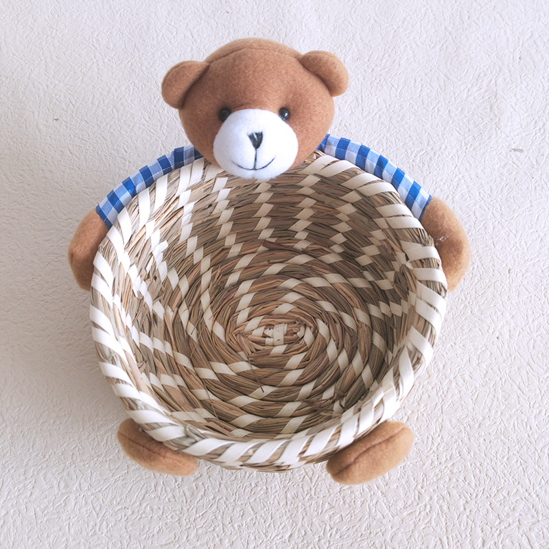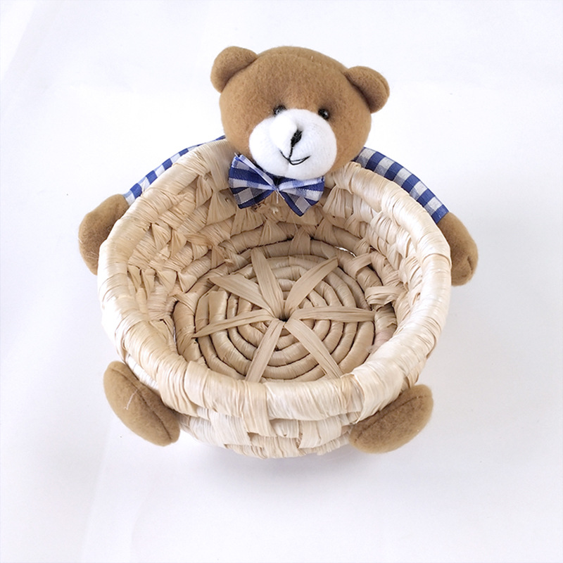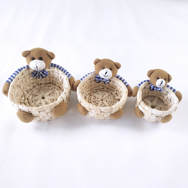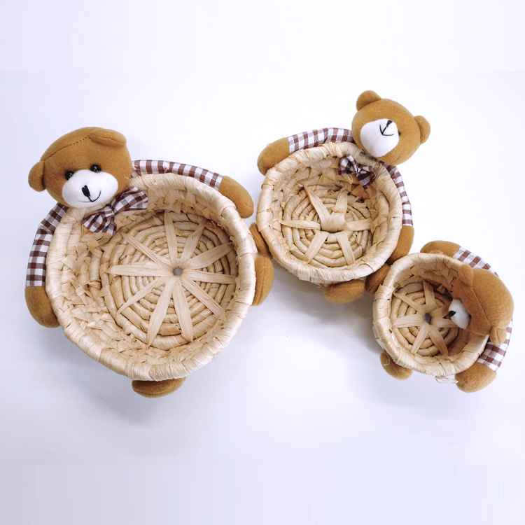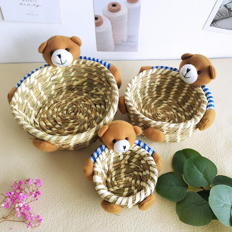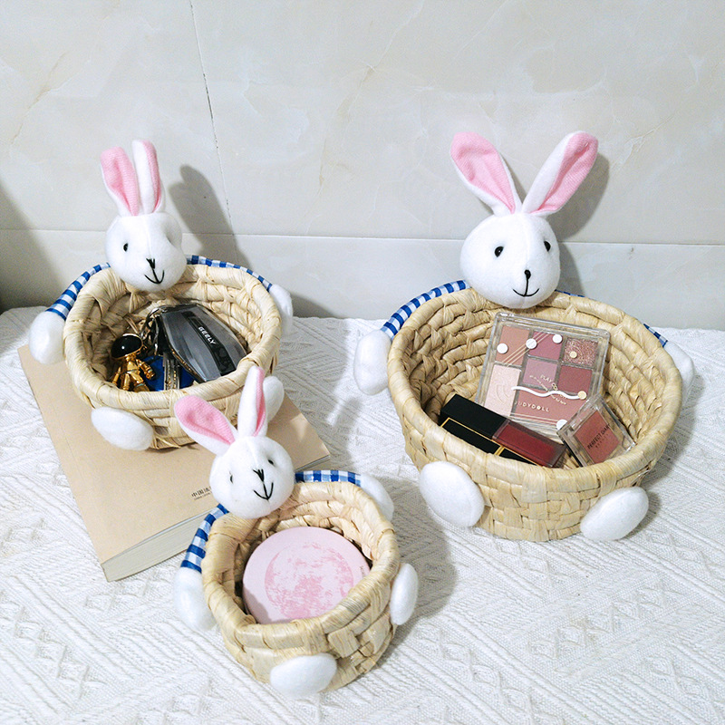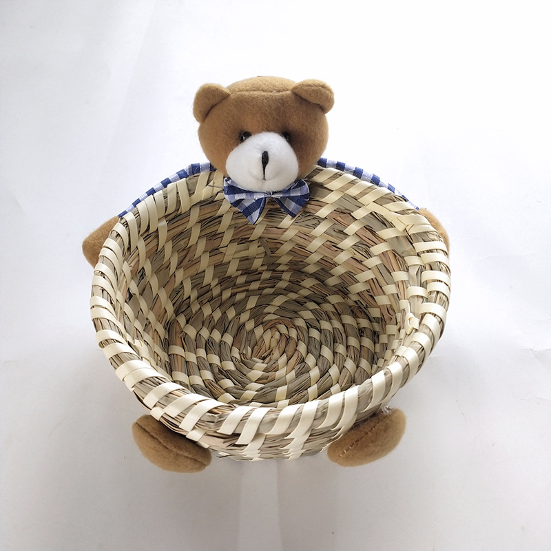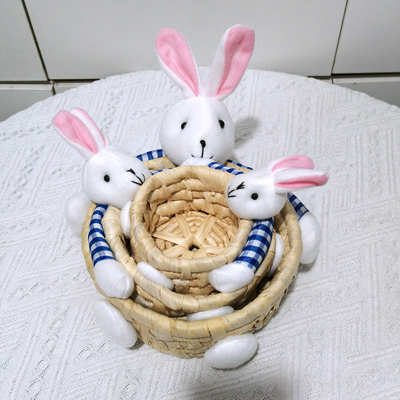 手工精编家居装饰工艺品摆件草编三件套收纳筐复活节兔子熊彩蛋篮