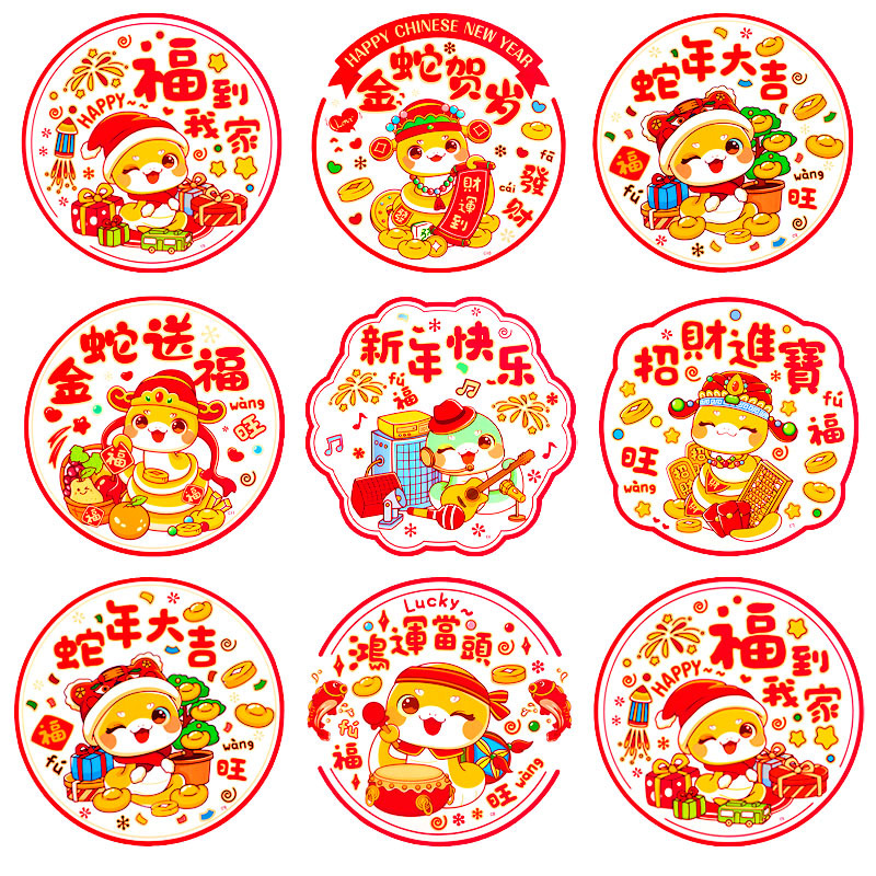 窗花2025蛇年植绒静电窗贴新年装饰福字墙贴年画春节过年玻璃贴纸