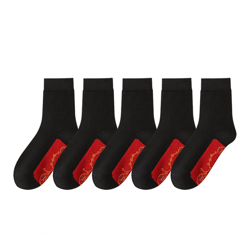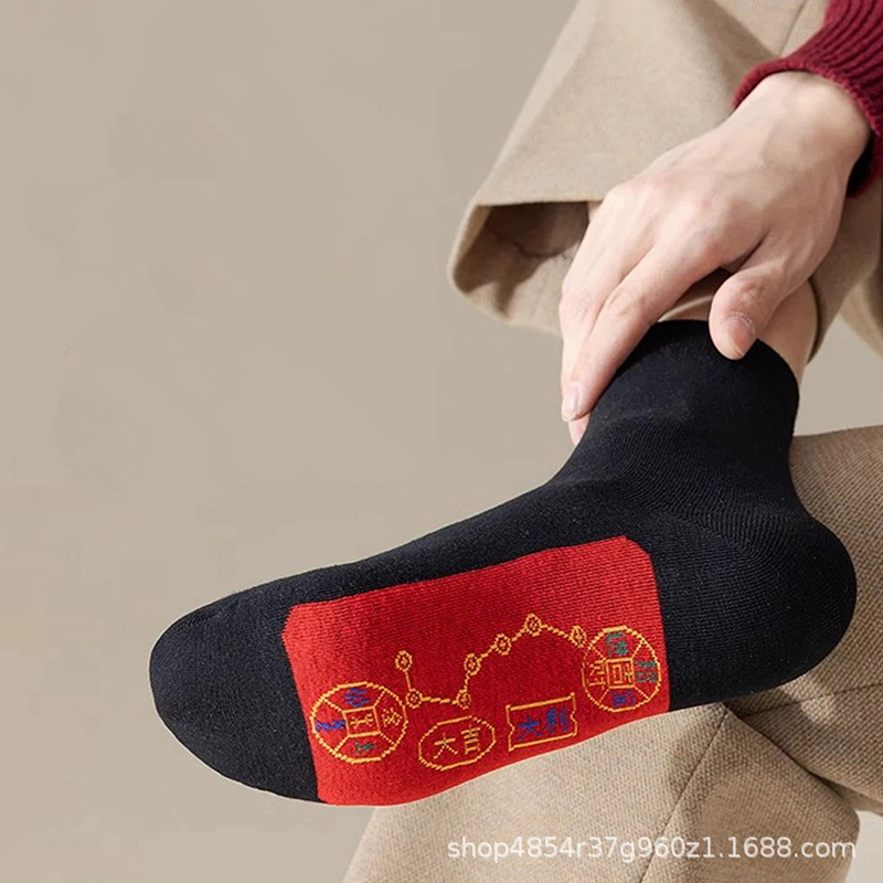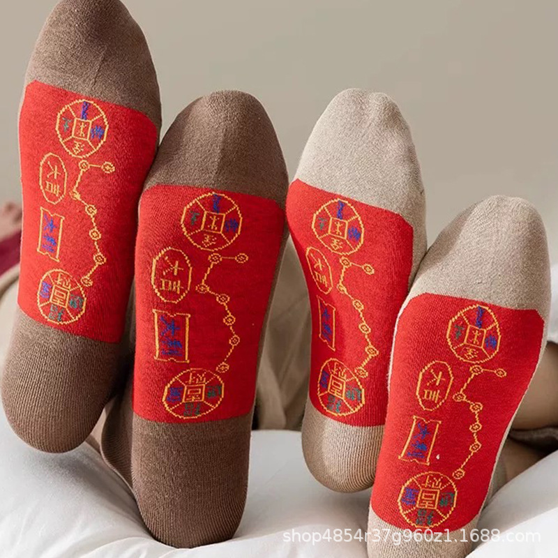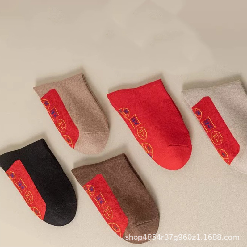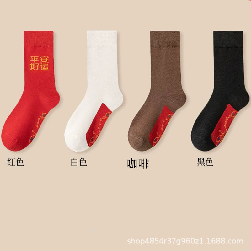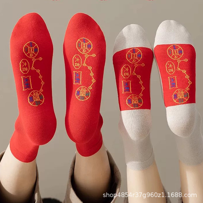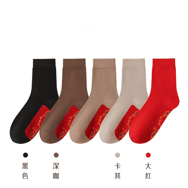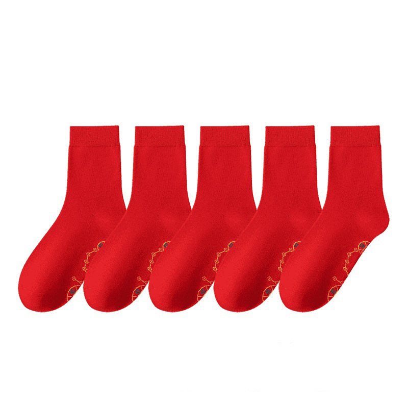 脚踏七星袜子大红色棉质纯色喜庆蛇年新年结婚袜男女士本命年红袜