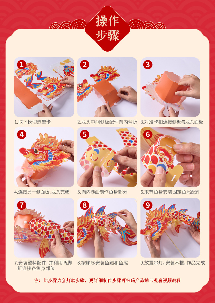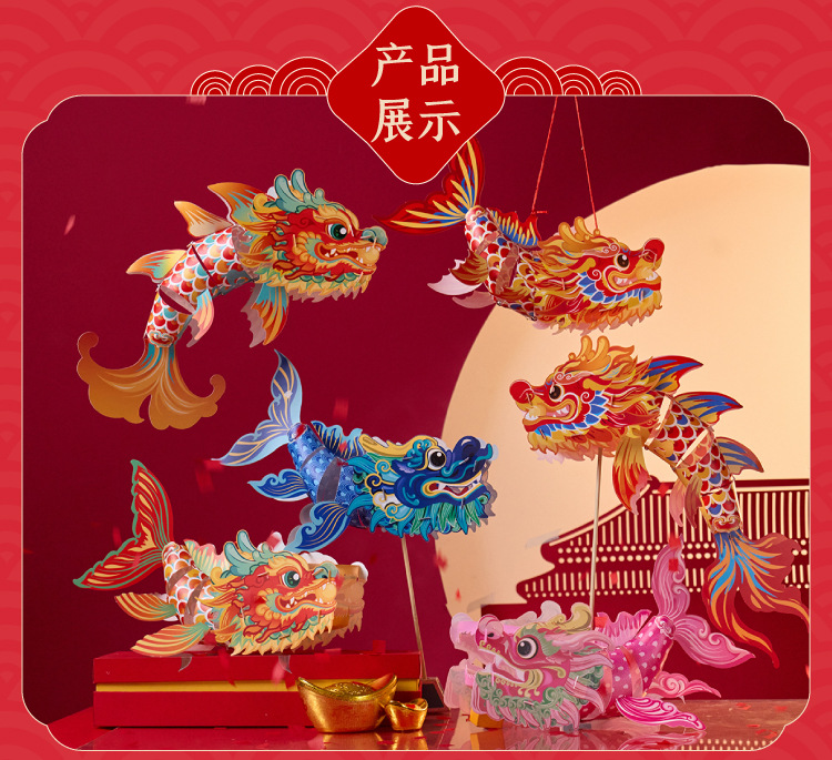 蛇年新年鳌鱼灯笼手工diy幼儿园儿童制作材料包国潮发光花灯2025