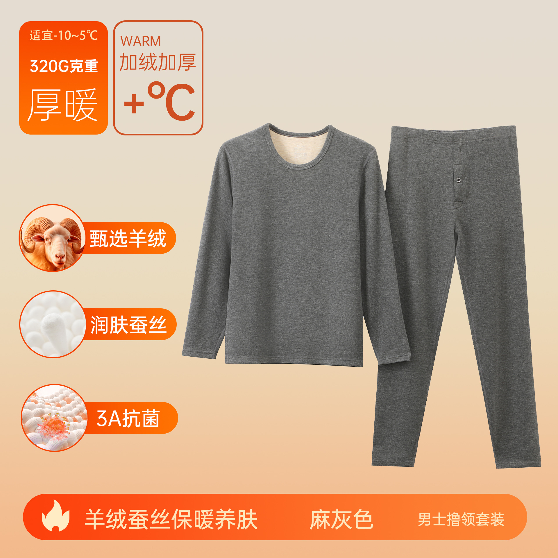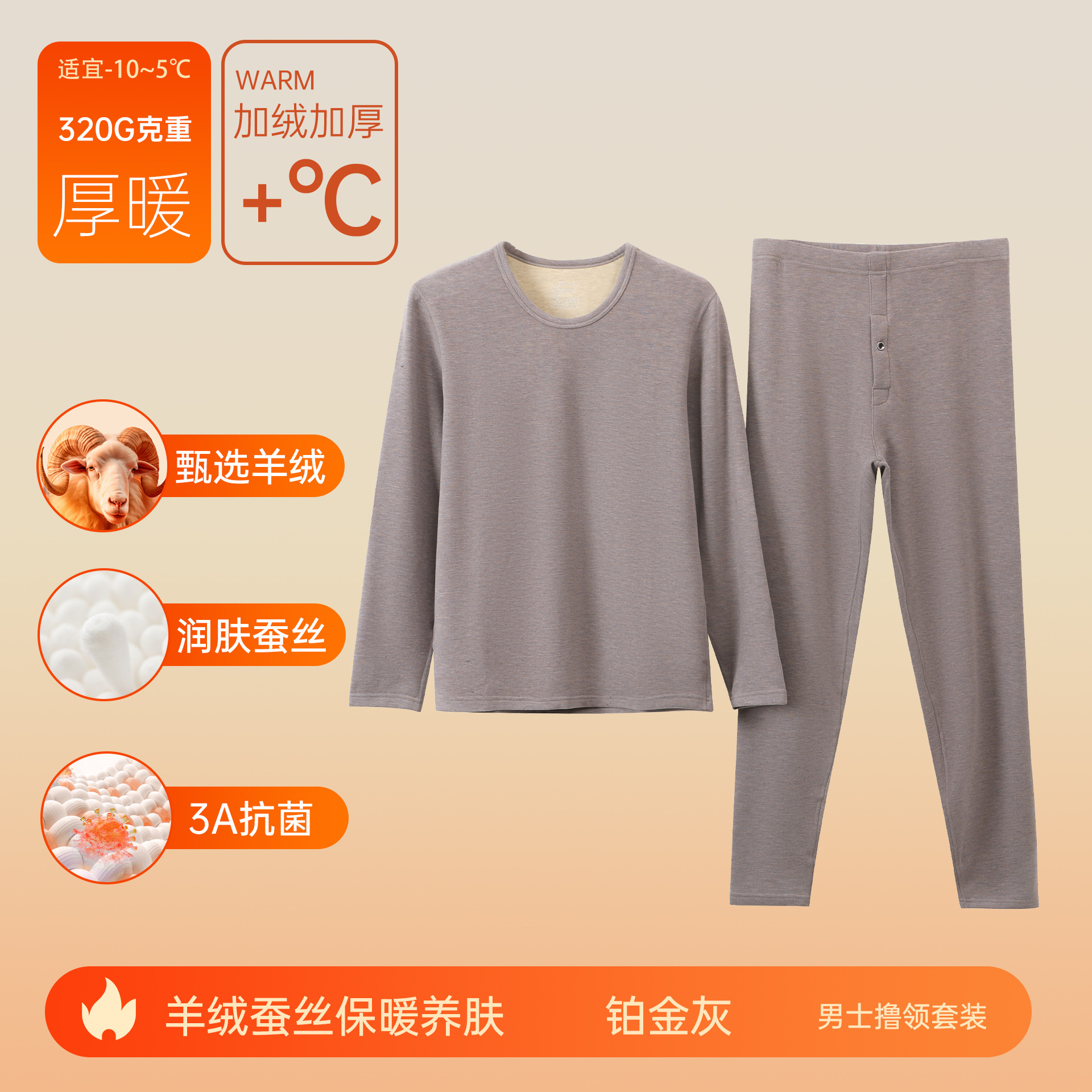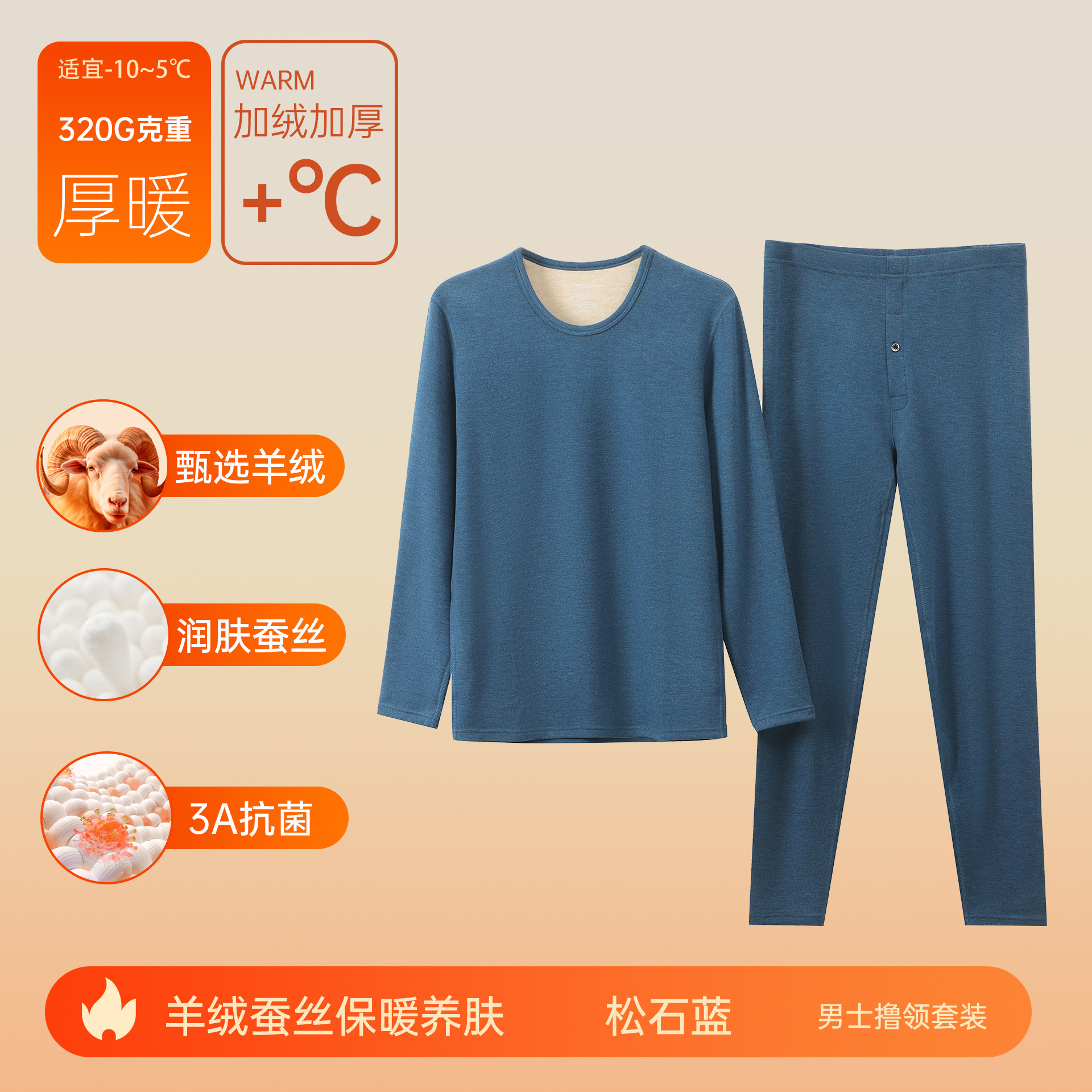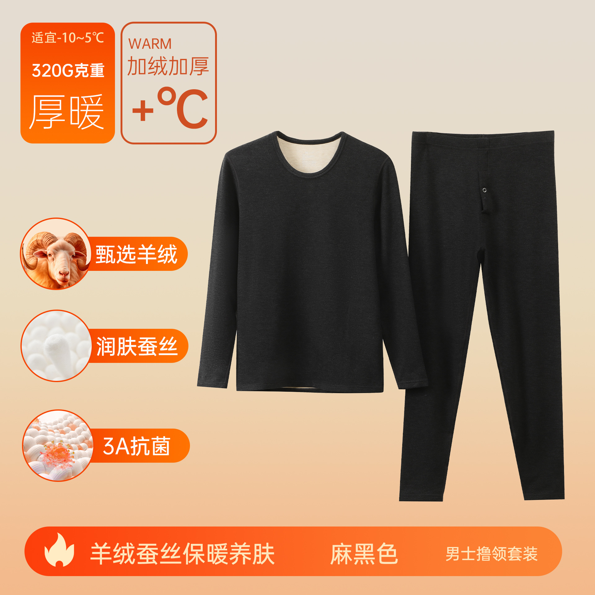 包边羊绒蚕丝保暖内衣男保暖衣德绒磨毛发热秋衣秋裤套装