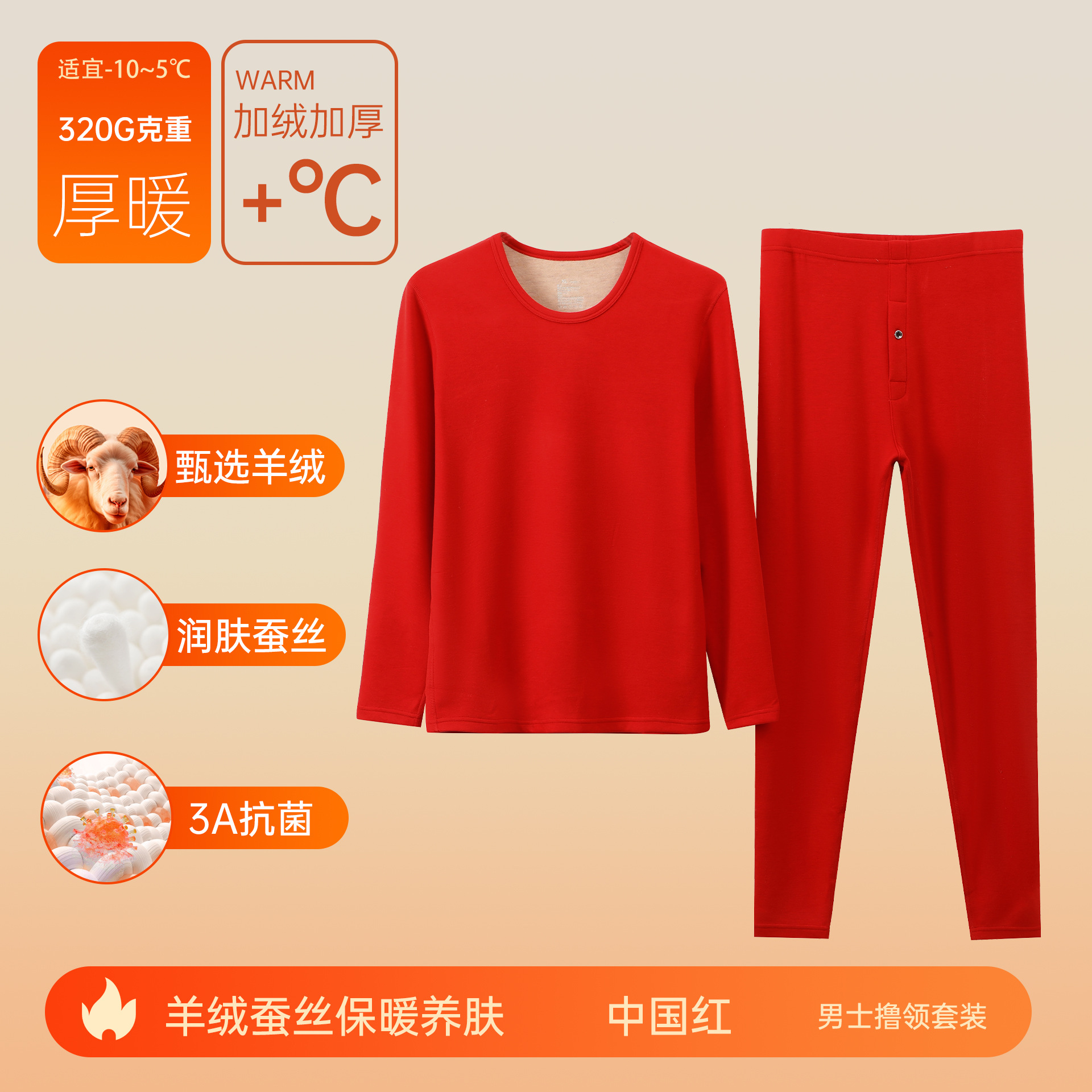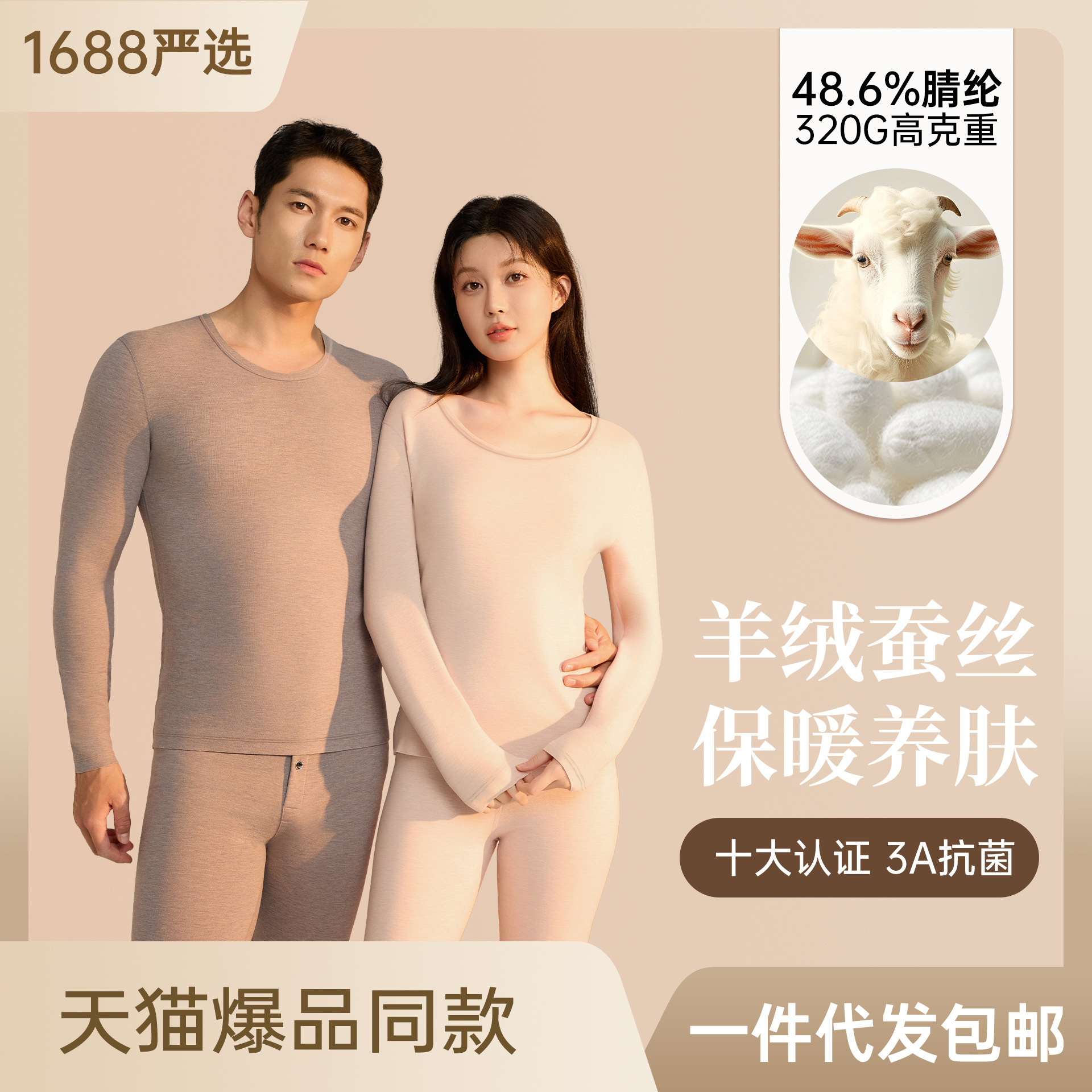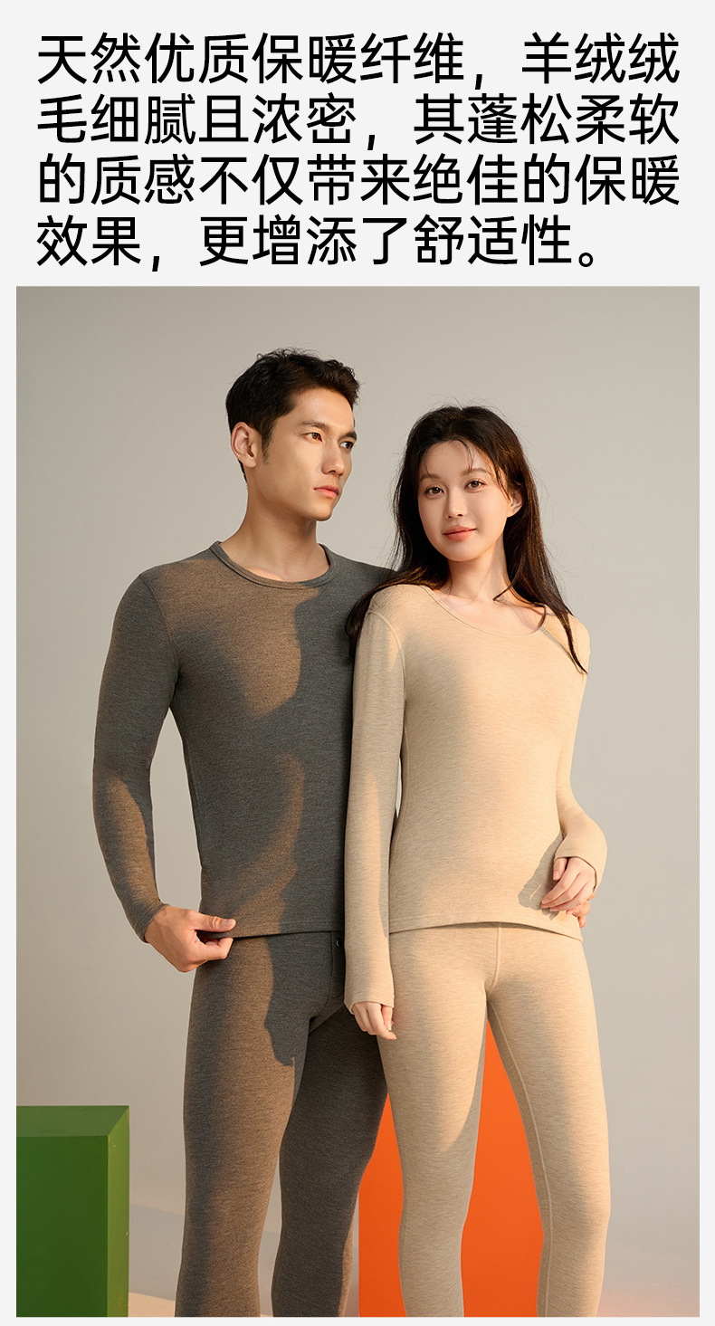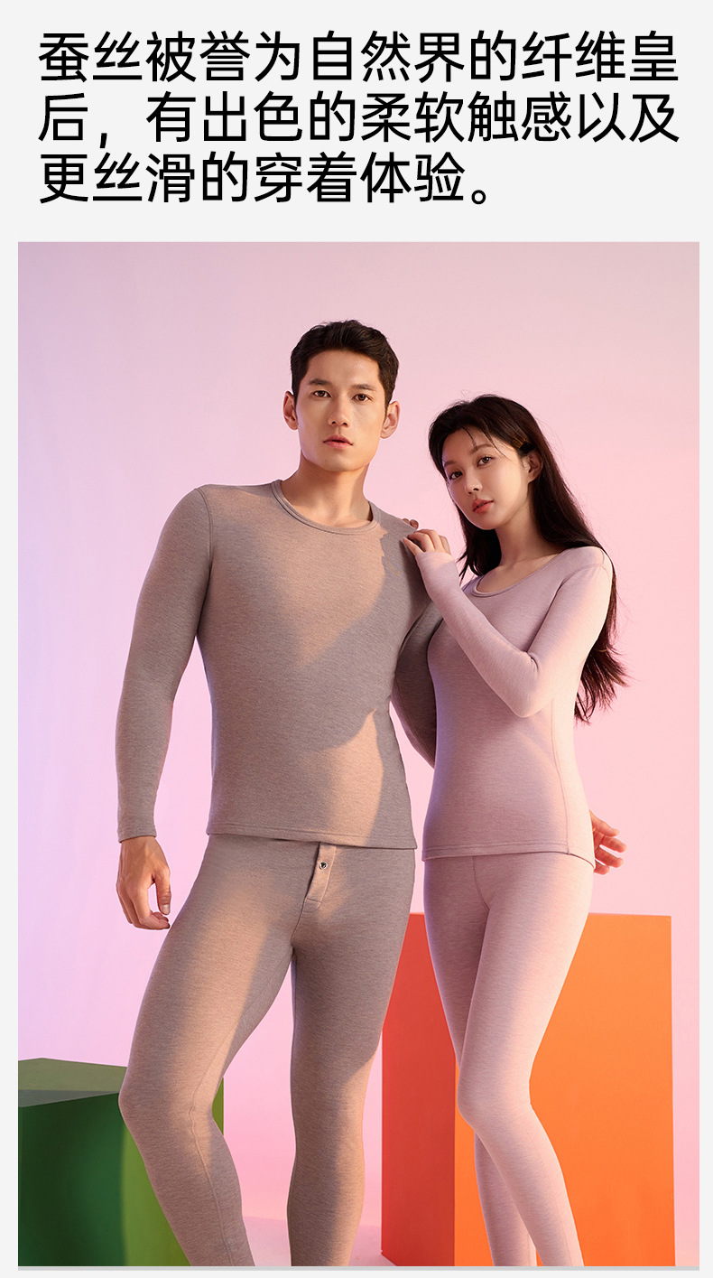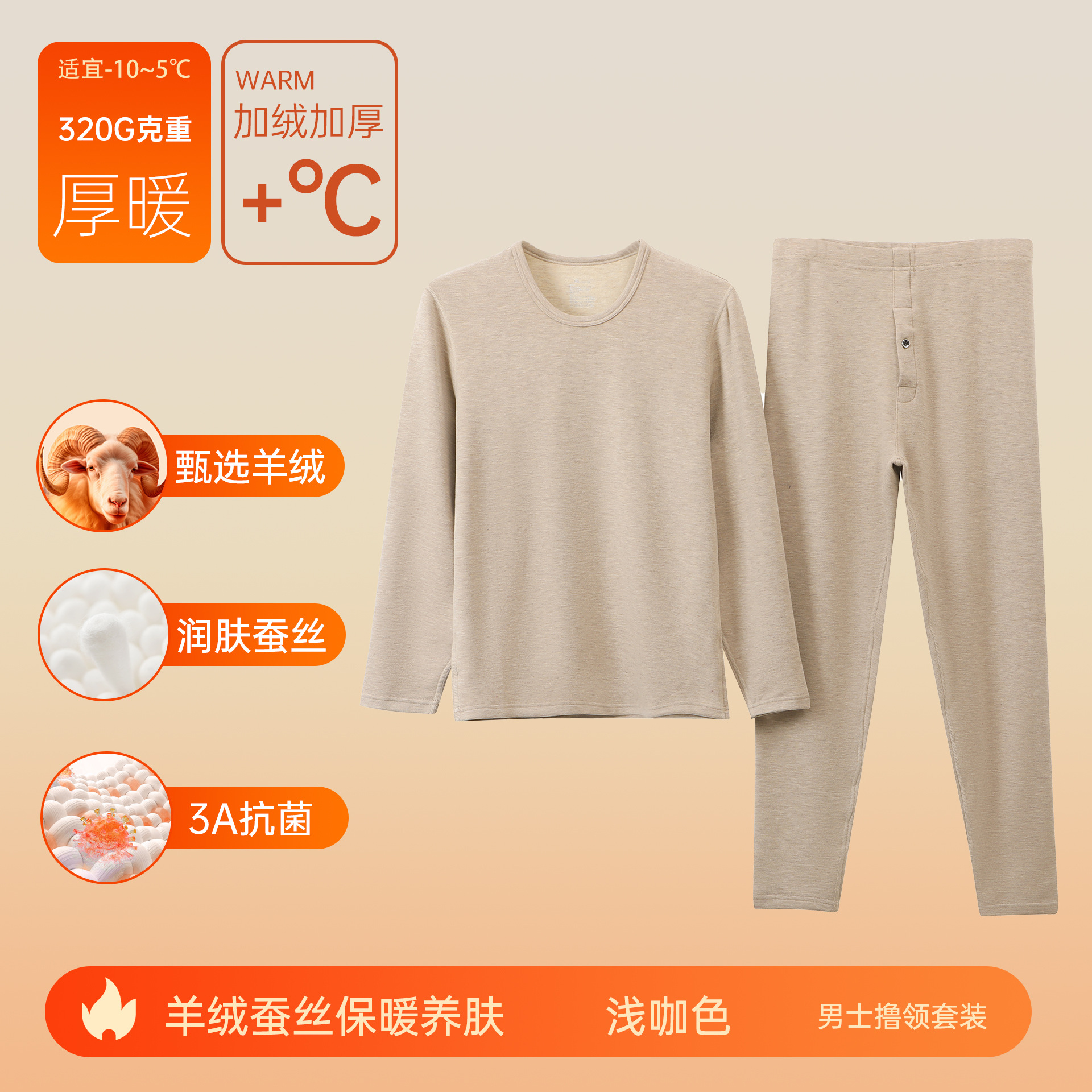 包边羊绒蚕丝保暖内衣男保暖衣德绒磨毛发热秋衣秋裤套装