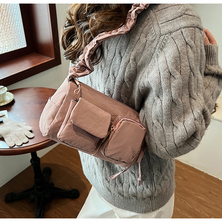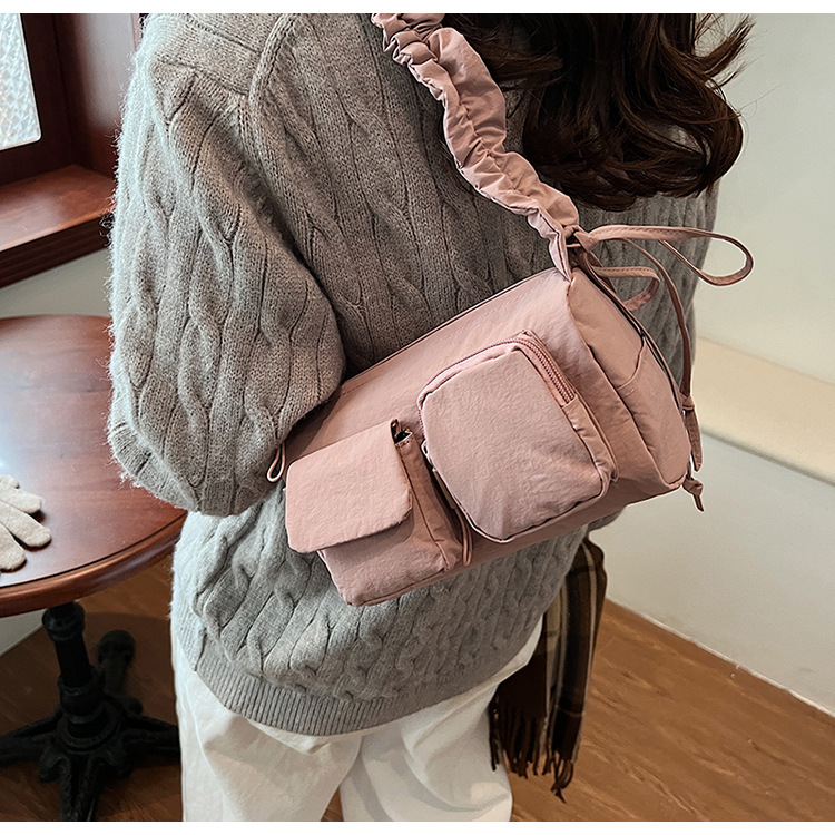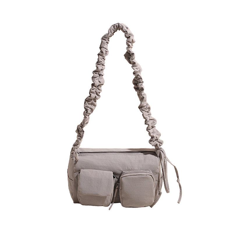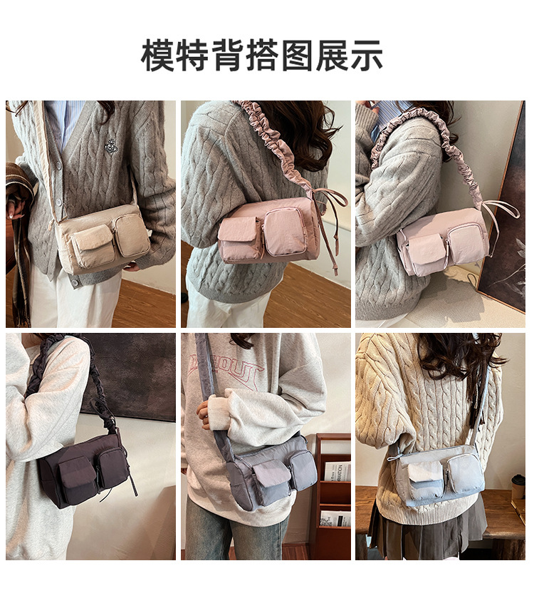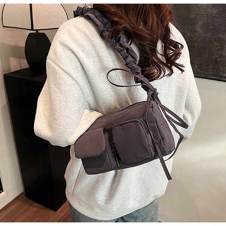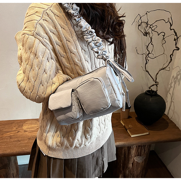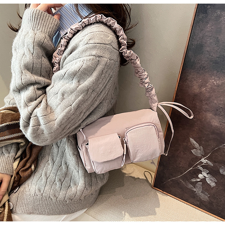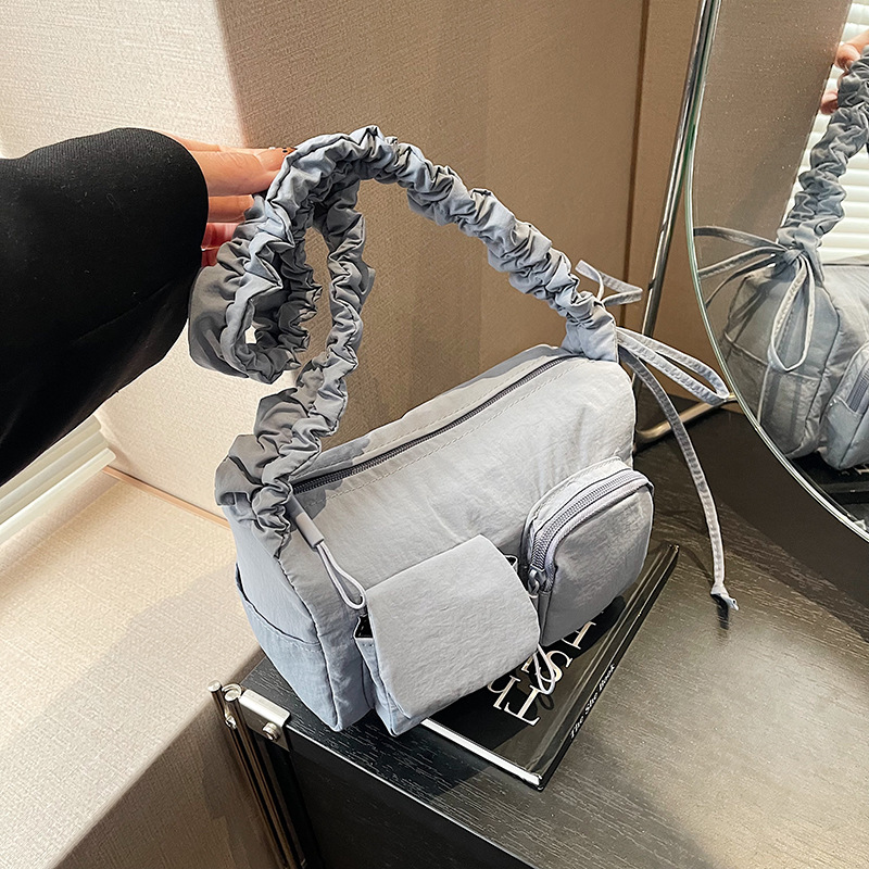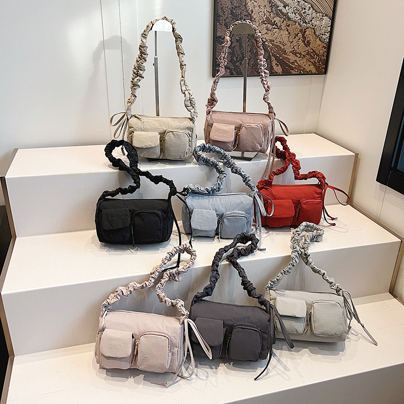新款韩系小众设计感单肩腋下包云朵包女尼龙布抽绳百搭斜跨休闲包