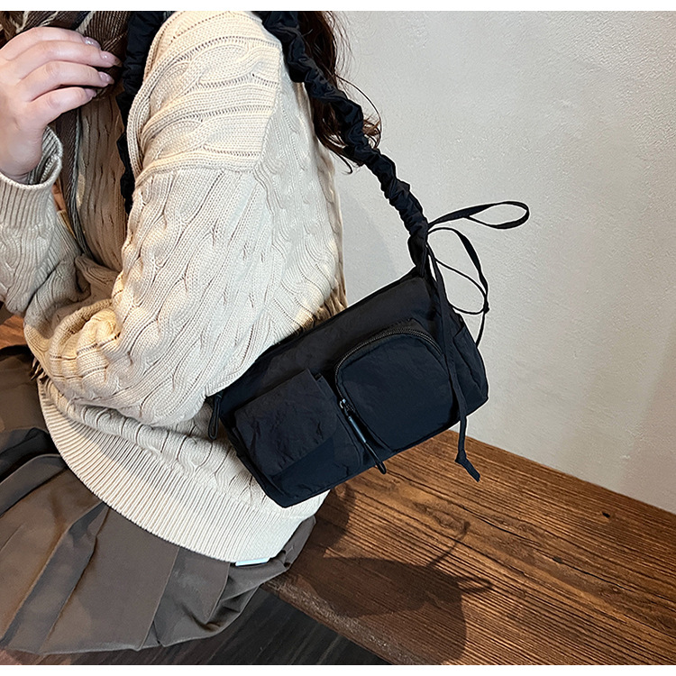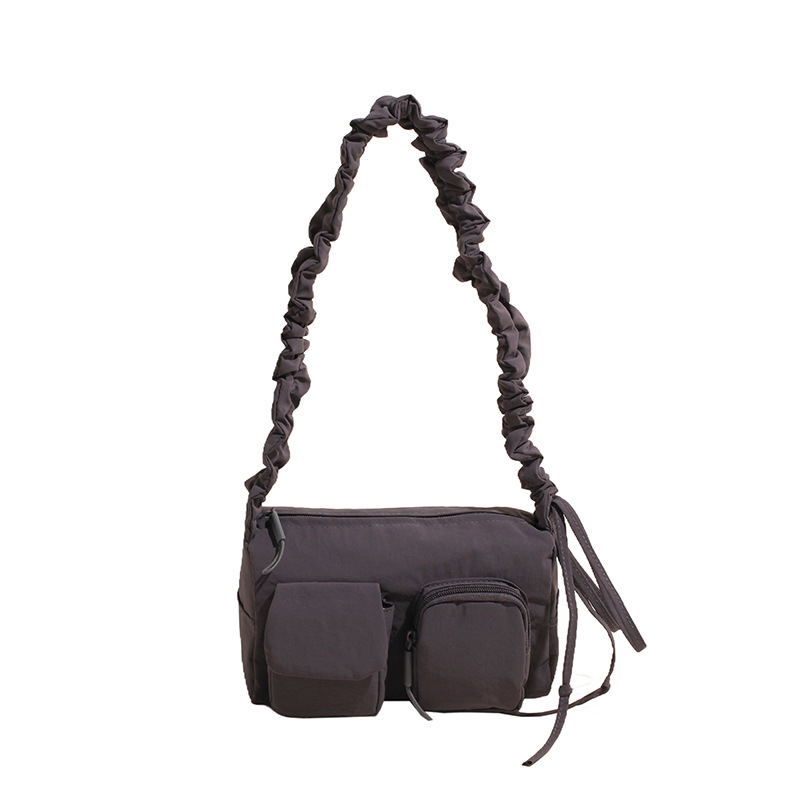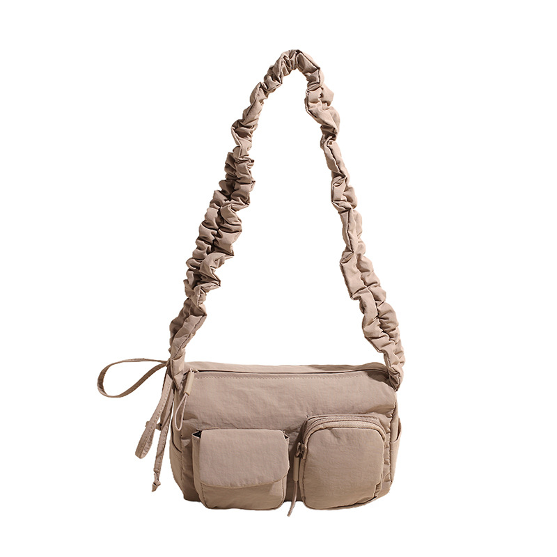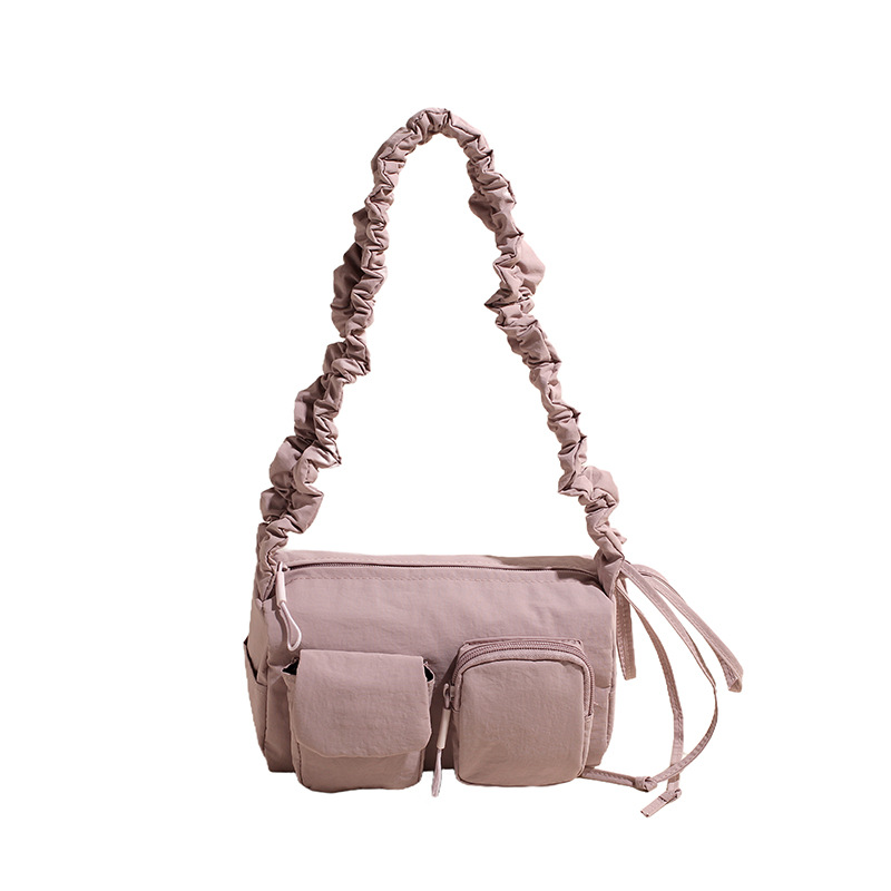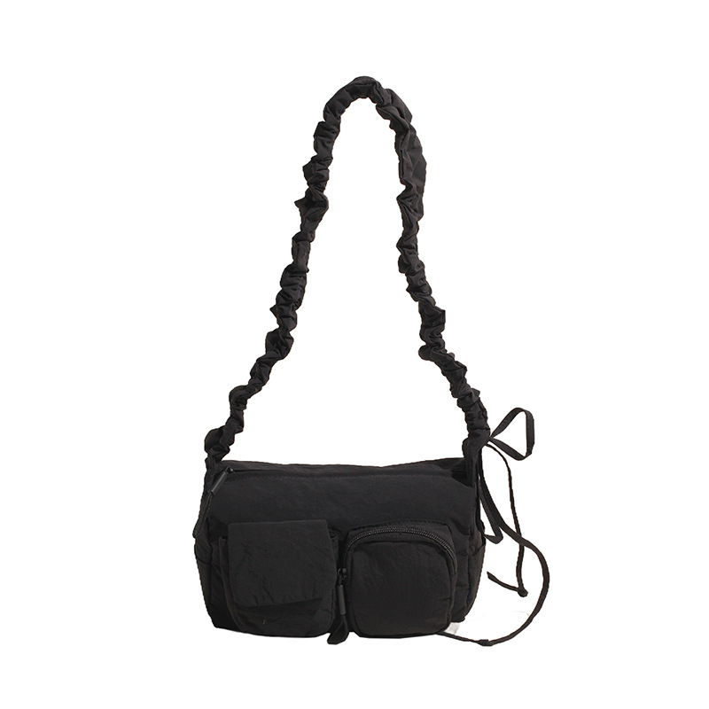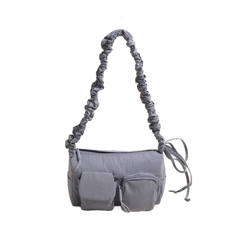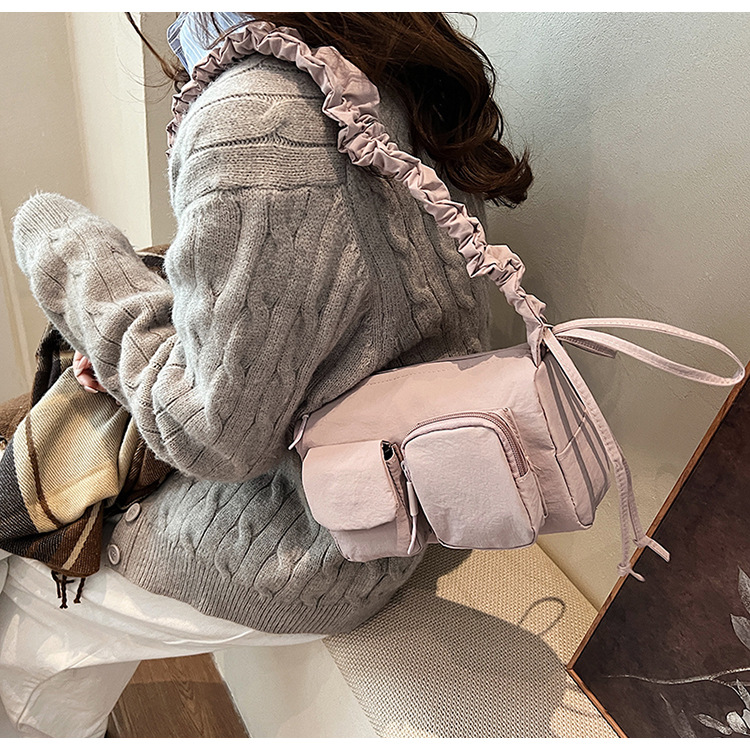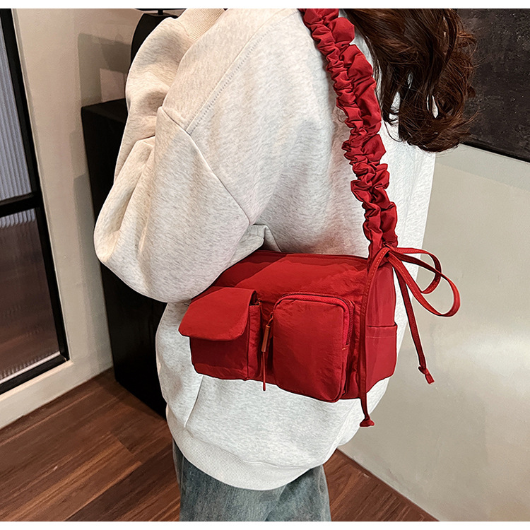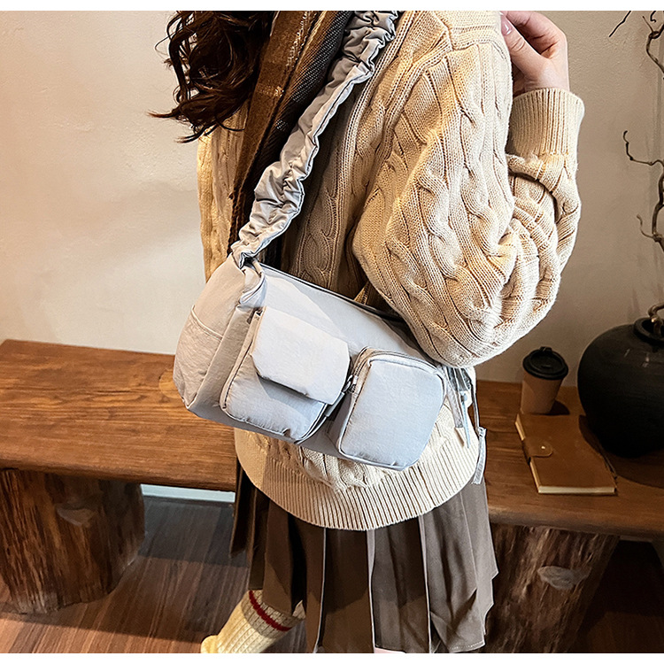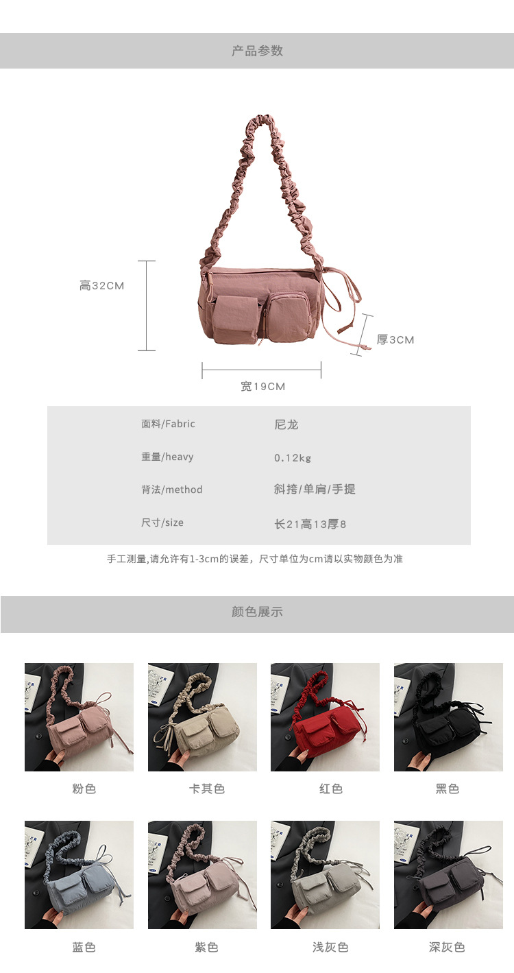 新款韩系小众设计感单肩腋下包云朵包女尼龙布抽绳百搭斜跨休闲包