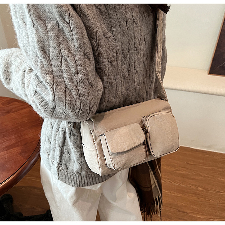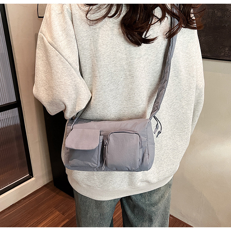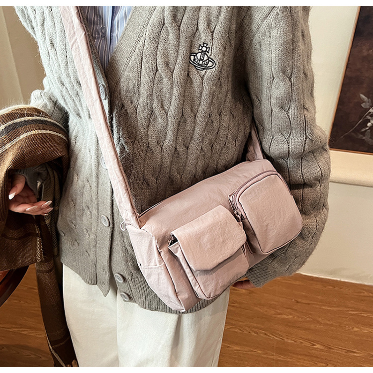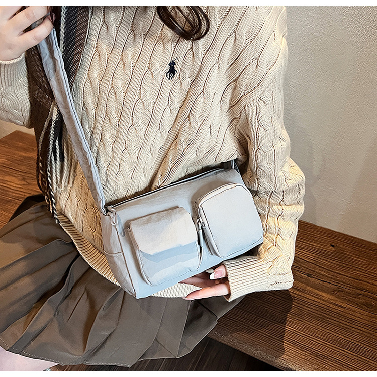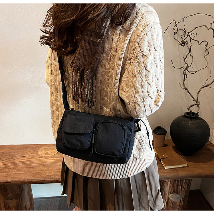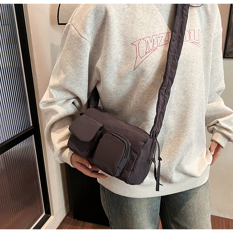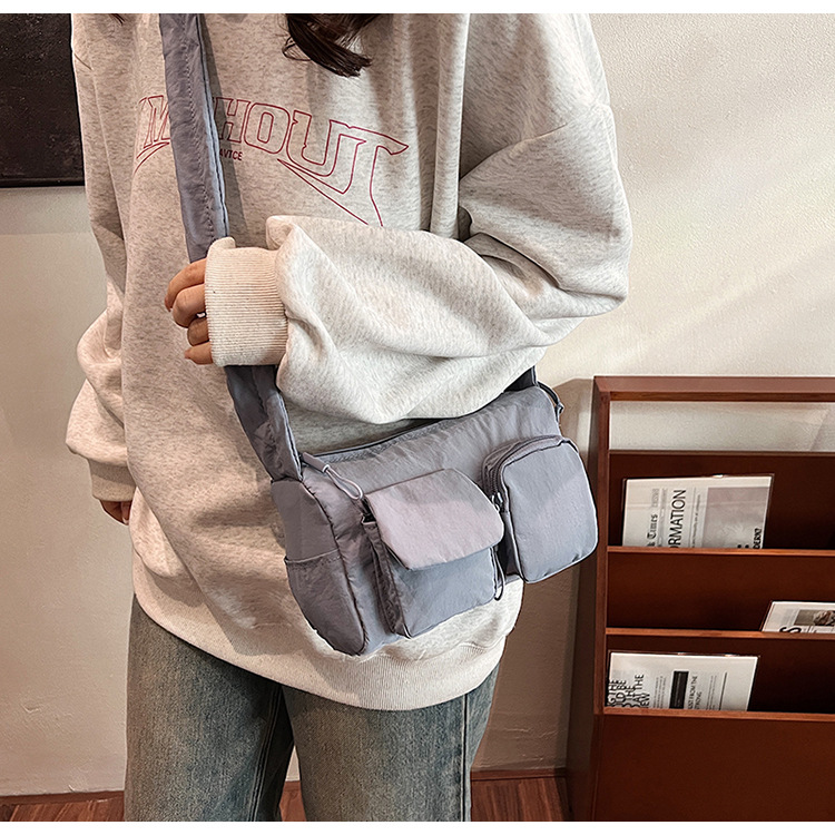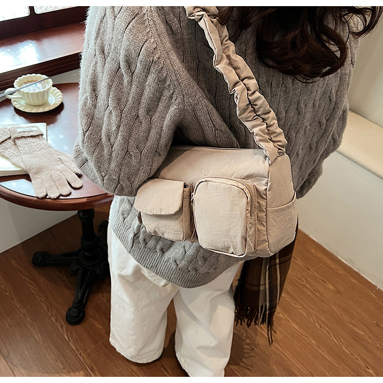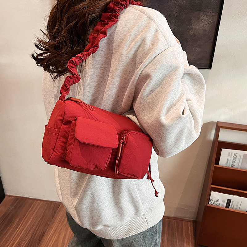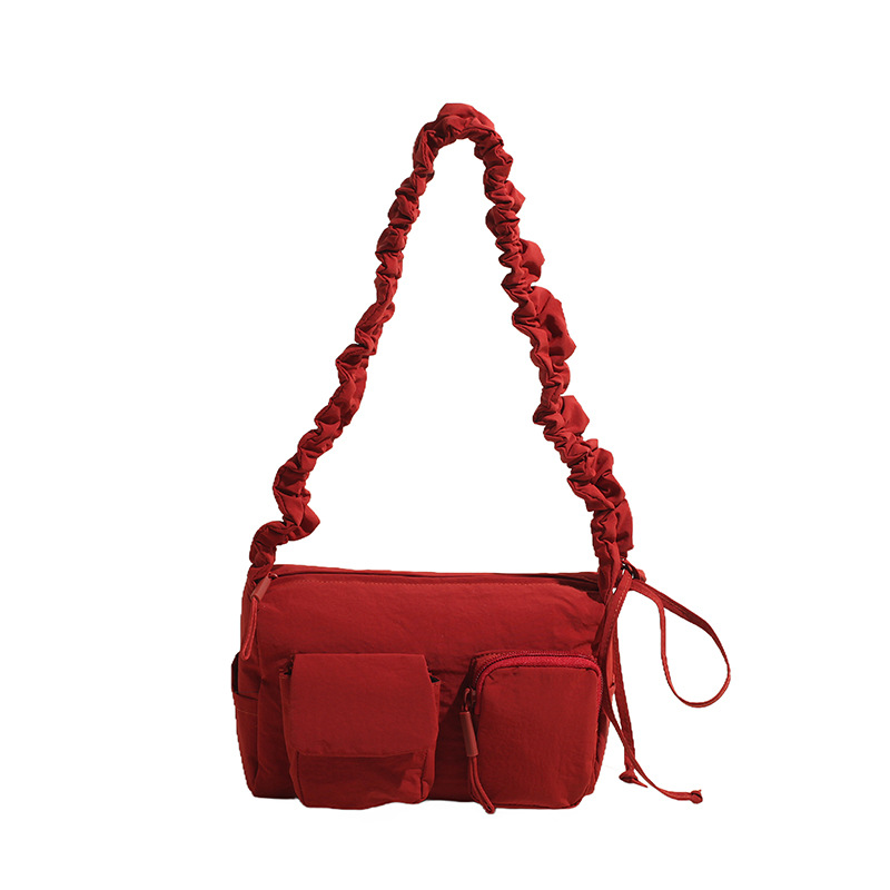 新款韩系小众设计感单肩腋下包云朵包女尼龙布抽绳百搭斜跨休闲包
