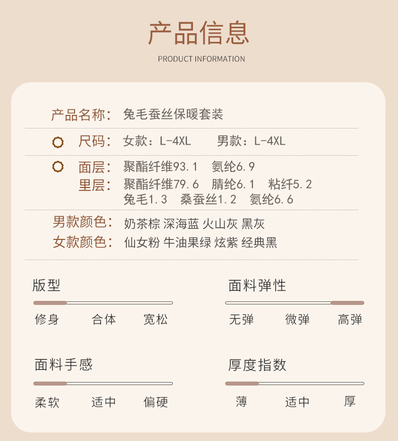 保暖内衣男士山羊绒保暖兔绒发热7A女士秋衣秋裤保暖套装微厚