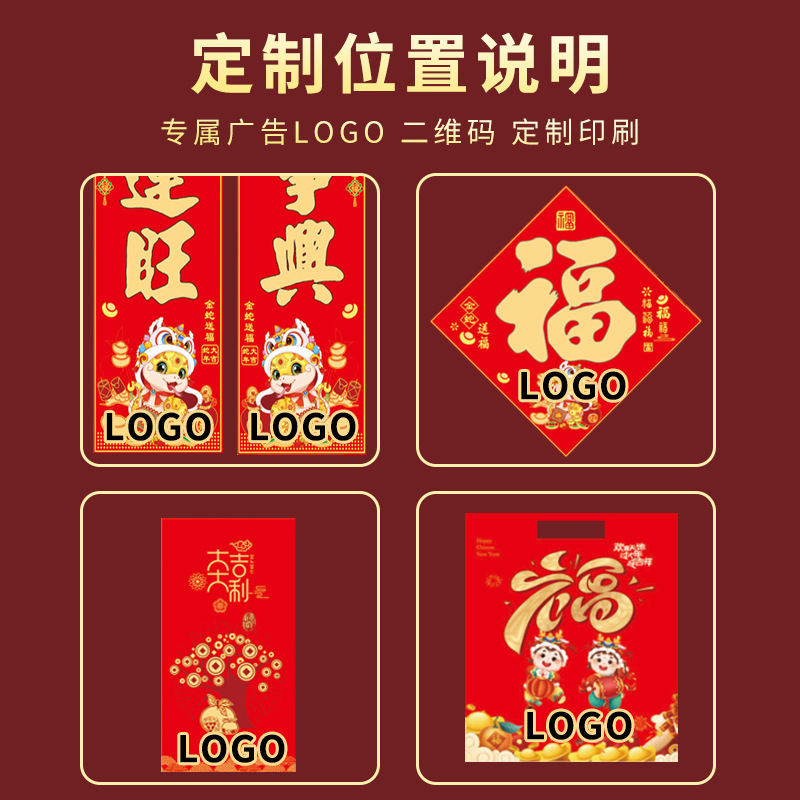 2025年蛇年广告对联定制新年春节春联大礼包礼盒定做银行企业logo