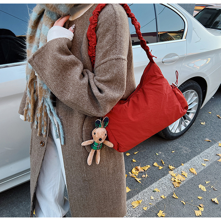 尼龙女包包韩版时尚褶皱腋下云朵包百搭潮流单肩斜挎包休闲托特包