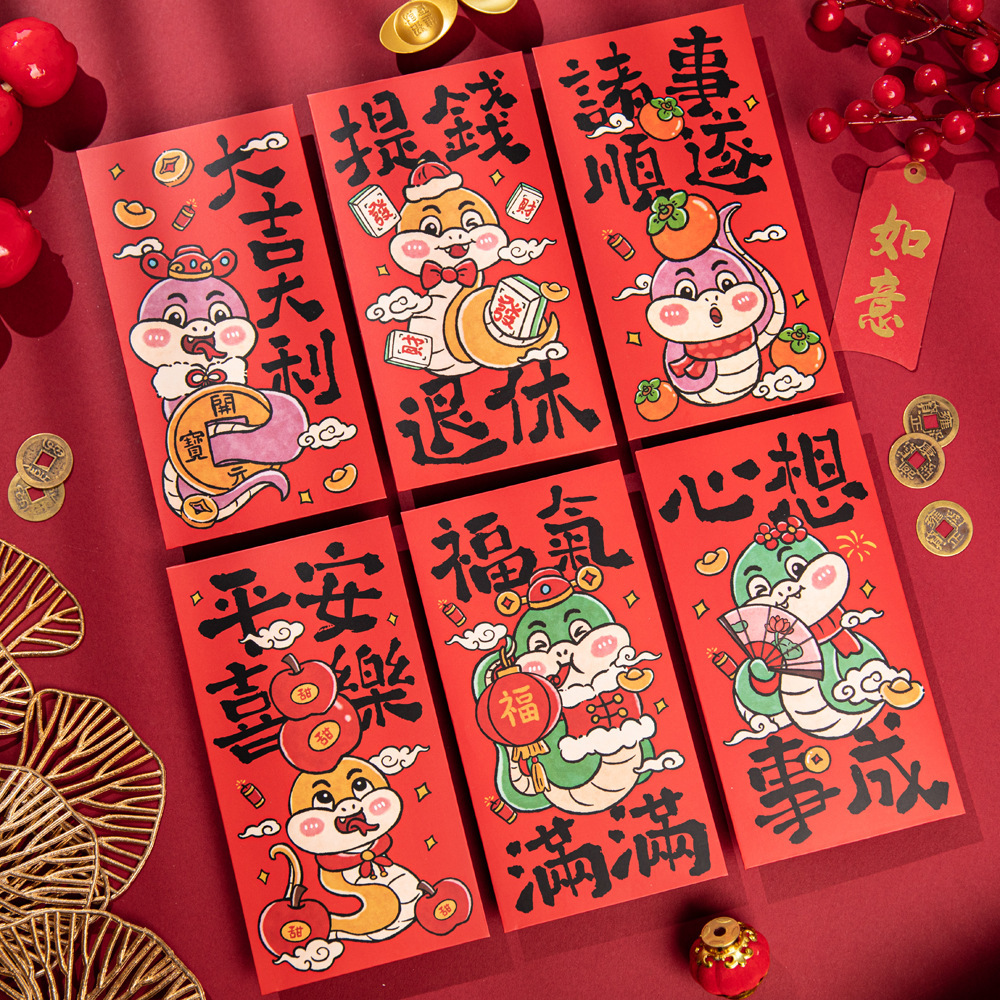 五彩蛇年创意利是封个性原创高档加厚红包袋新年喜庆百元千元压岁