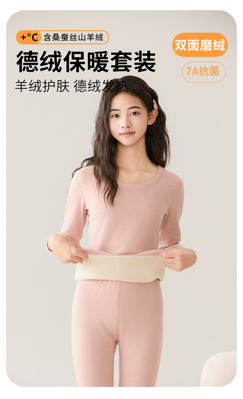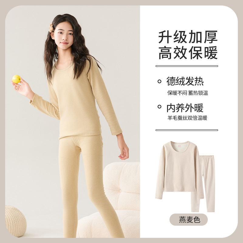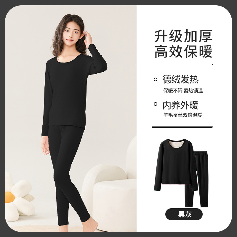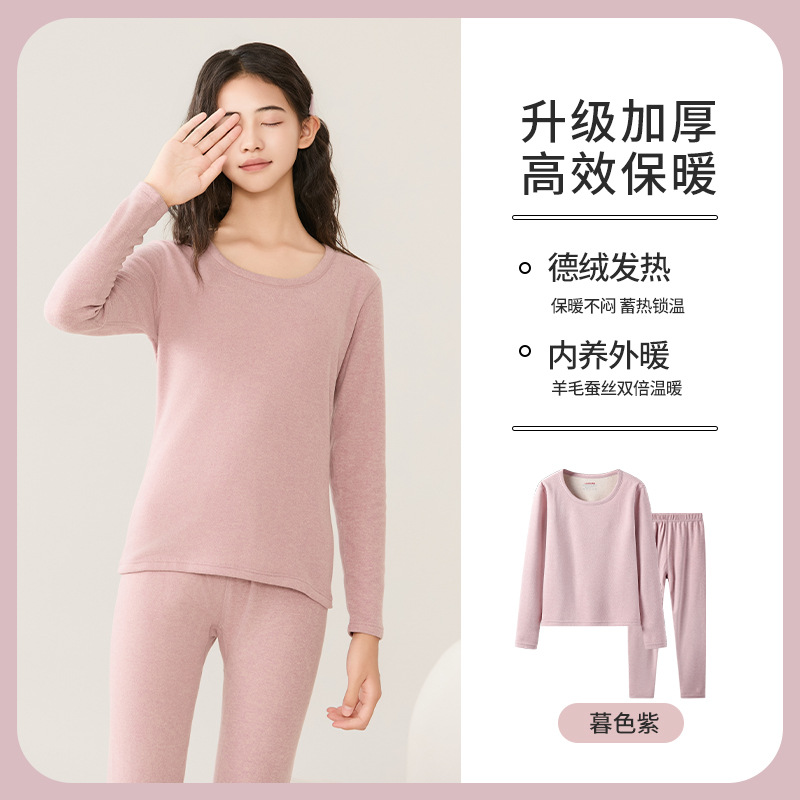 少女保暖内衣羊毛蚕丝德绒初高中学生青少年女大童秋衣秋裤套装冬