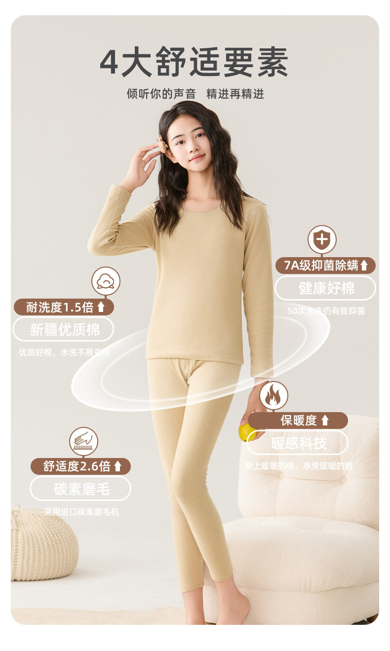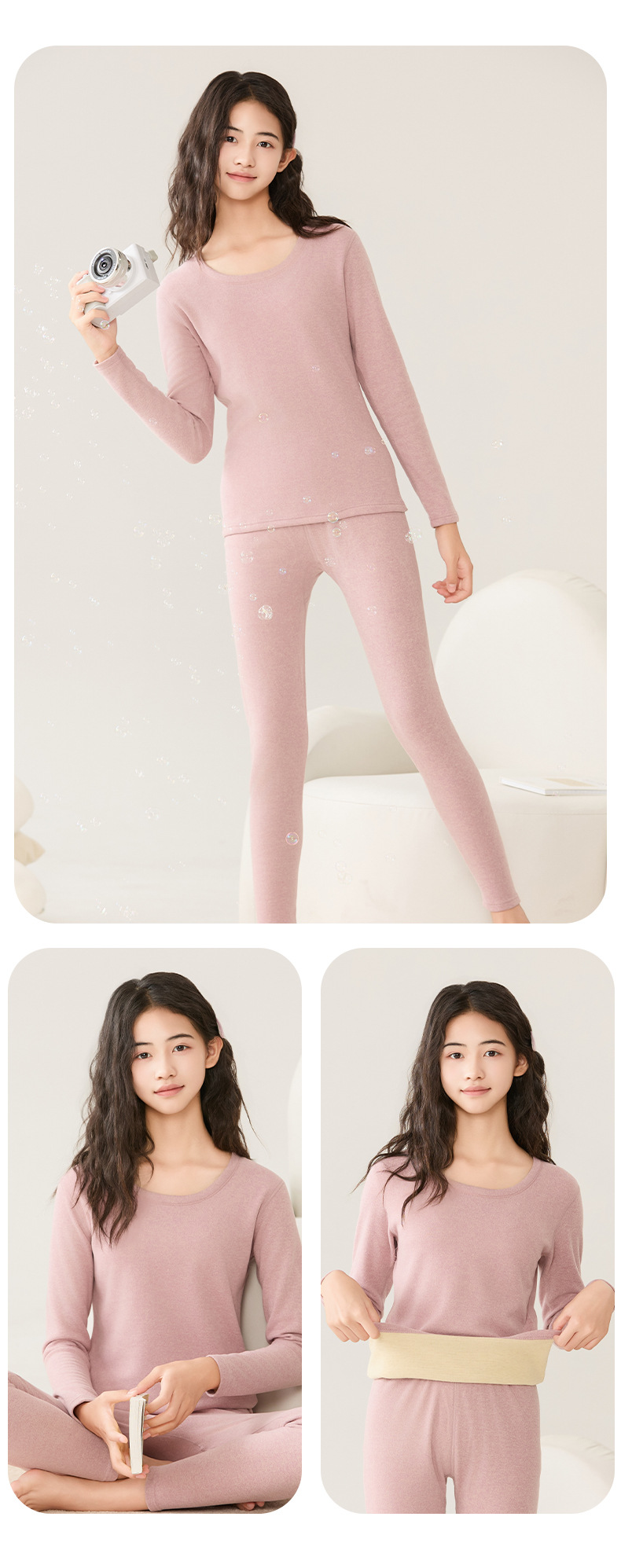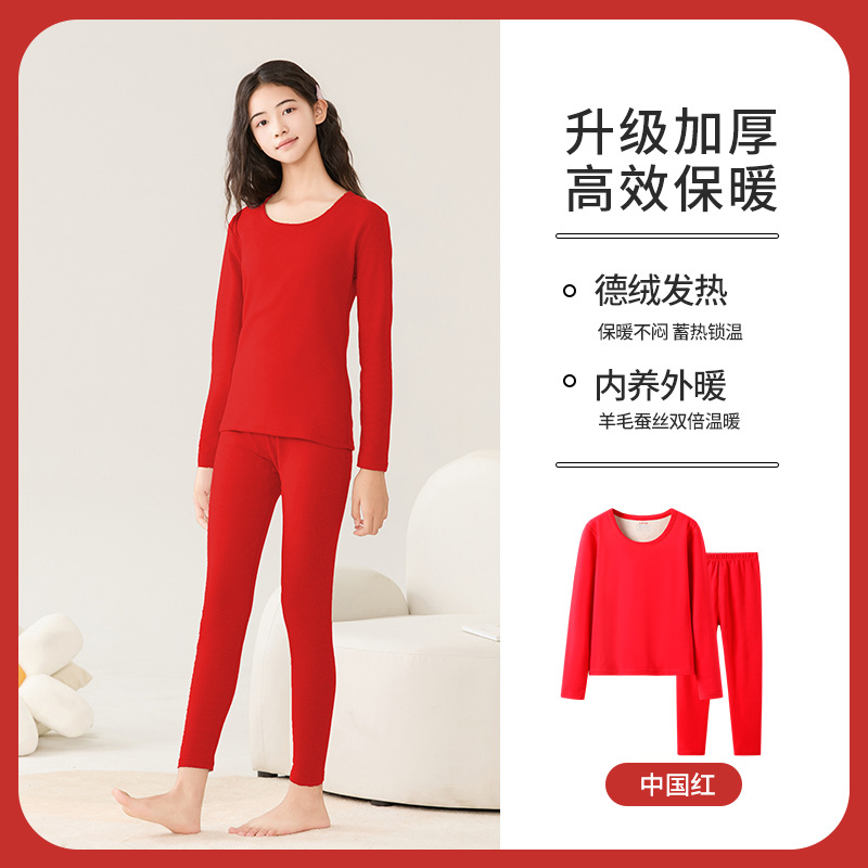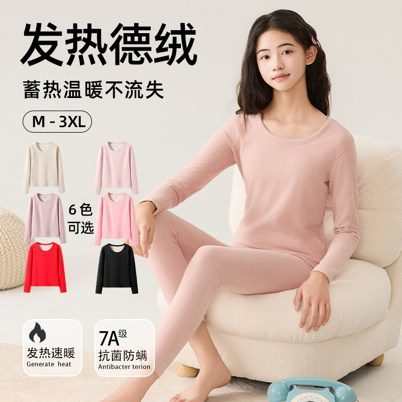 少女保暖内衣羊毛蚕丝德绒初高中学生青少年女大童秋衣秋裤套装冬