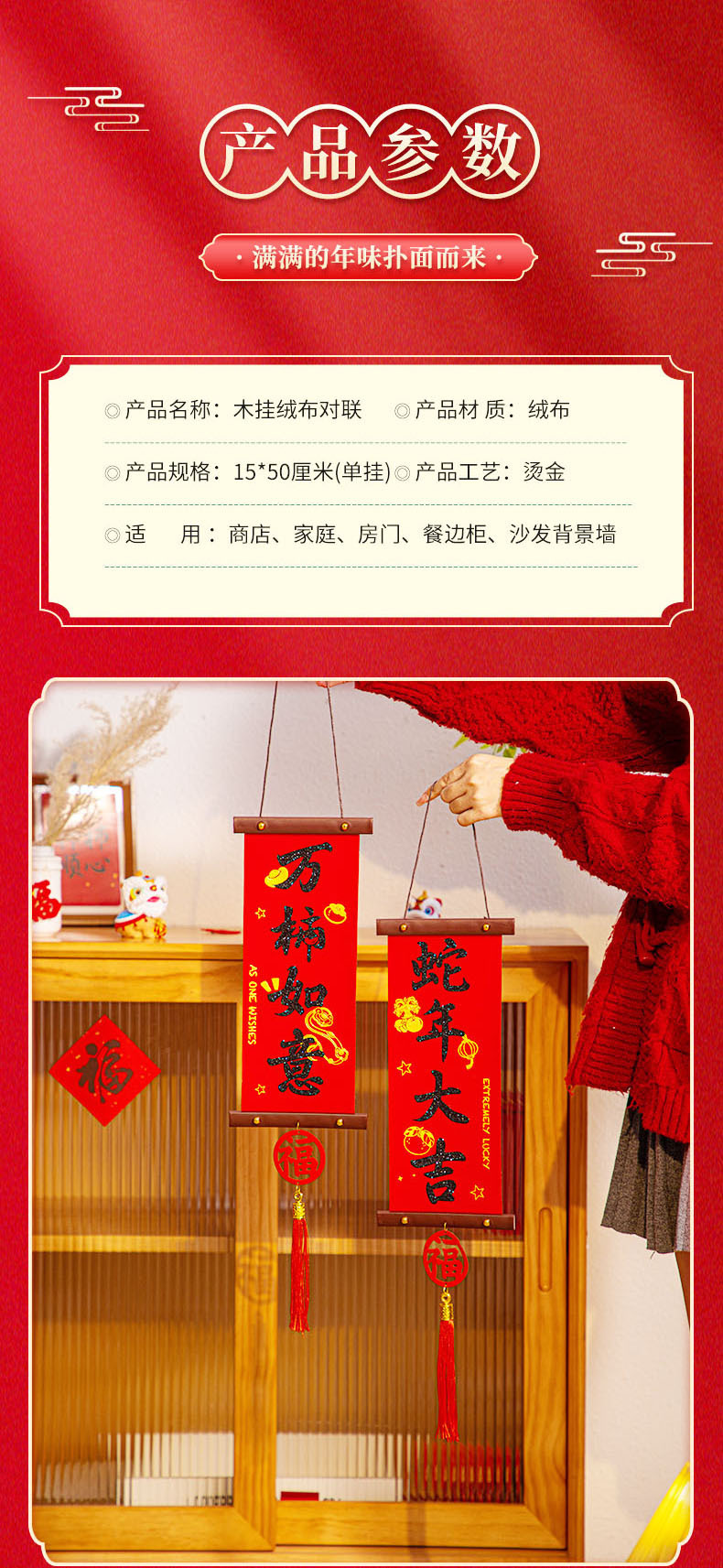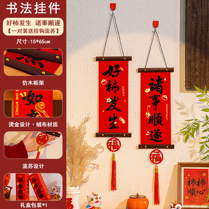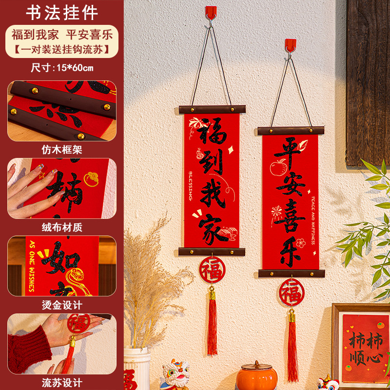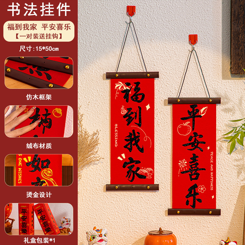 新年书法挂件2025蛇年墙面挂件平安喜乐礼物布置门口对联挂饰批发